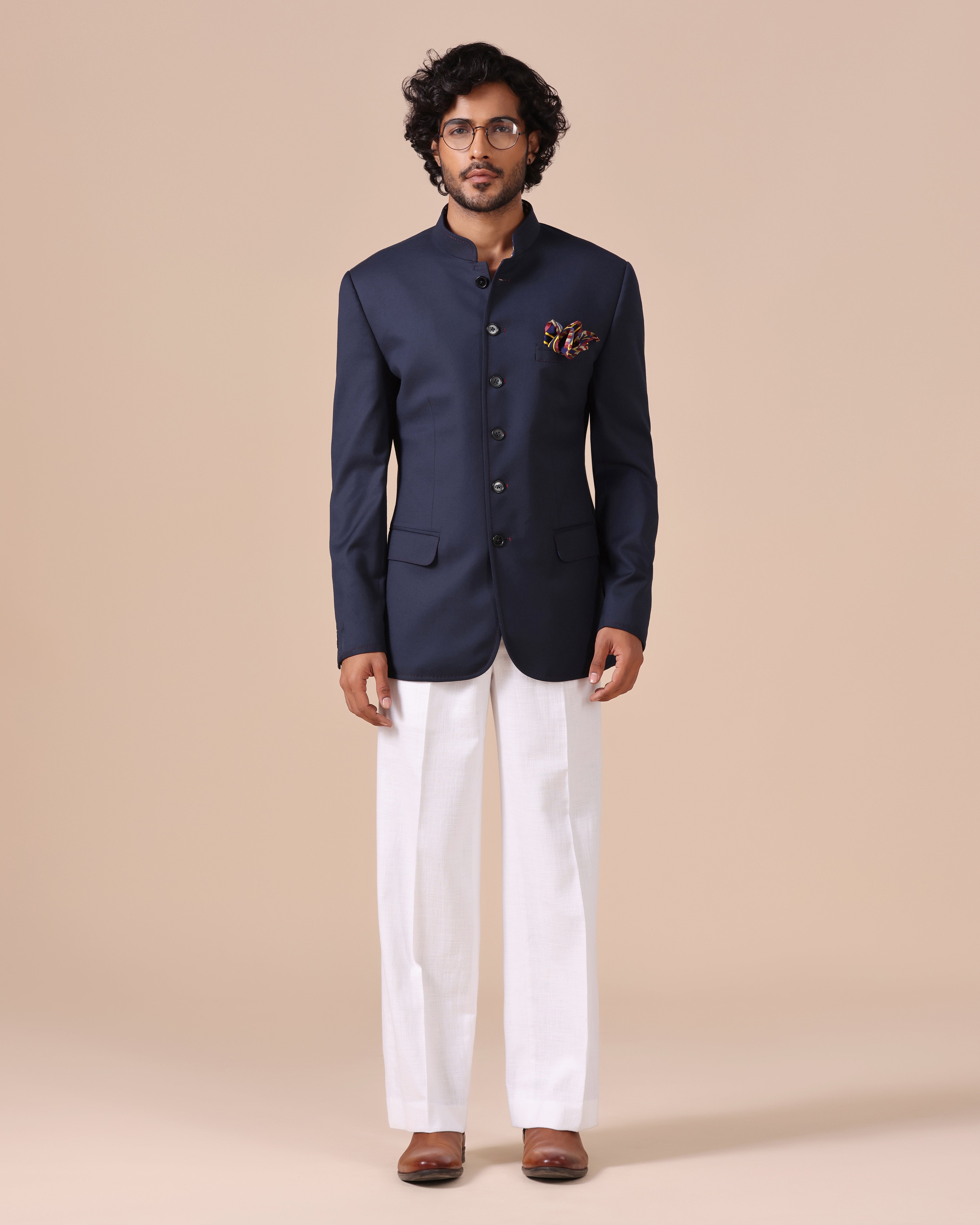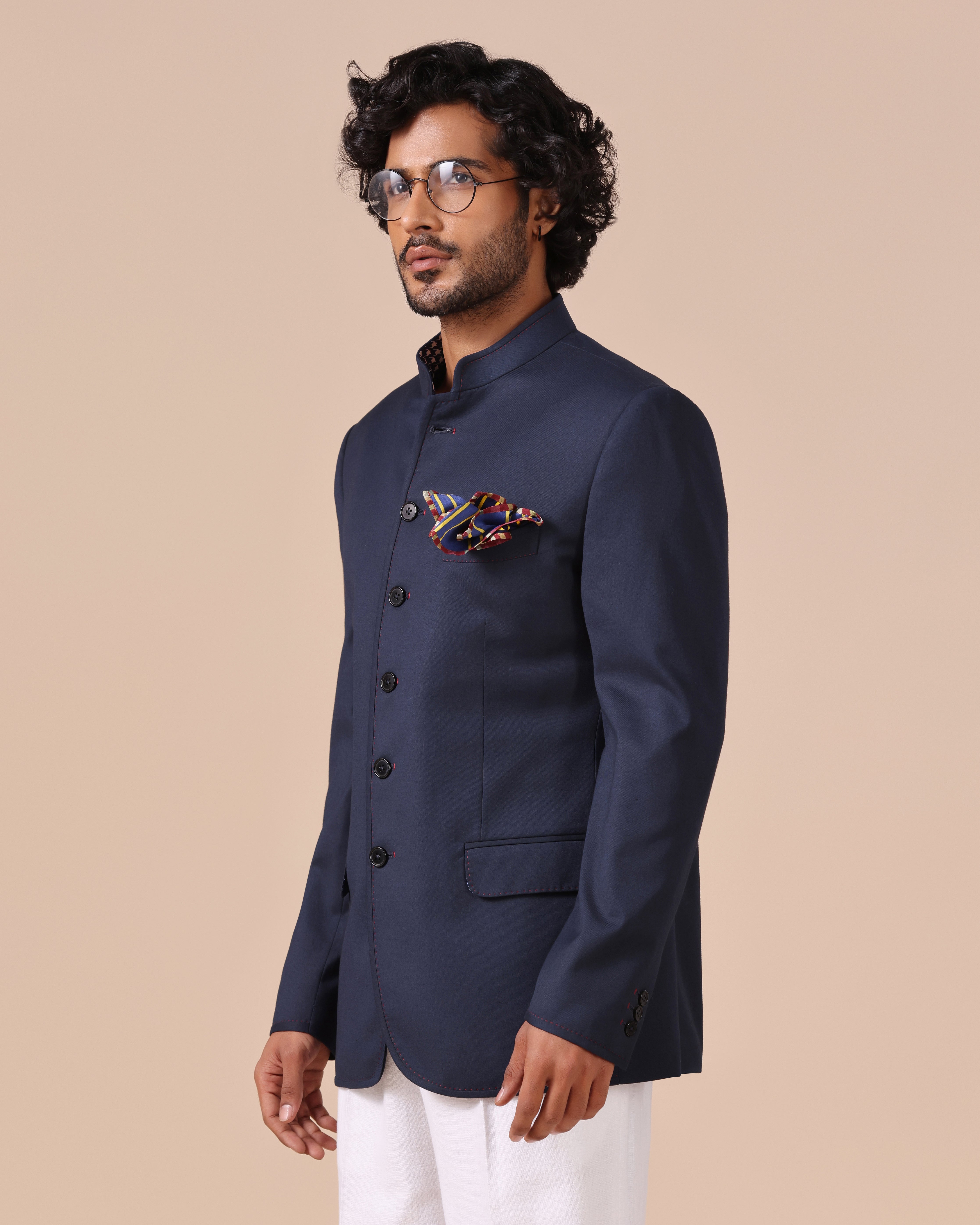 Poly Wool Bandhgala with Maroon Stitched Highlights