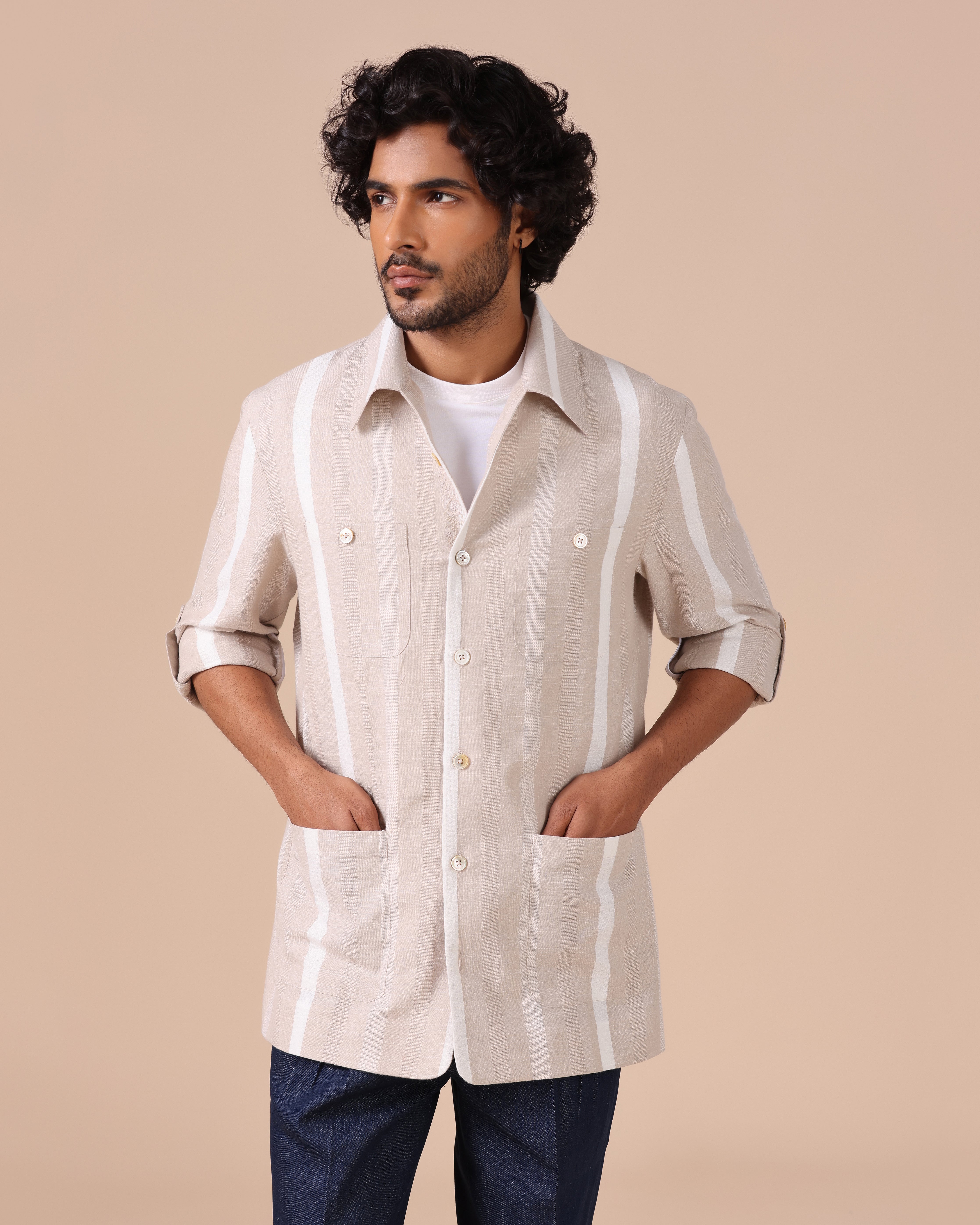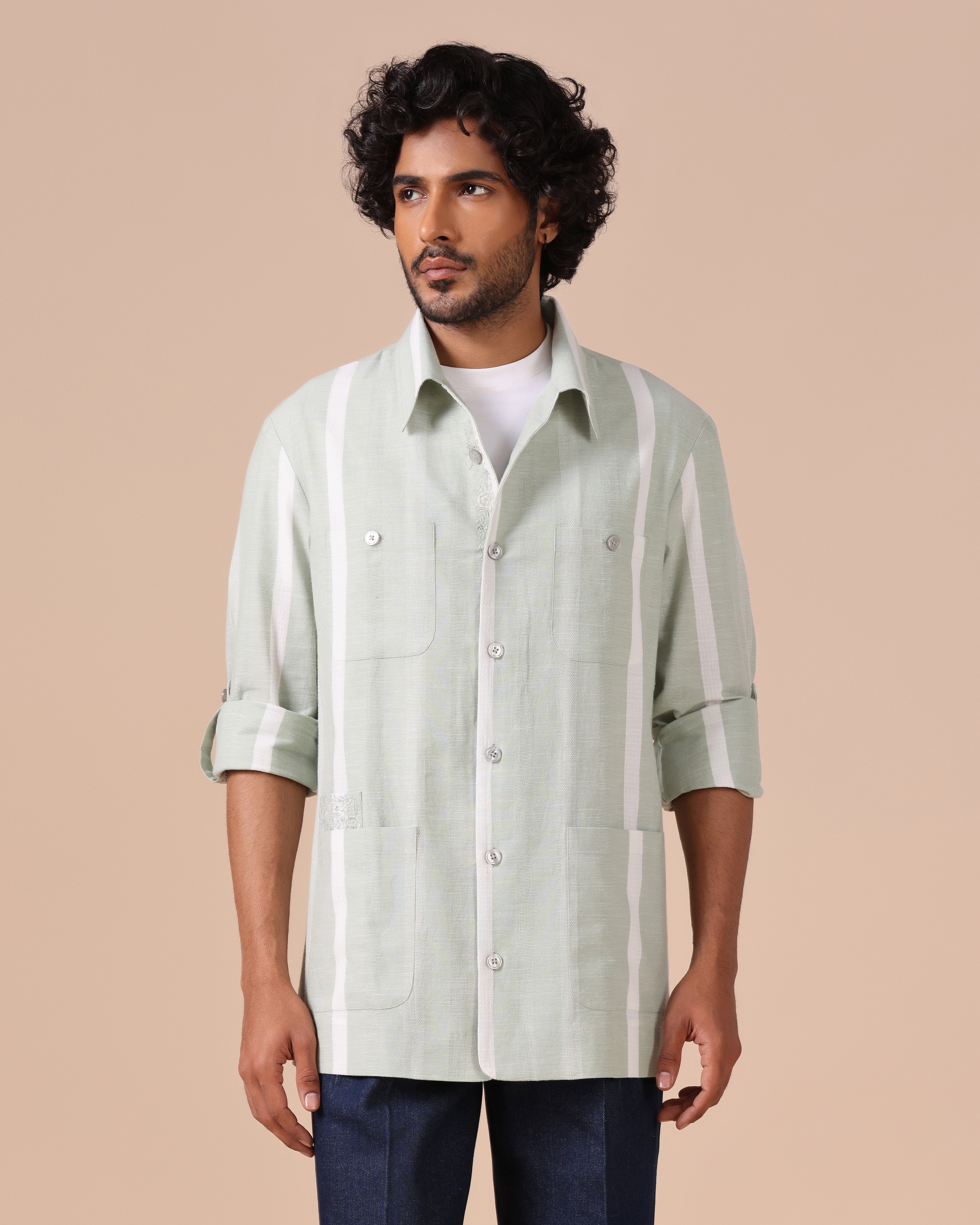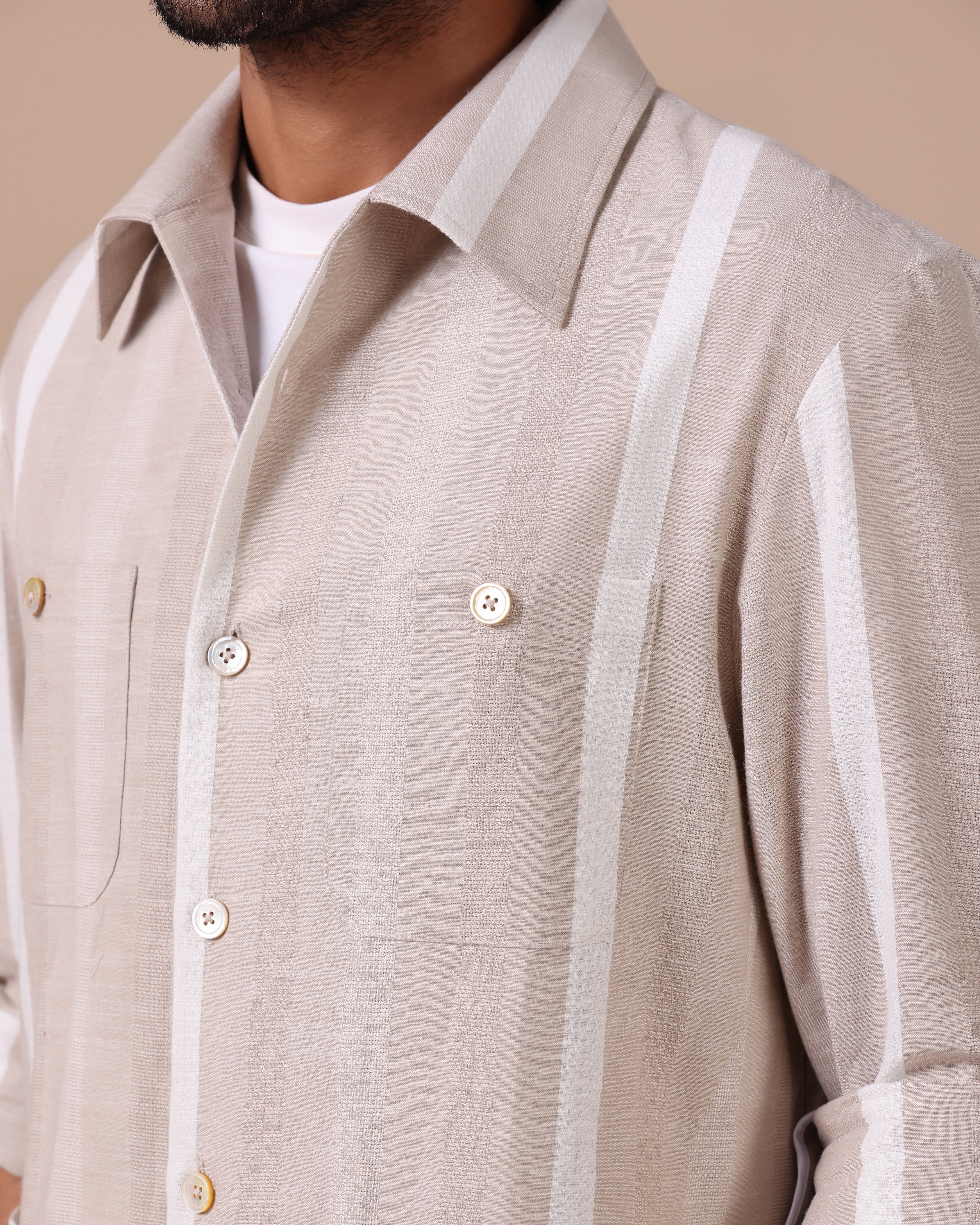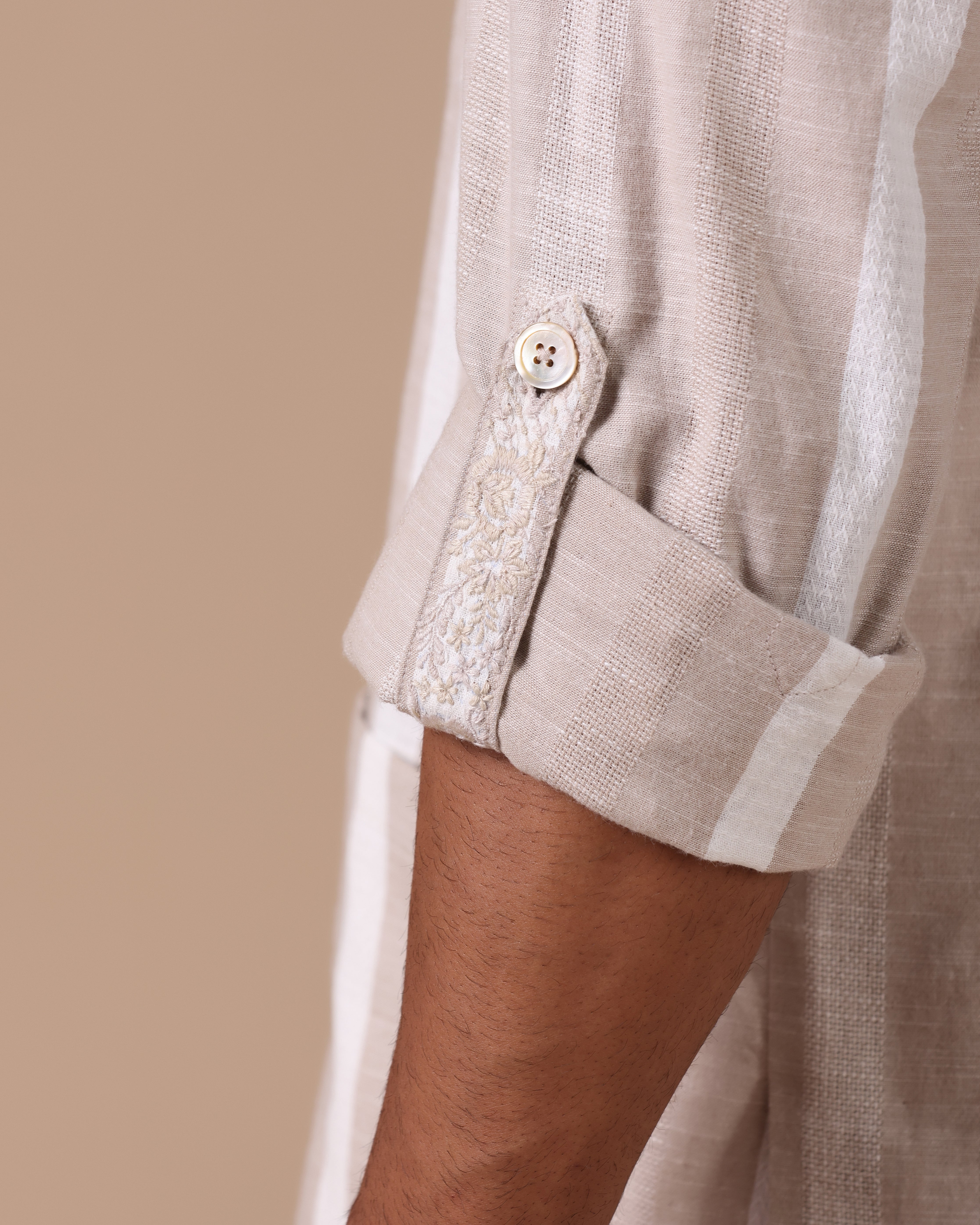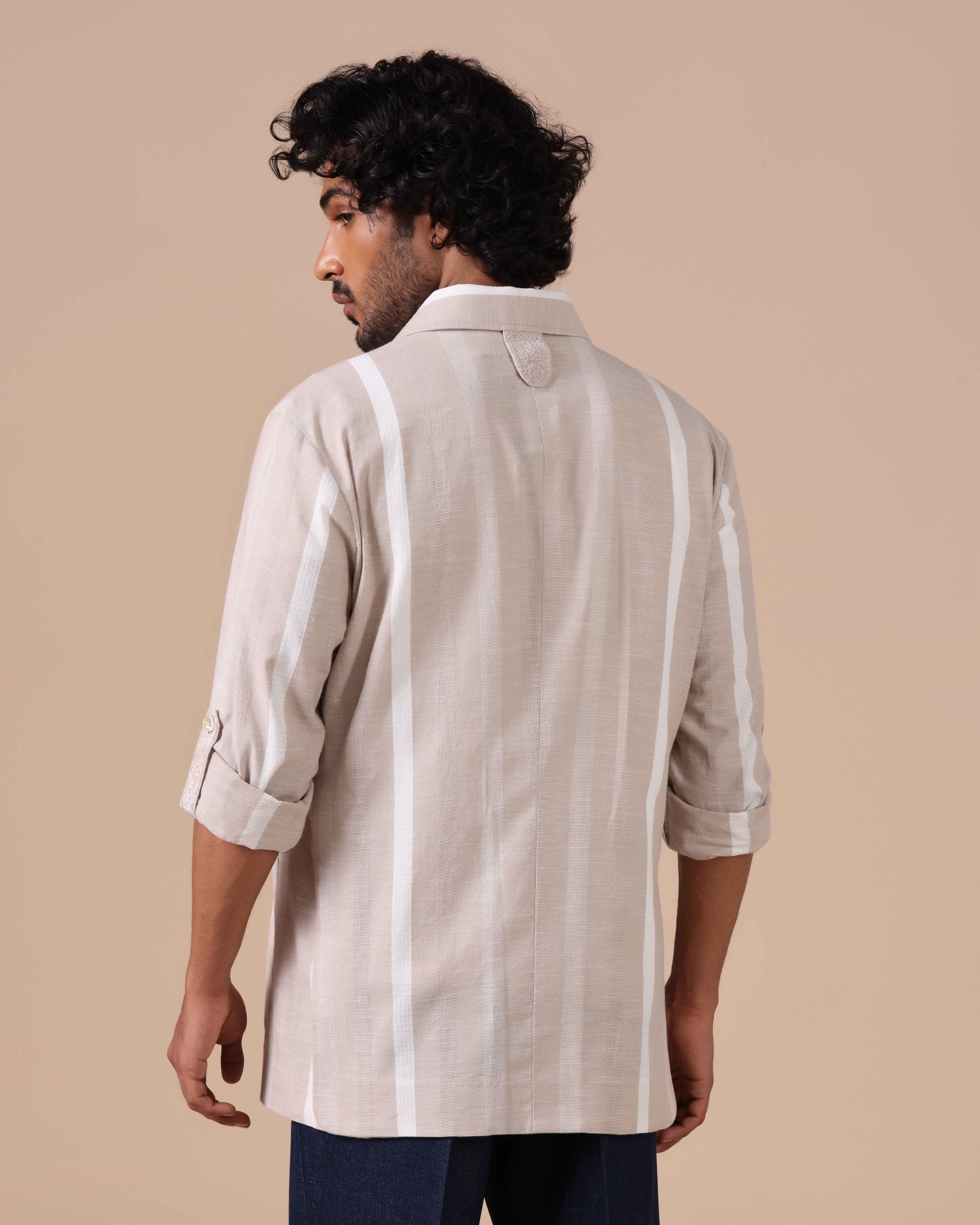 Brushed Cotton Linen Shacket with Embroidered Placket Detailing