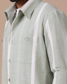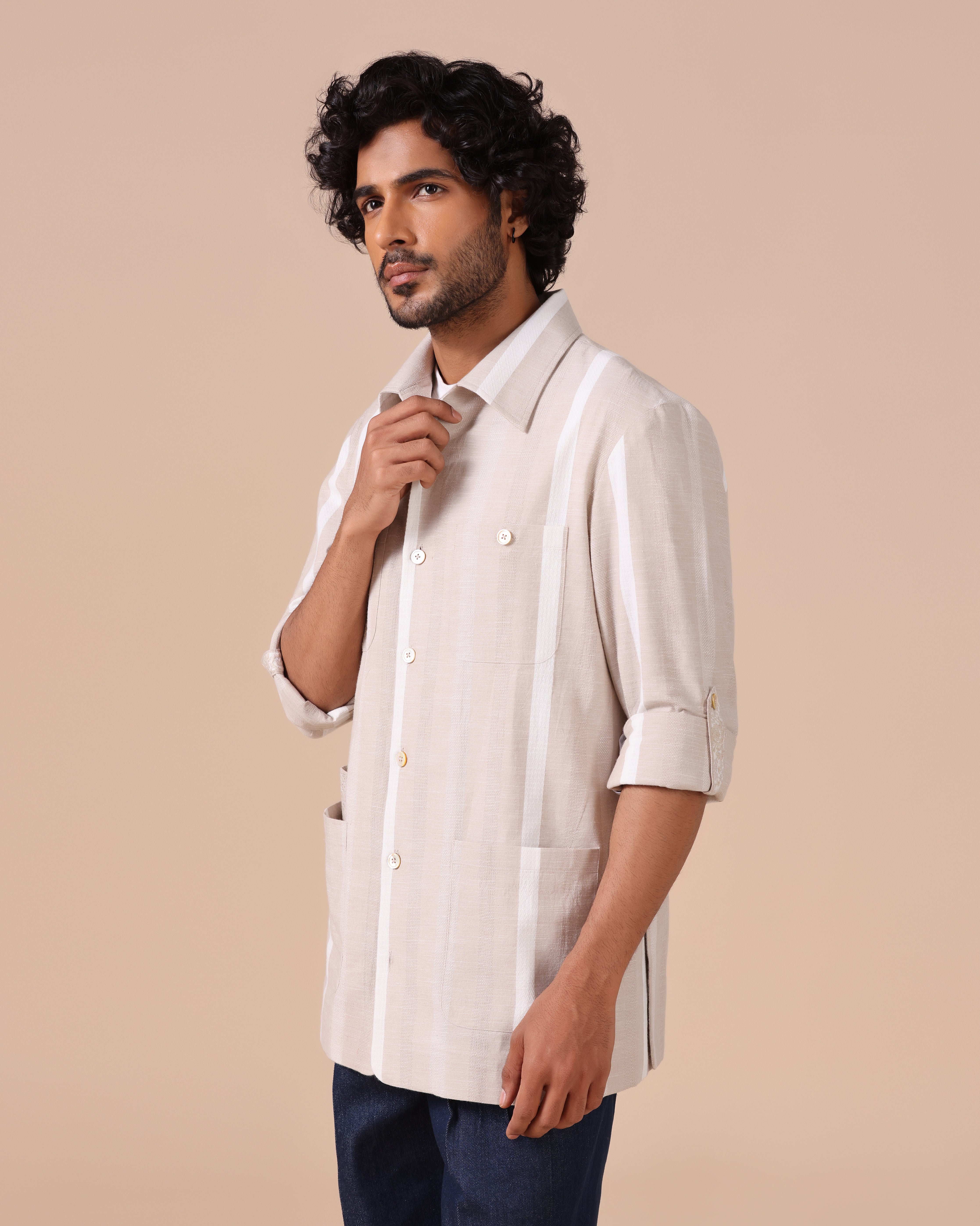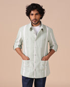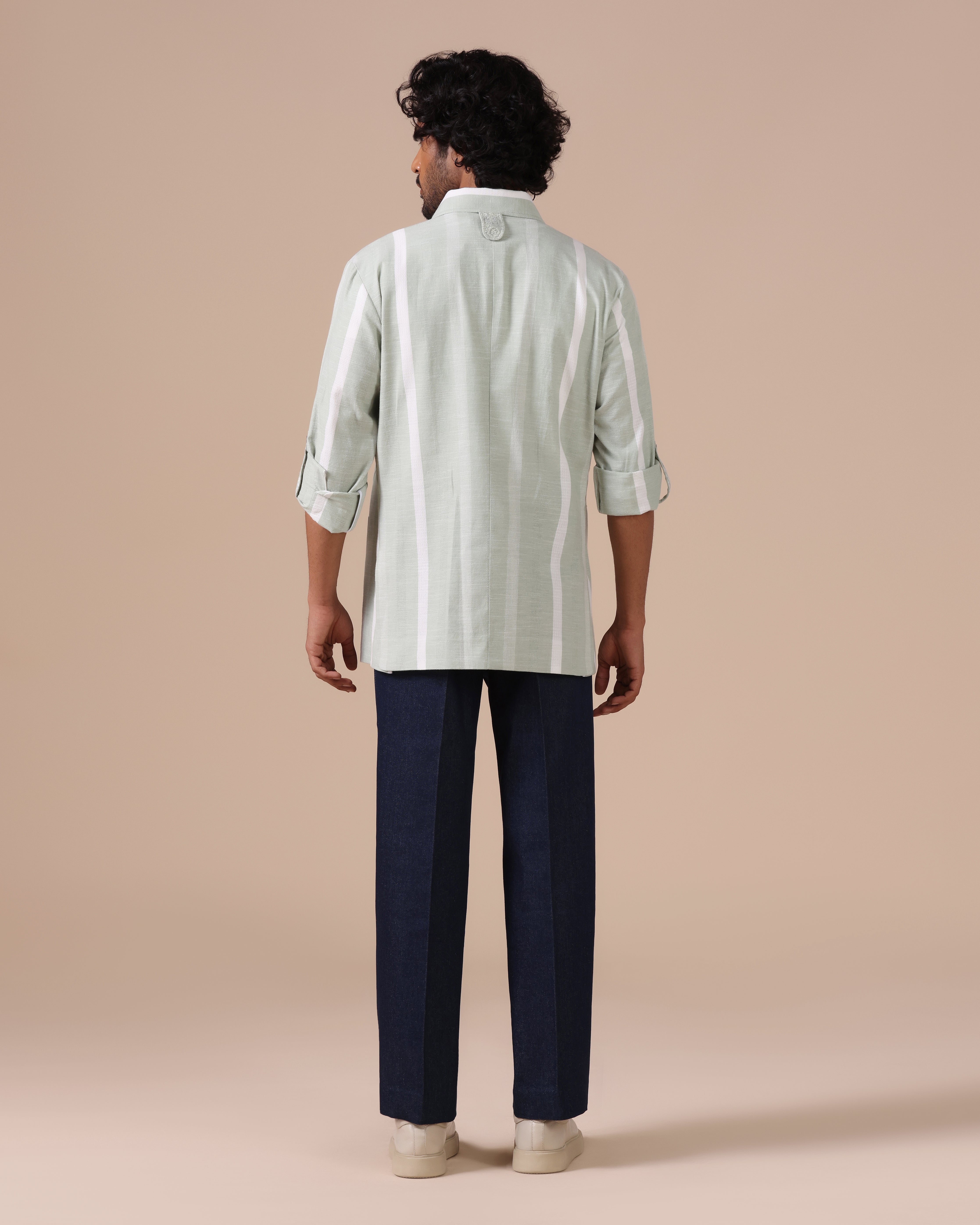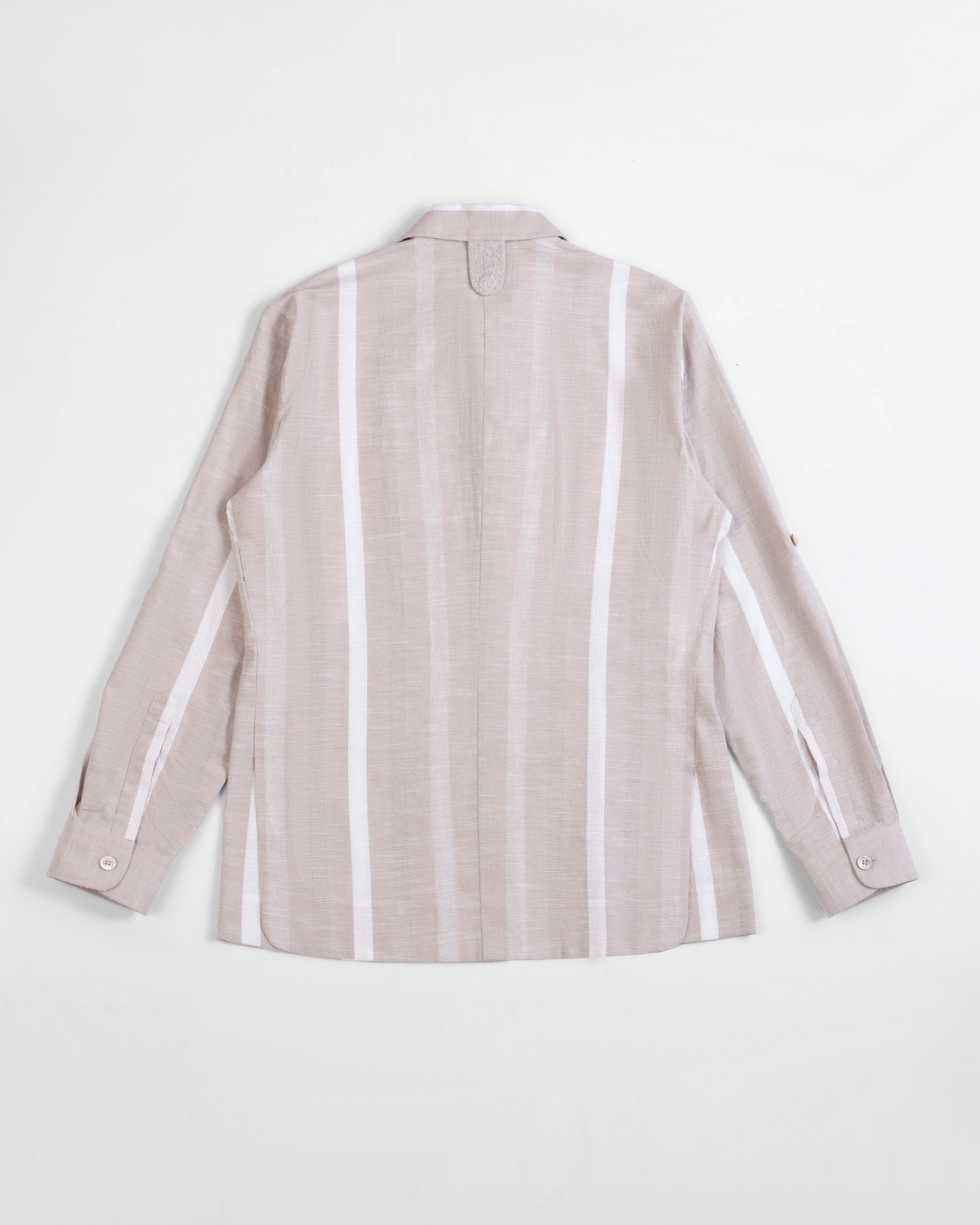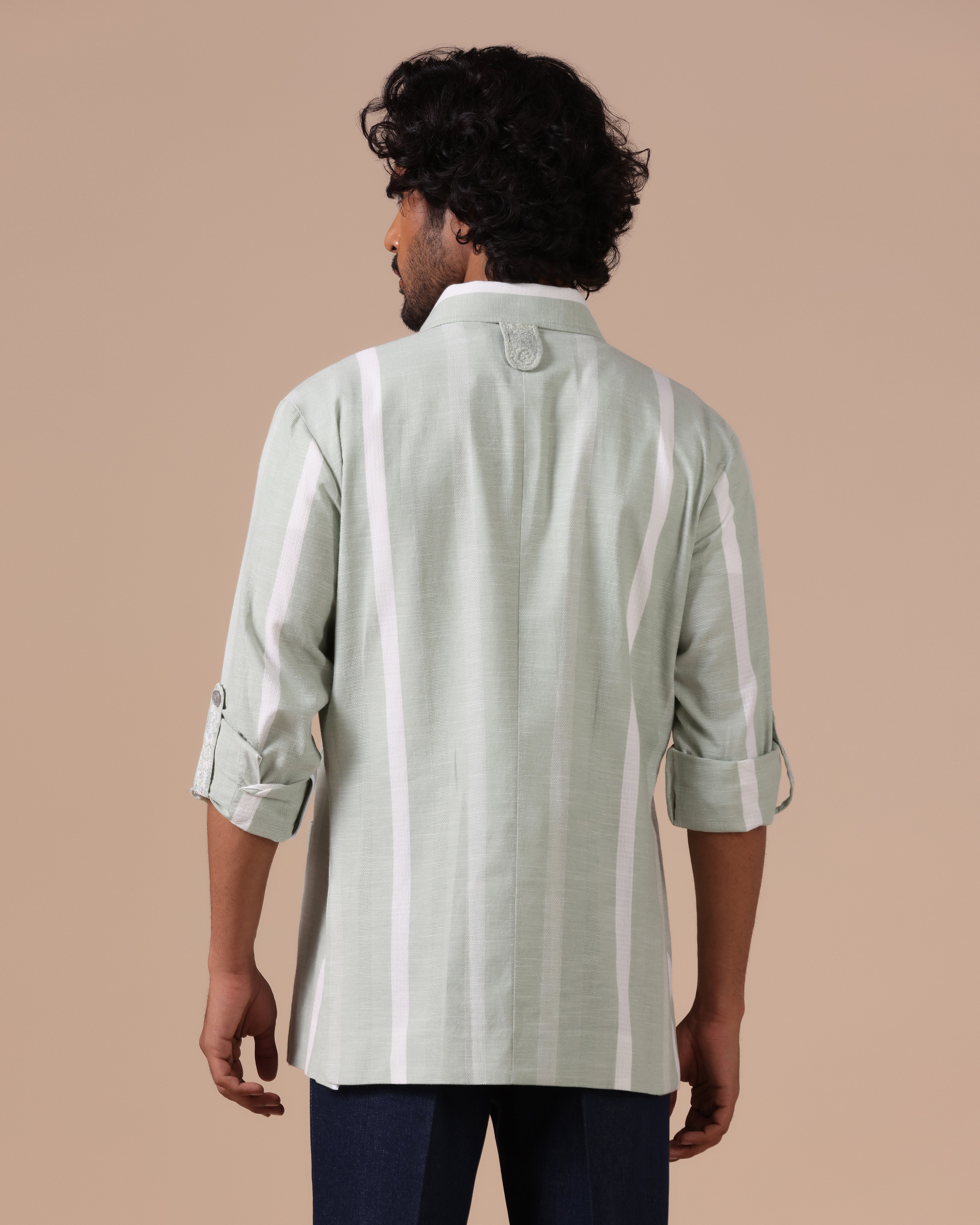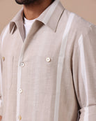 Brushed Cotton Linen Shacket with Embroidered Placket Detailing