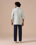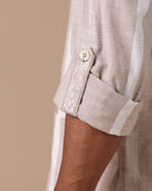 - Seasonal Style: Brushed cotton-linen blend with a light, summer-ready base and white vertical stripes