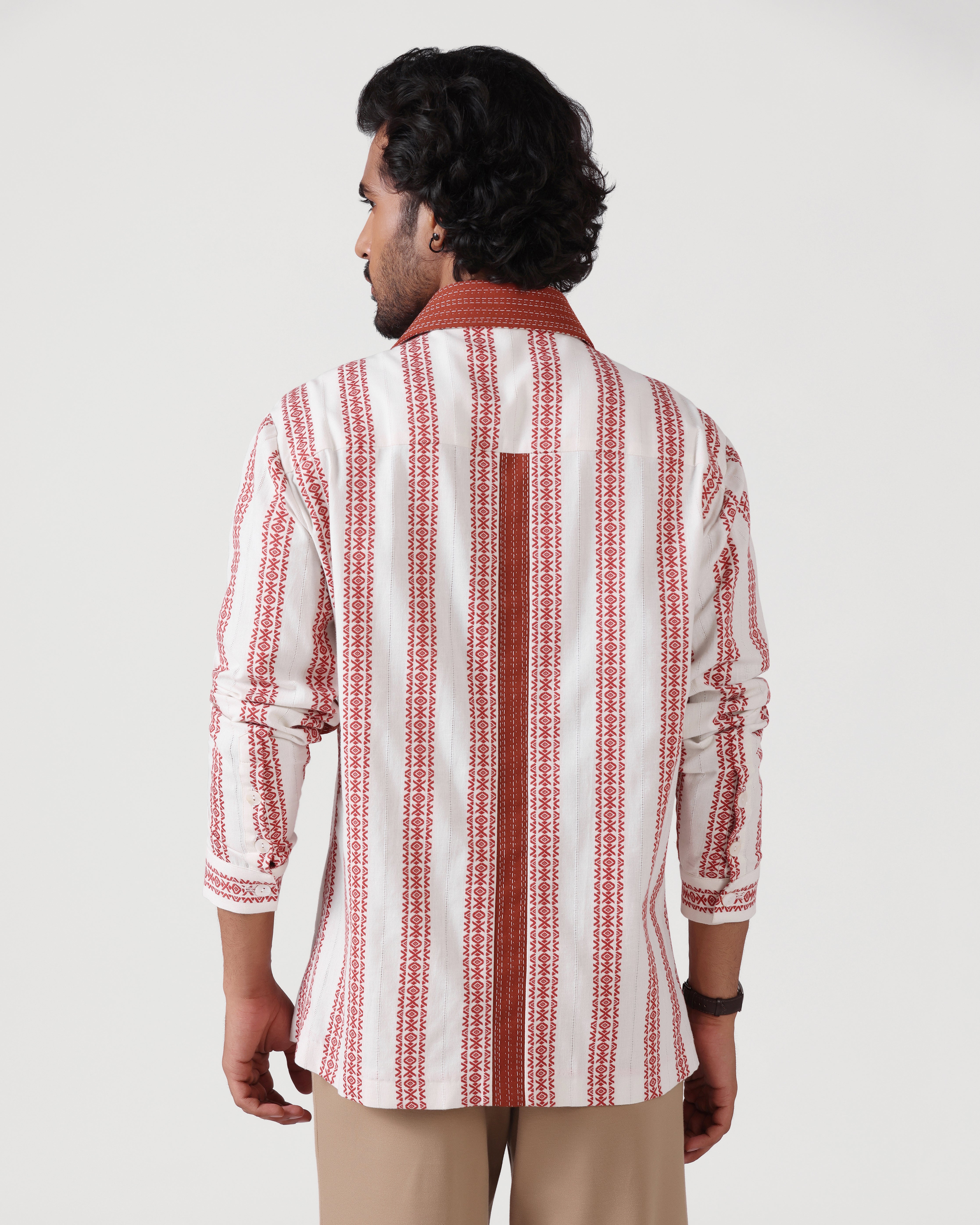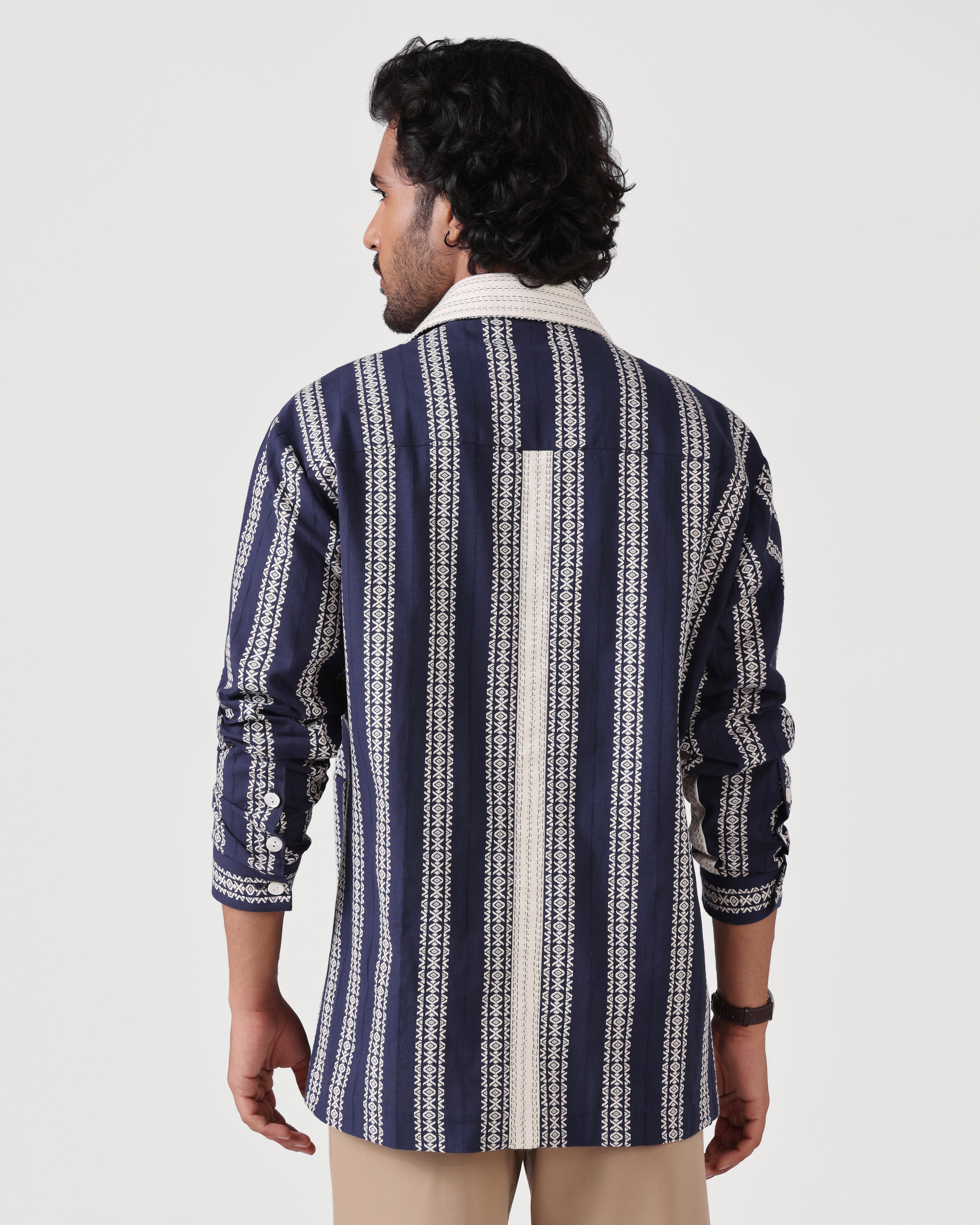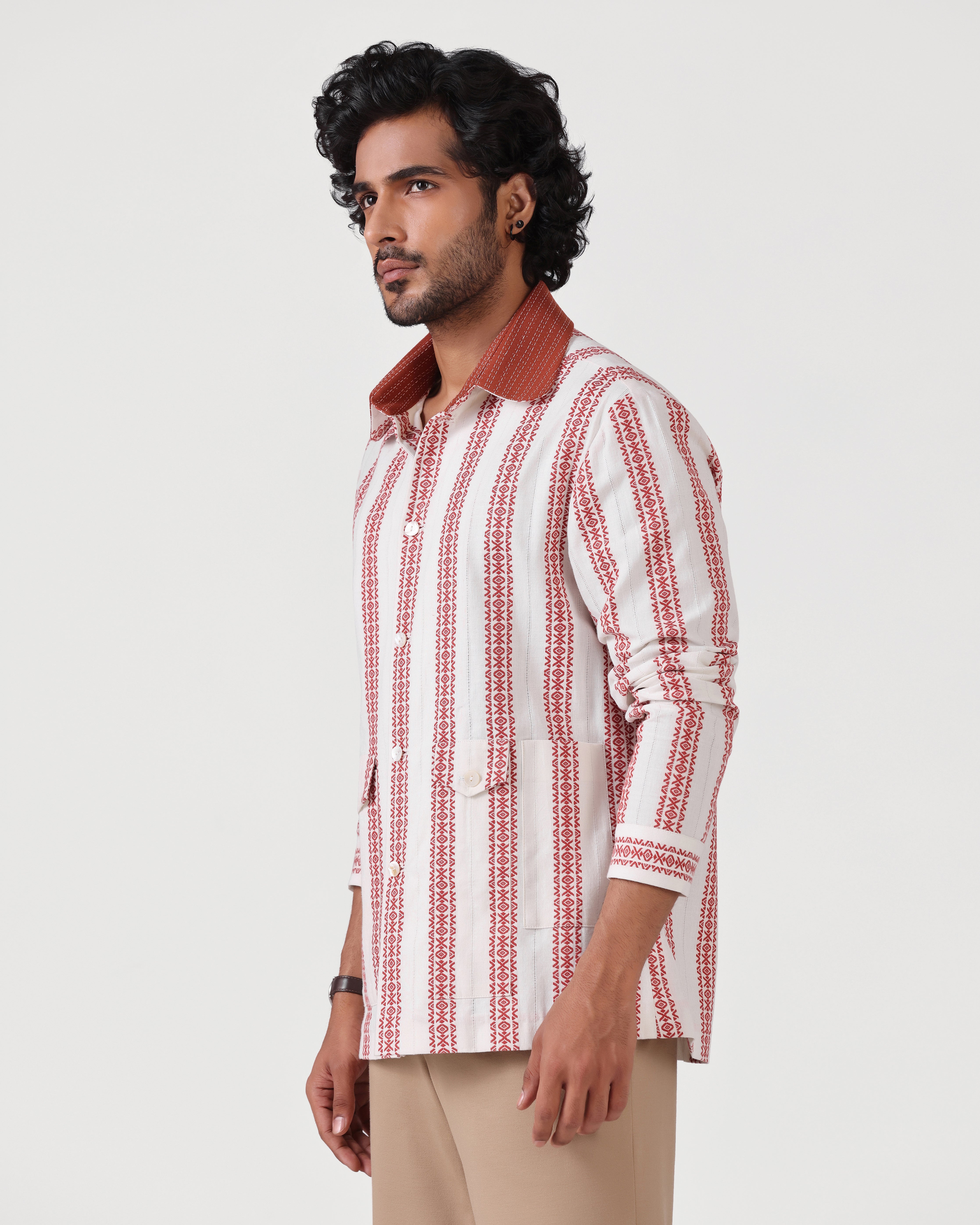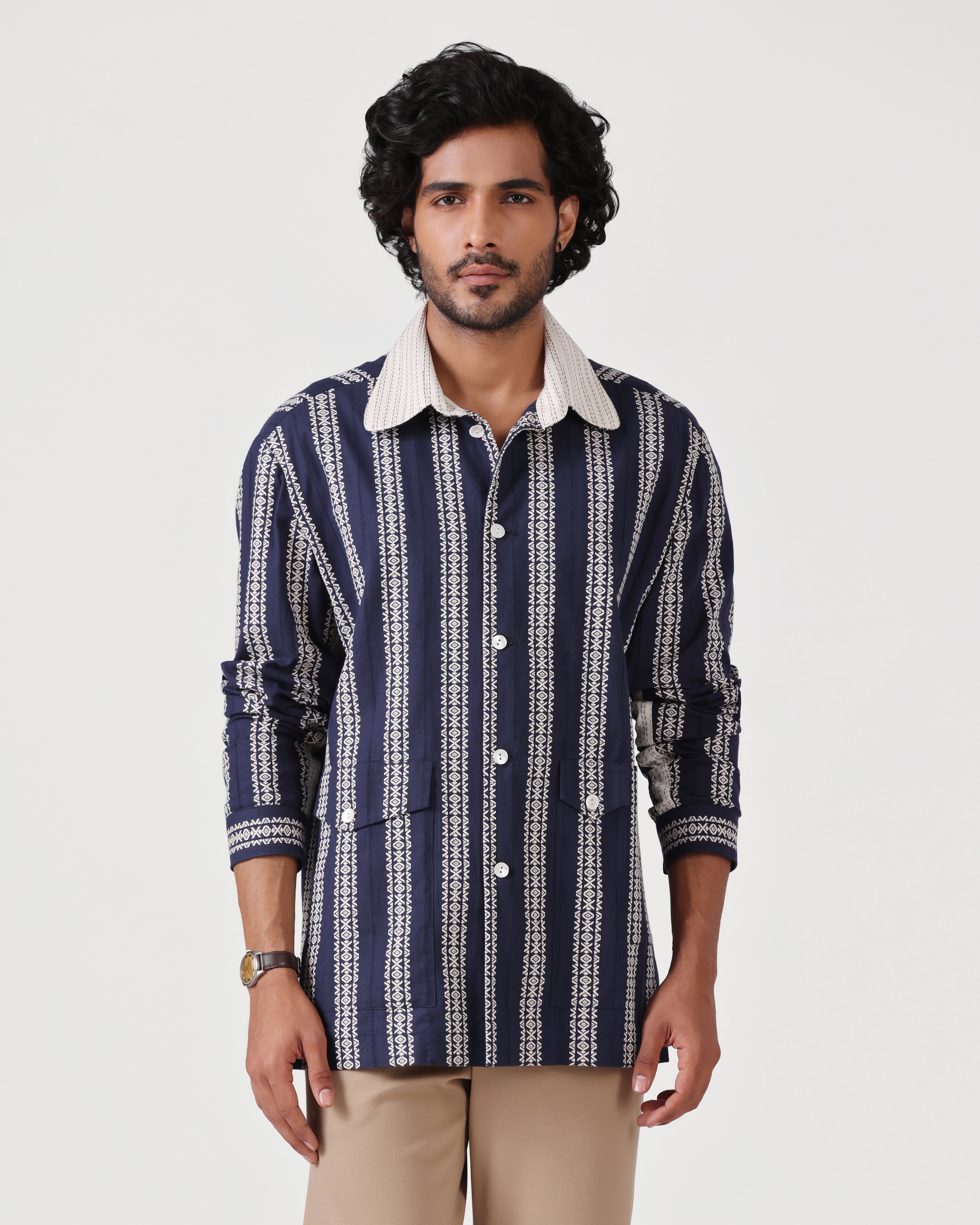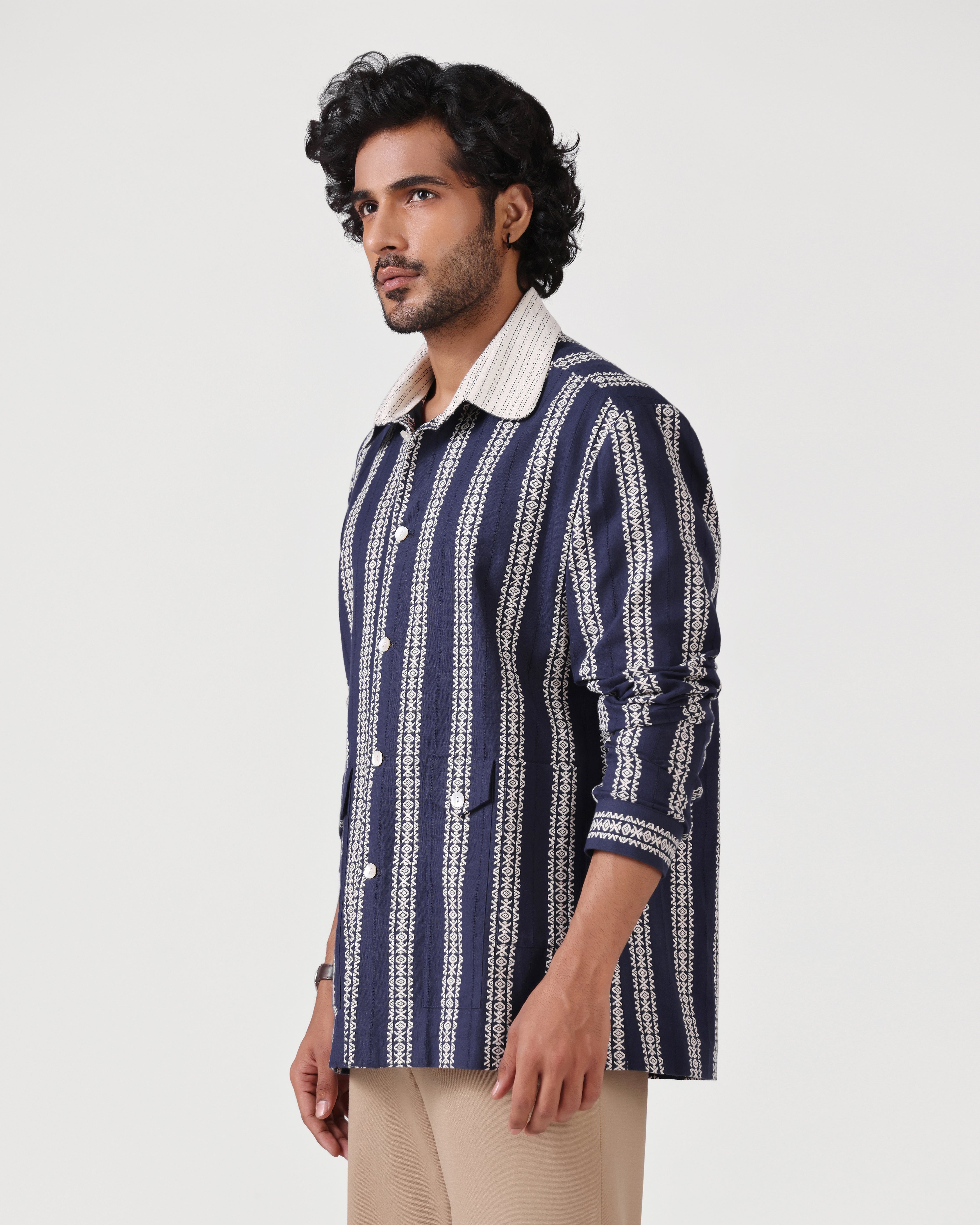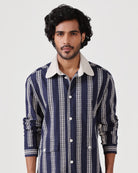 Crafted Contrast Collar Handloom Cotton Linen Shacket