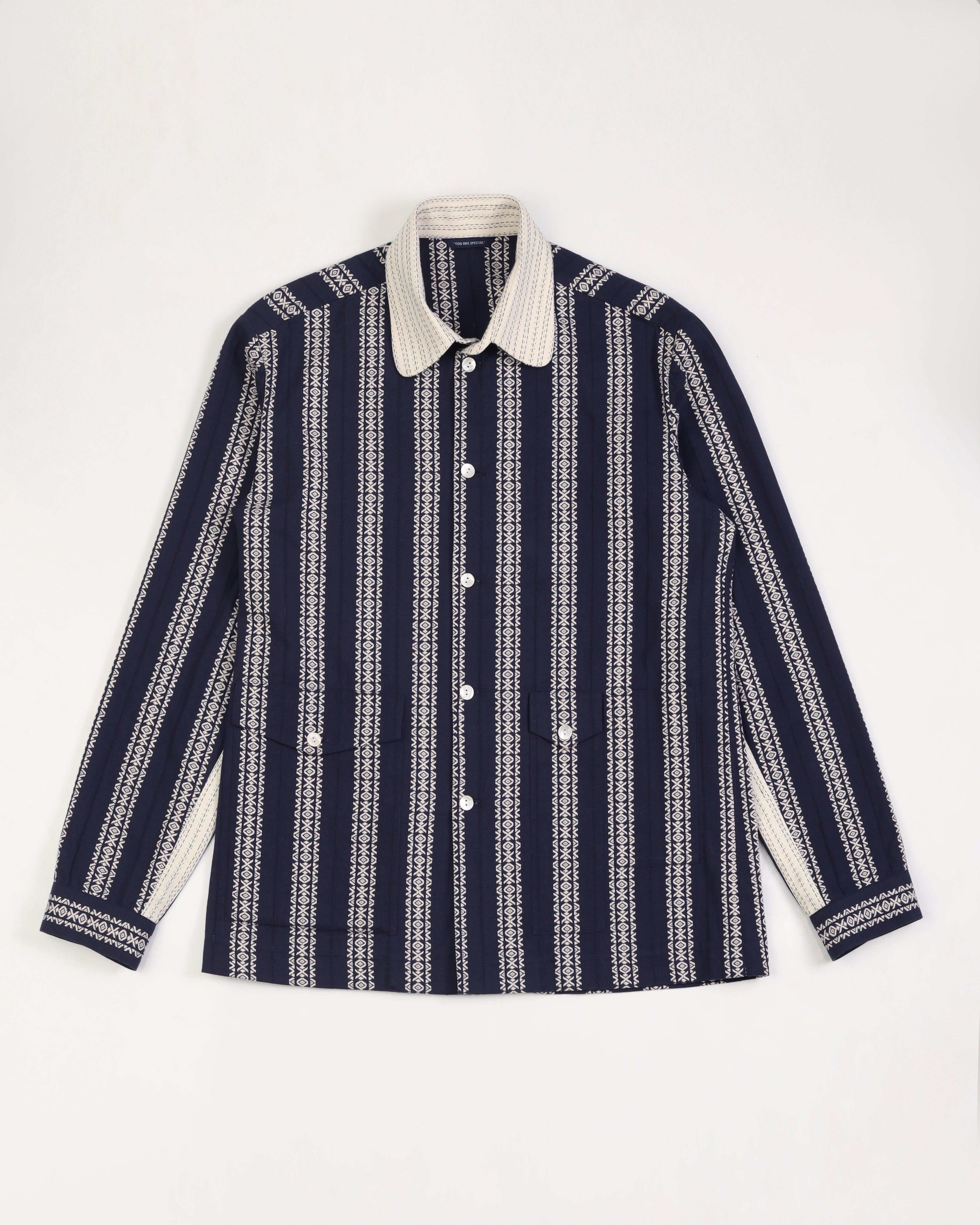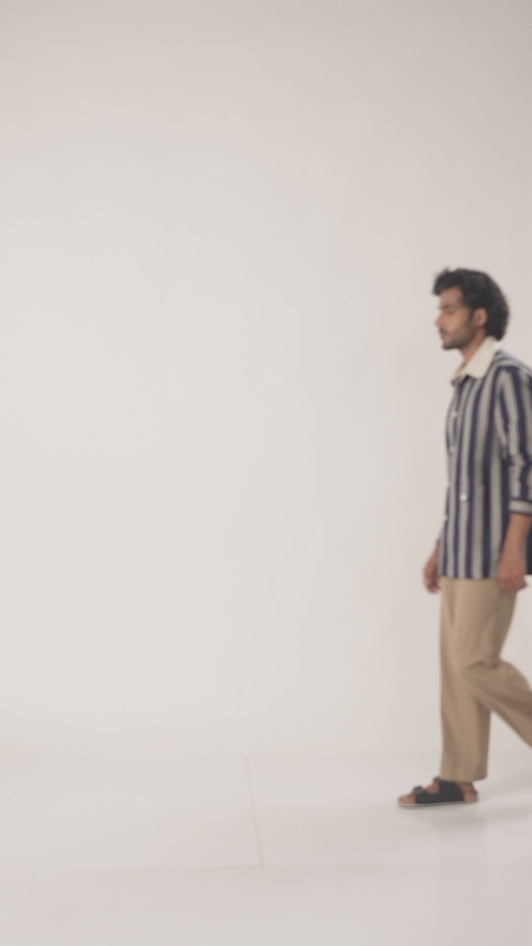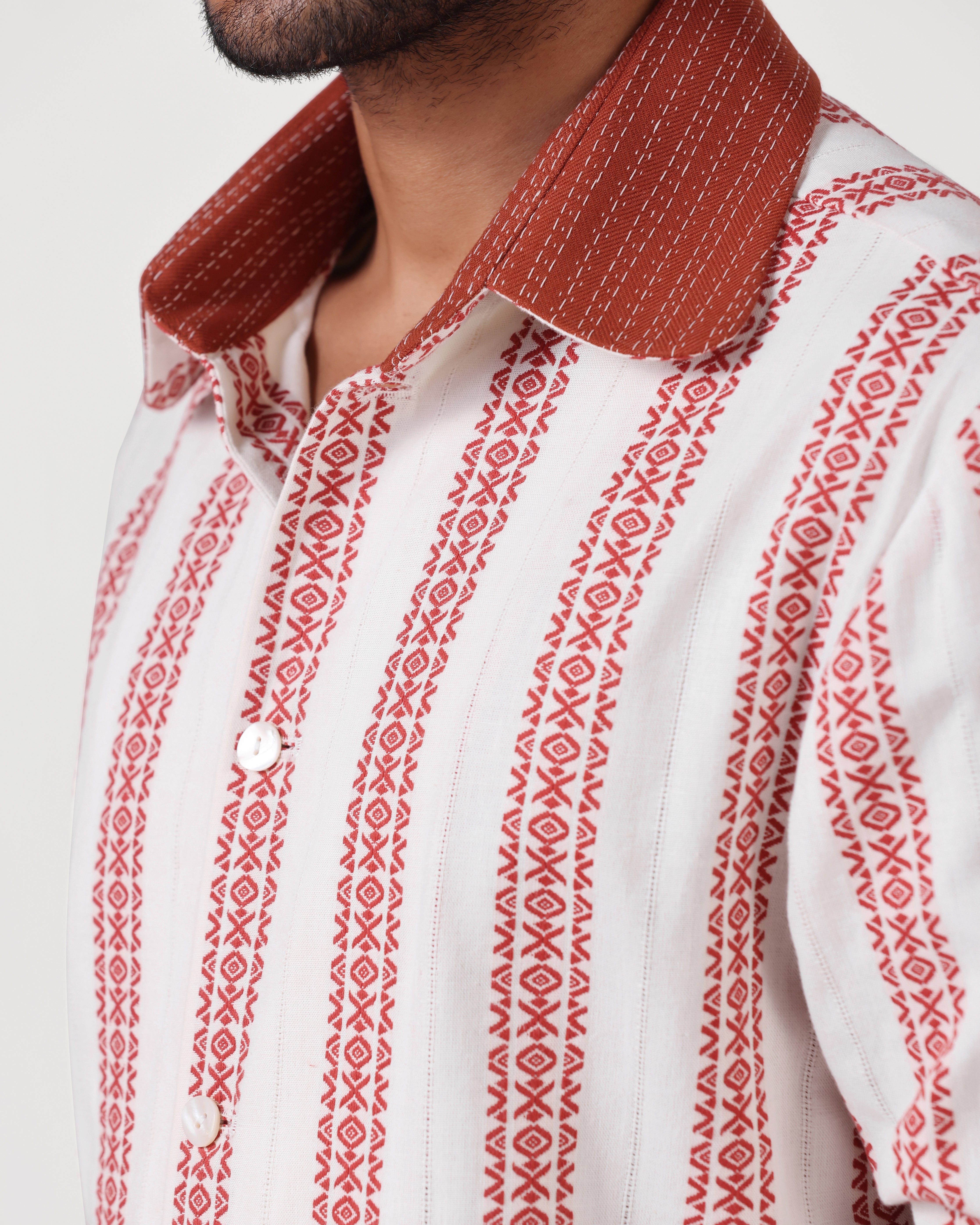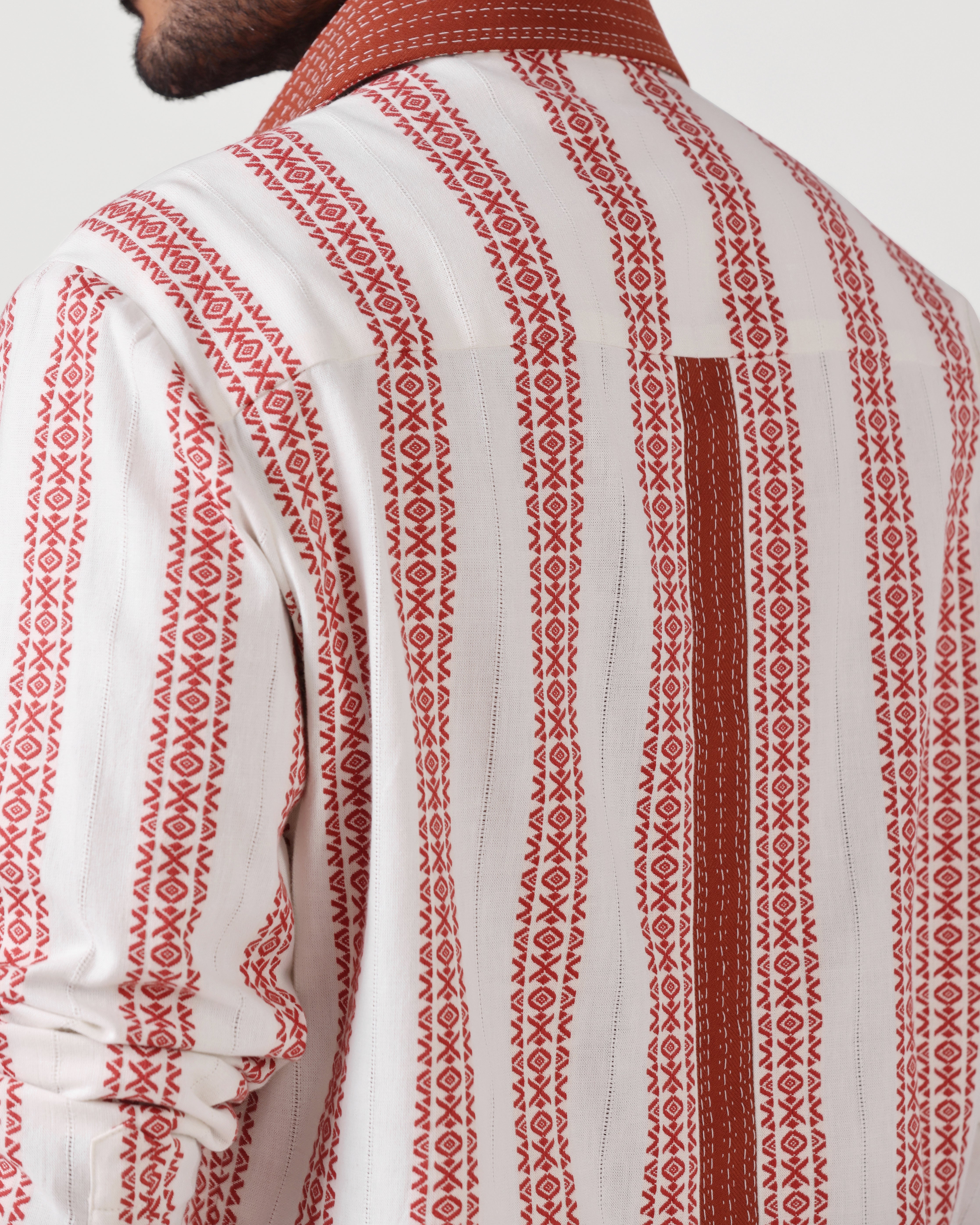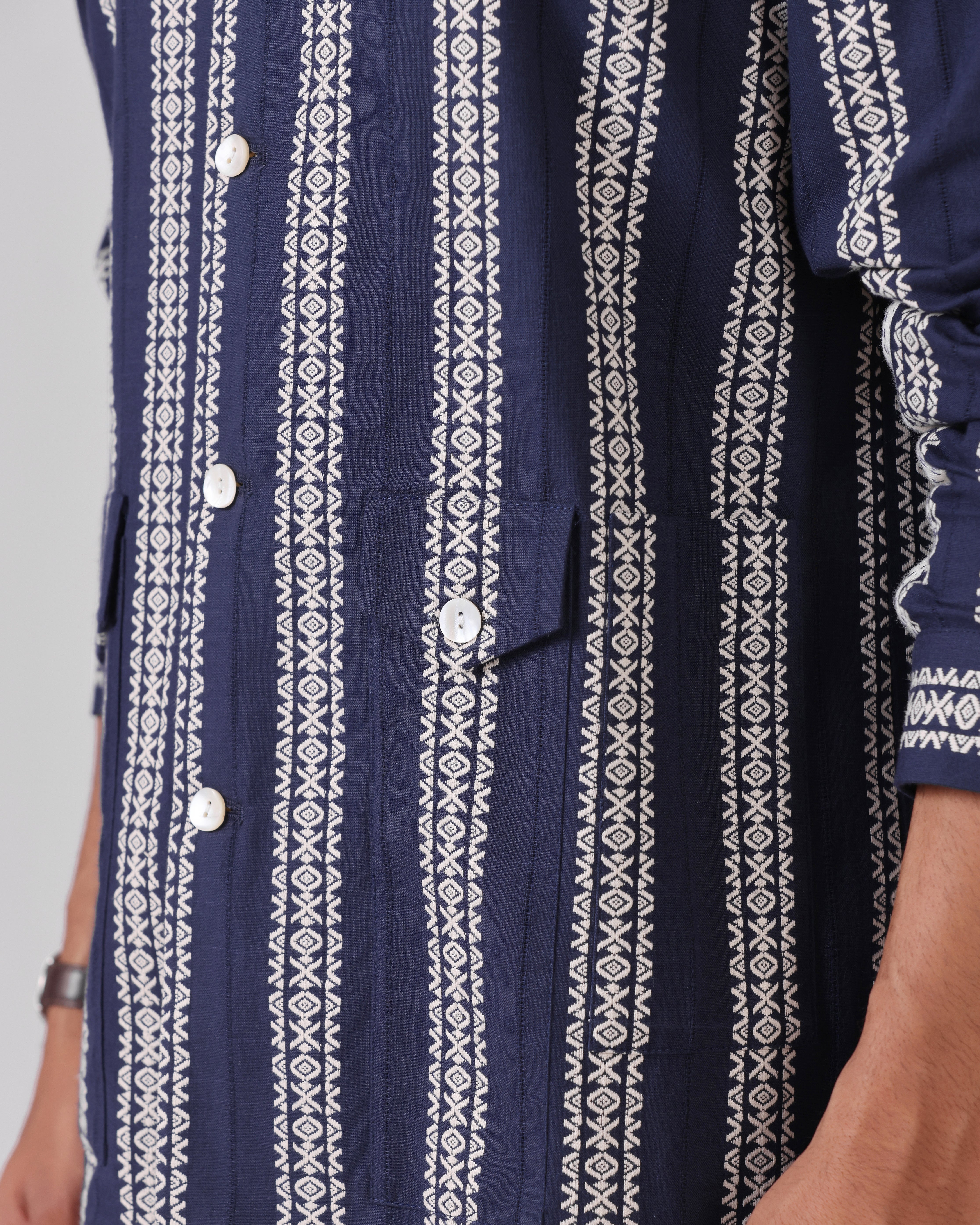 Crafted Contrast Collar Handloom Cotton Linen Shacket