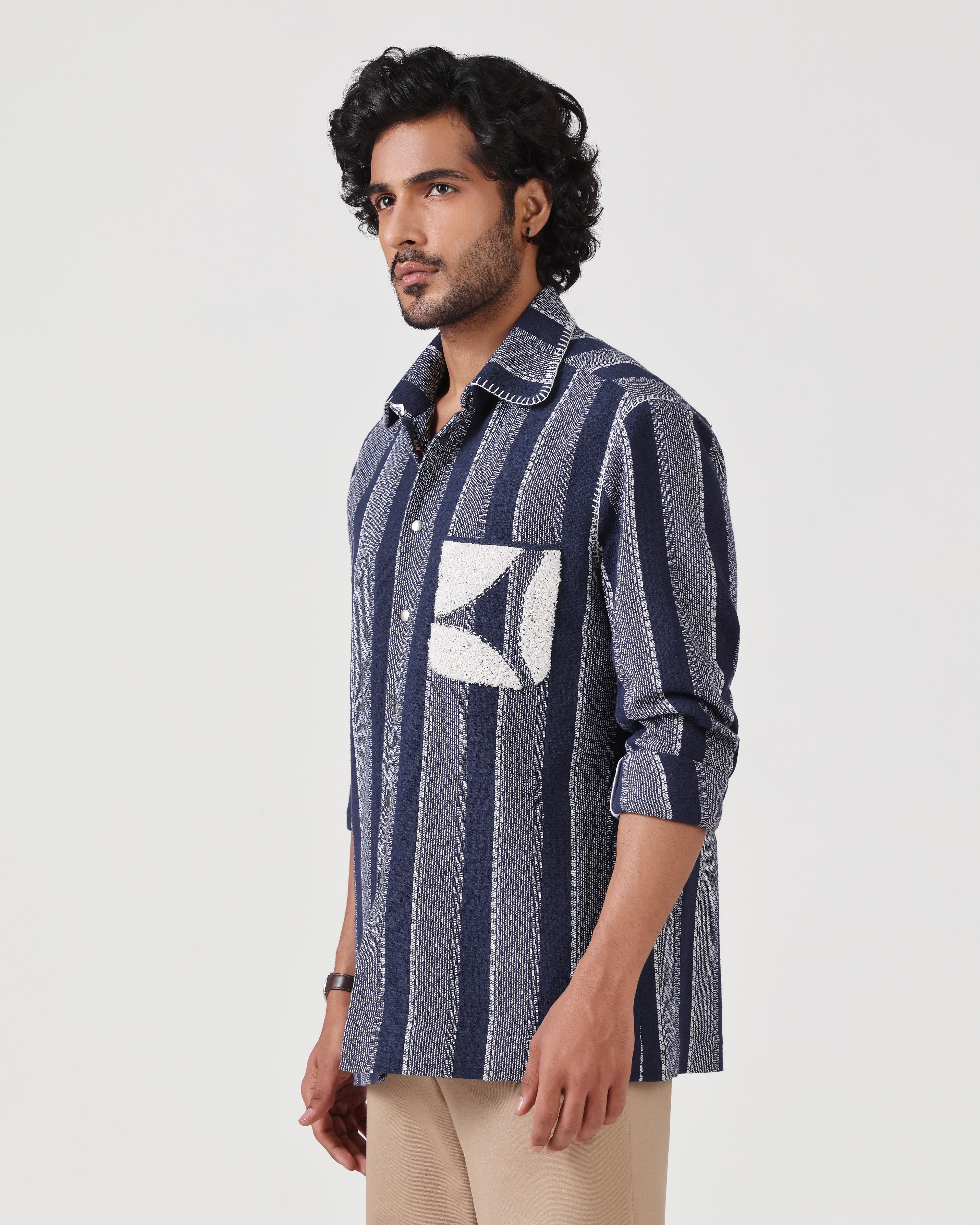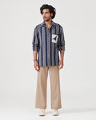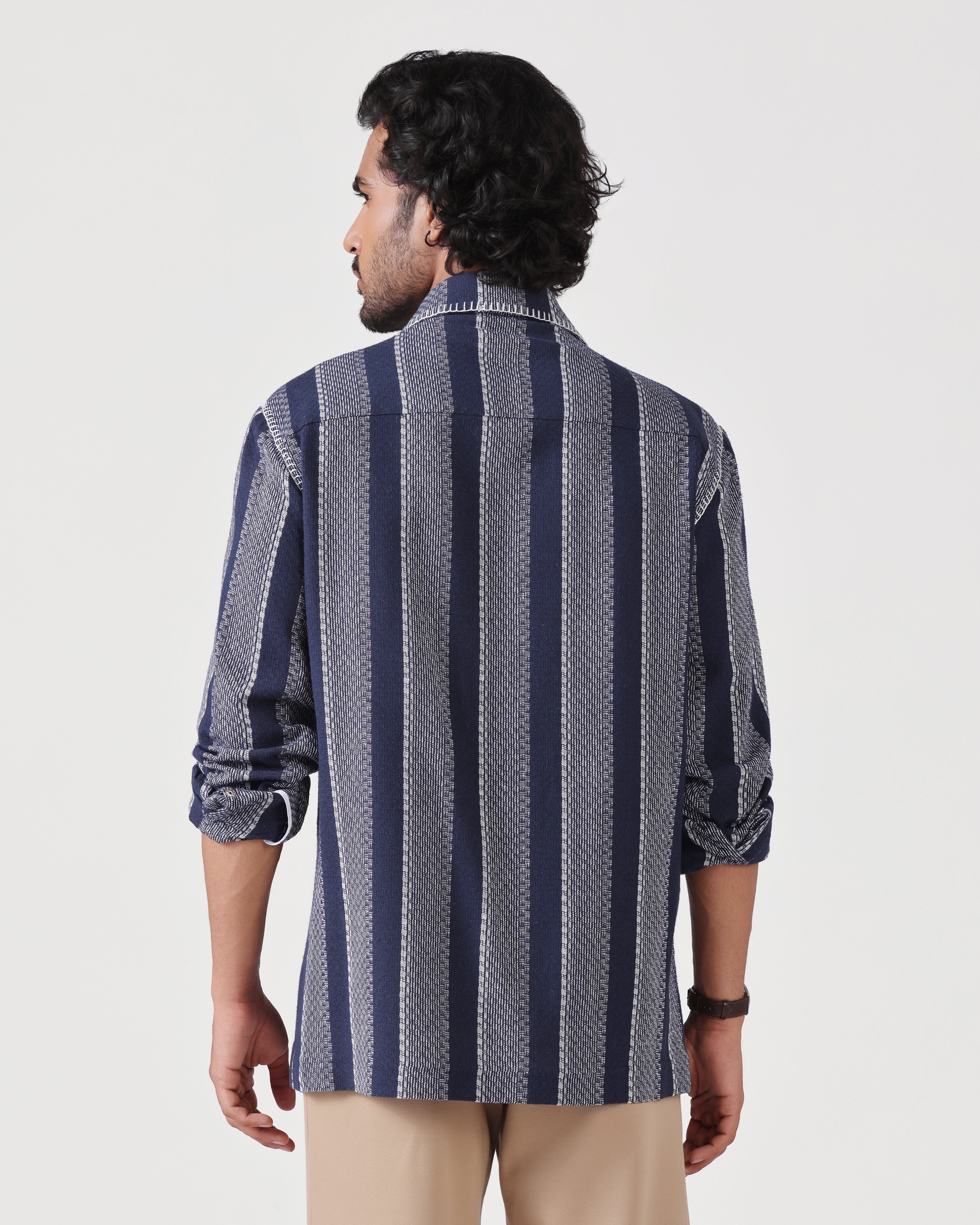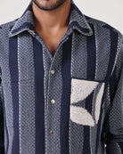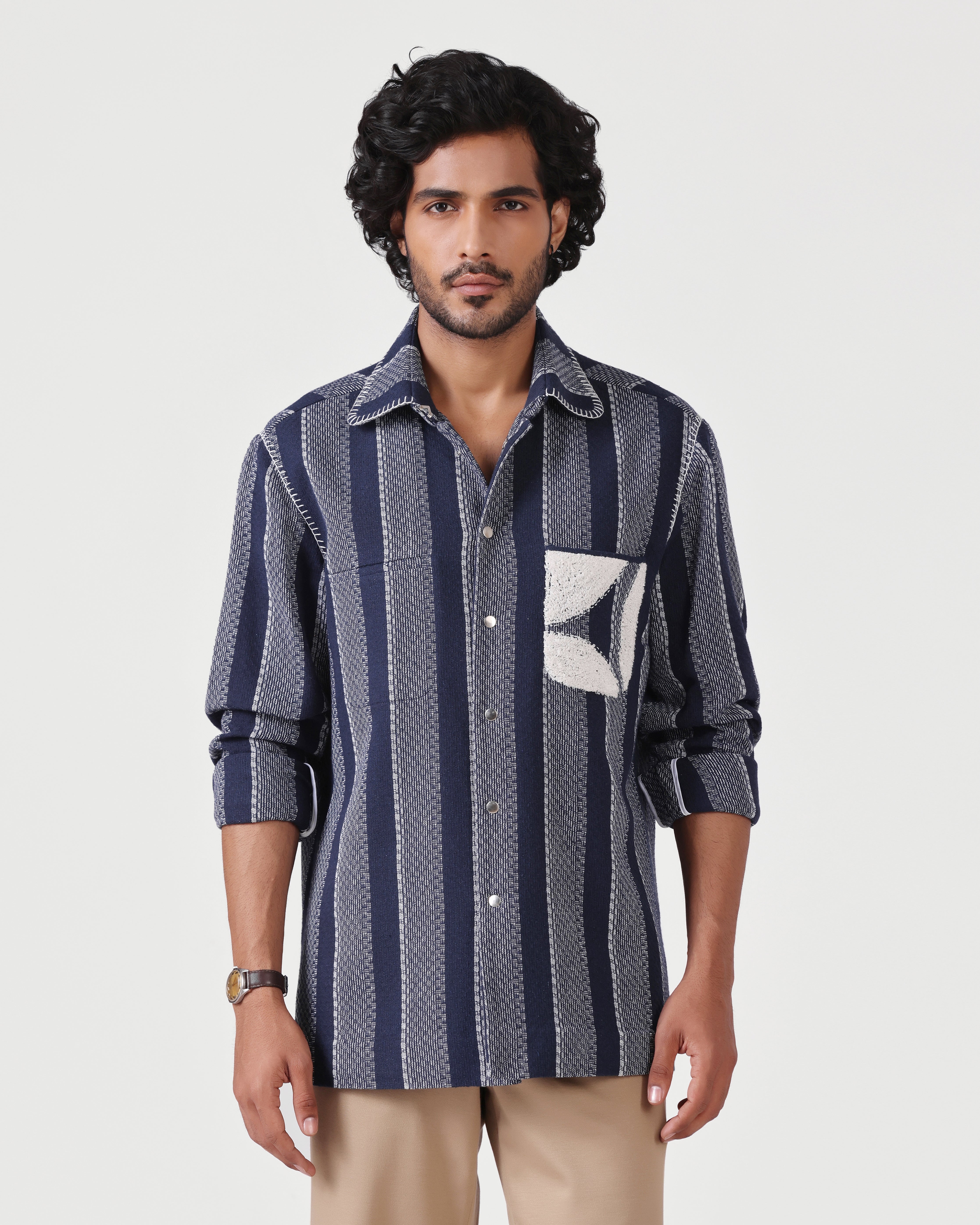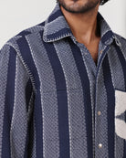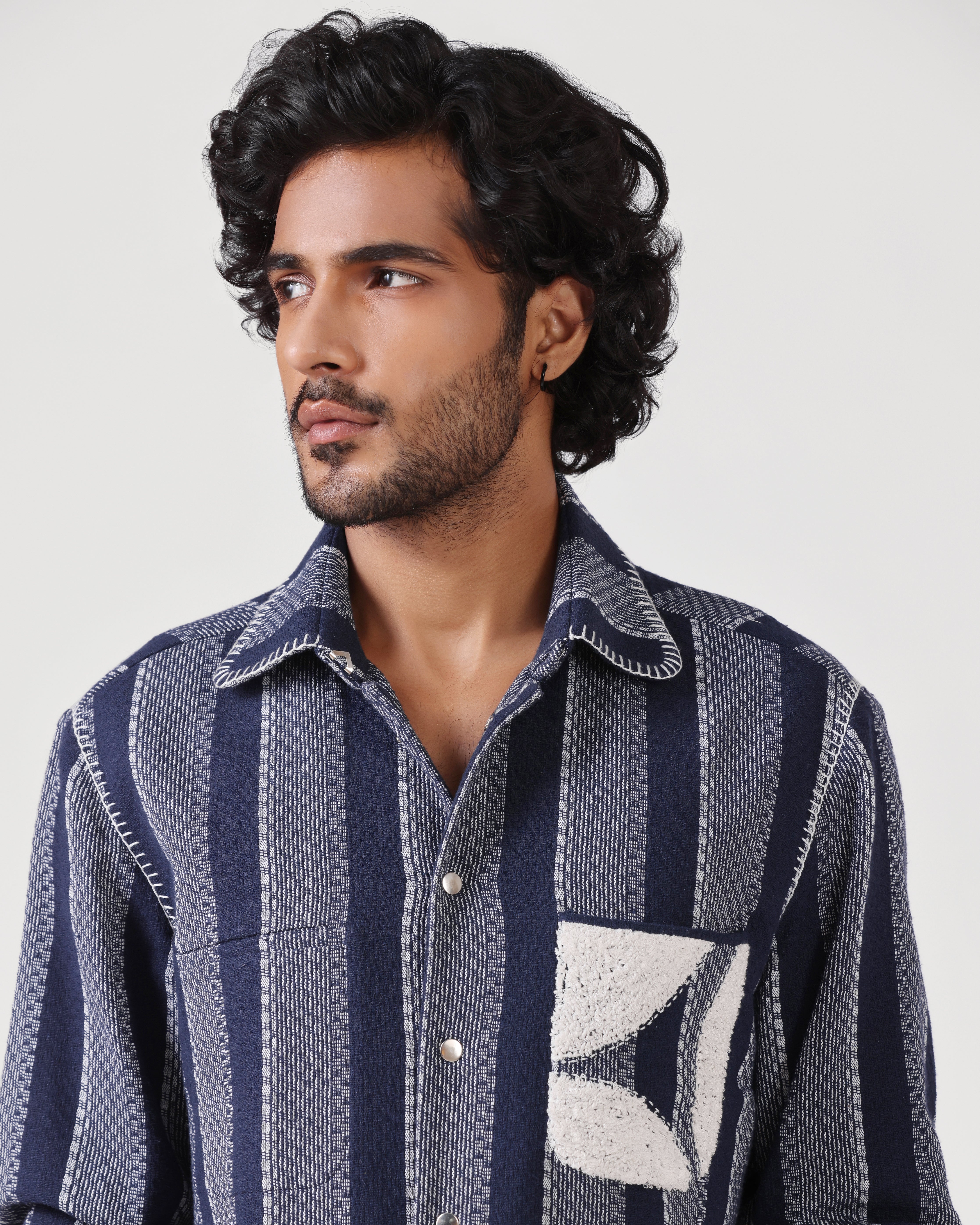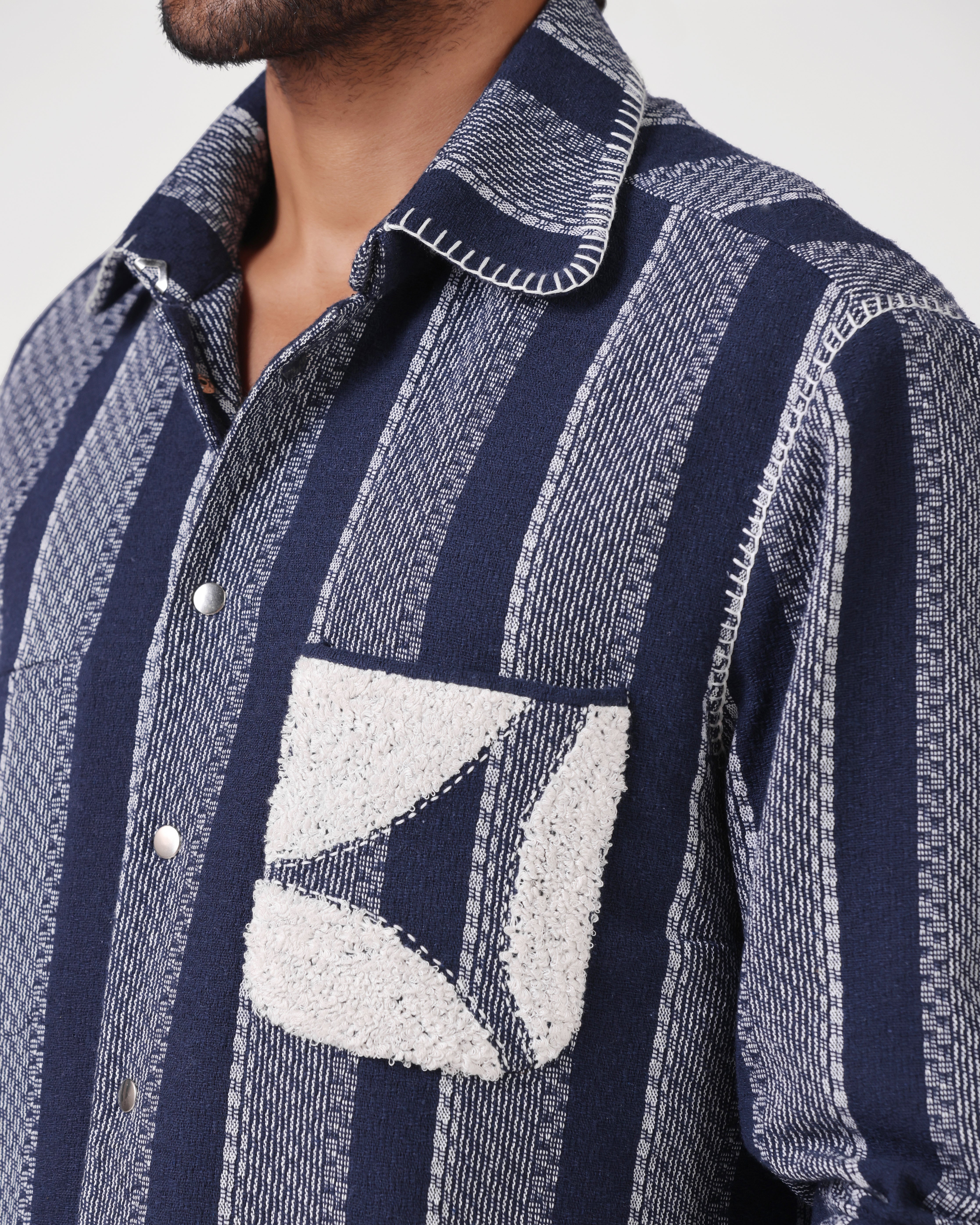 Handloom Cotton-Linen Shacket with Blanket Stithes on Hem