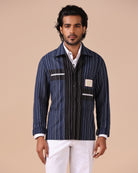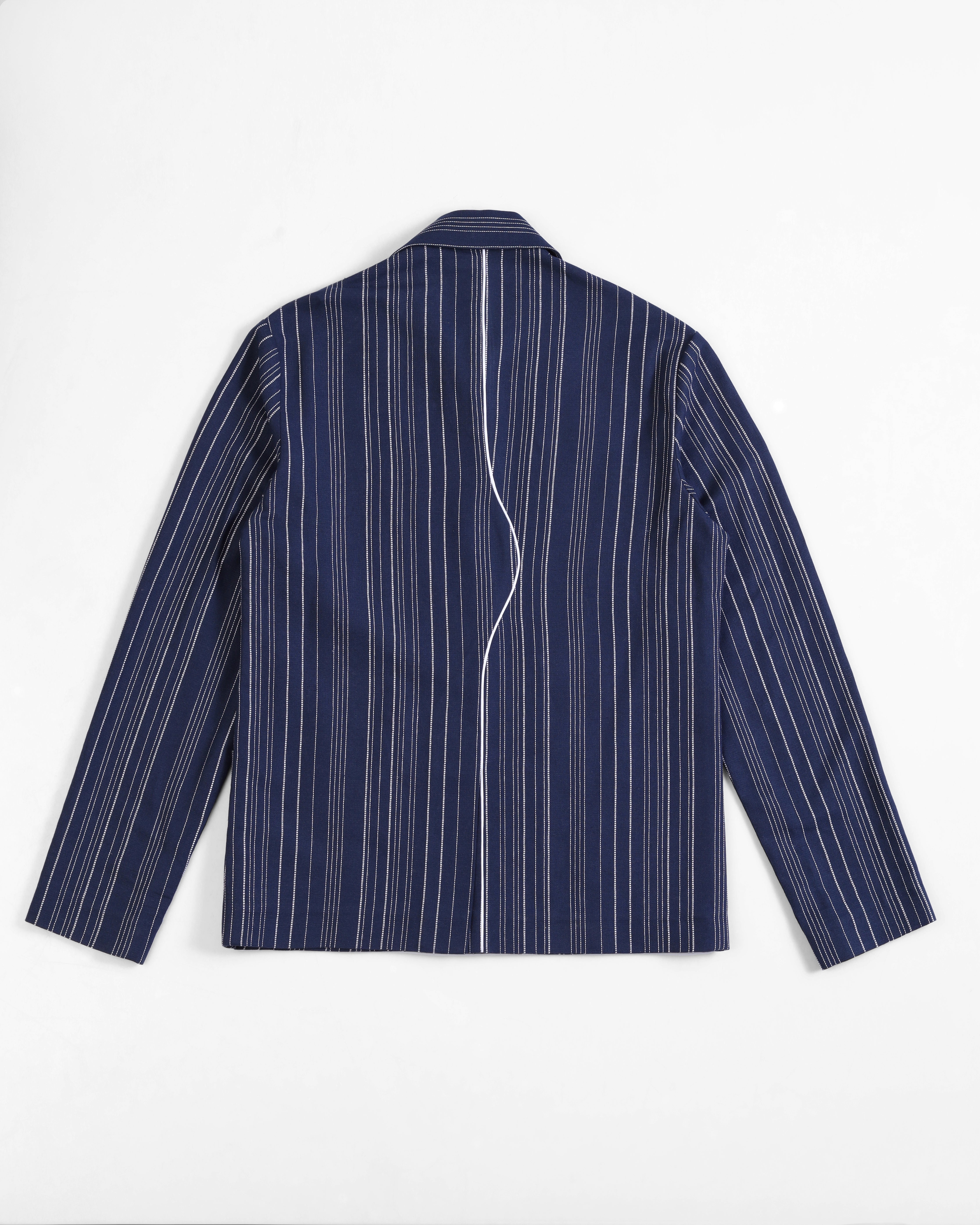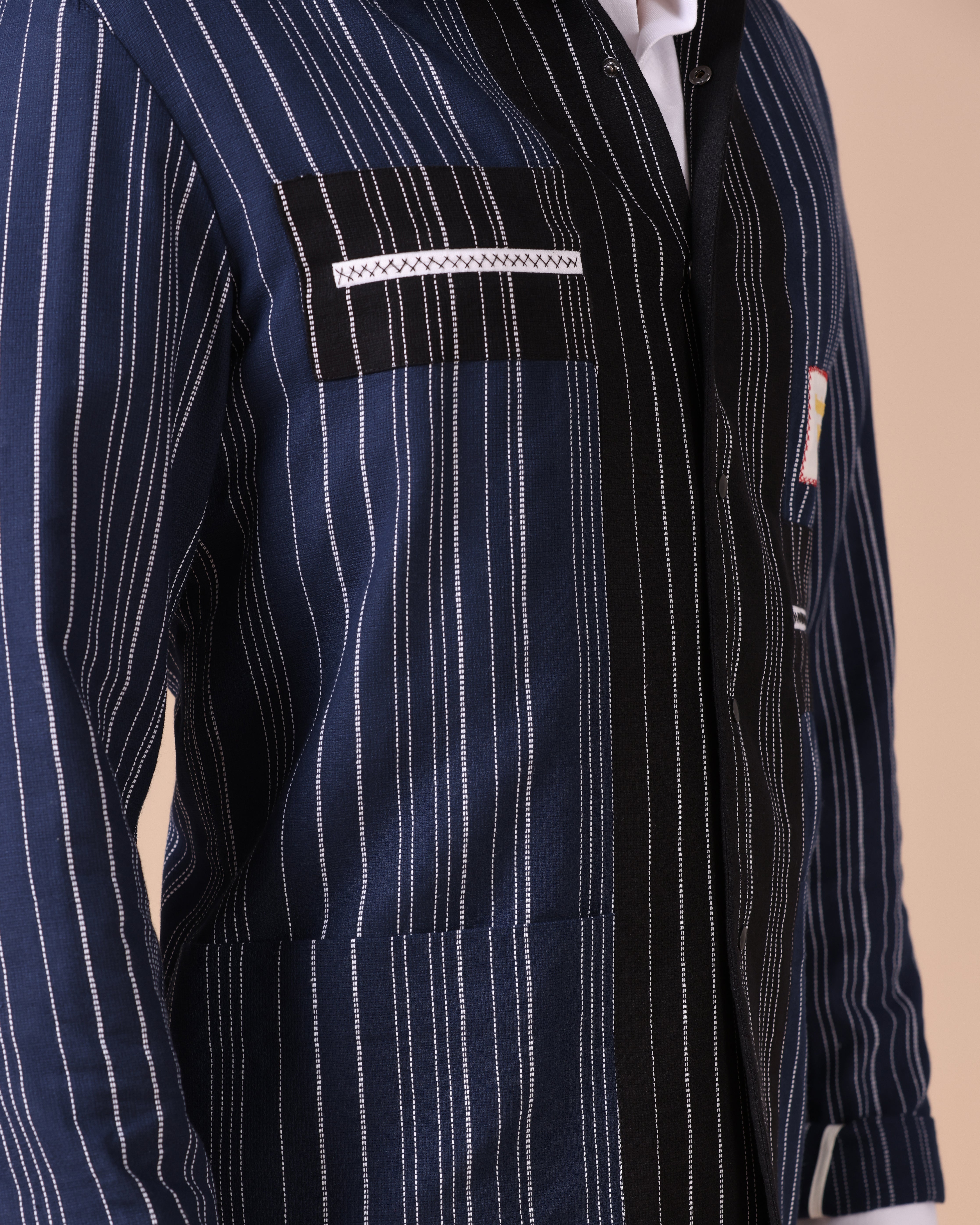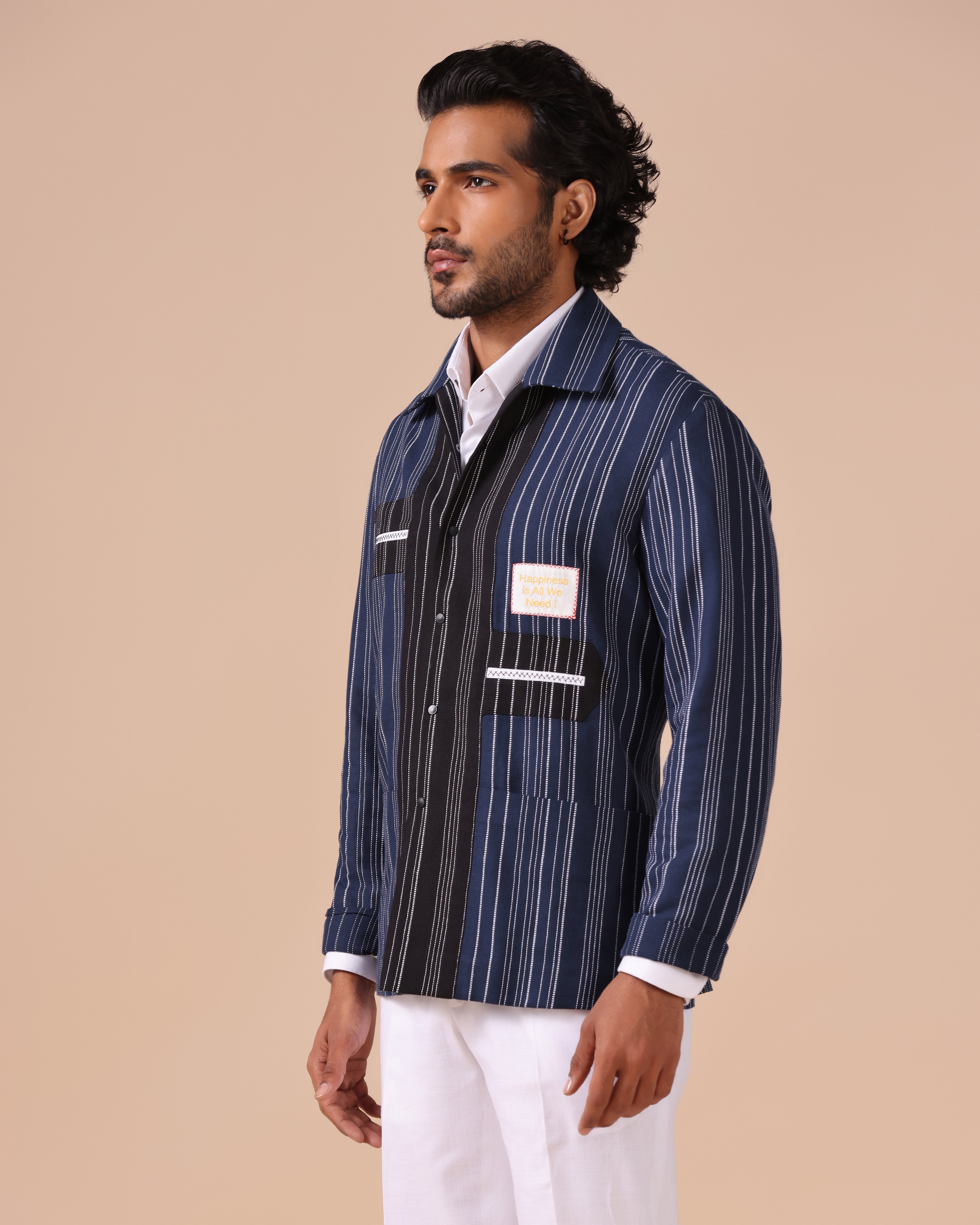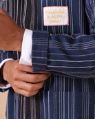 - Artisanal Fabric: Crafted from handloom cotton-linen with navy and black stripes for rich texture