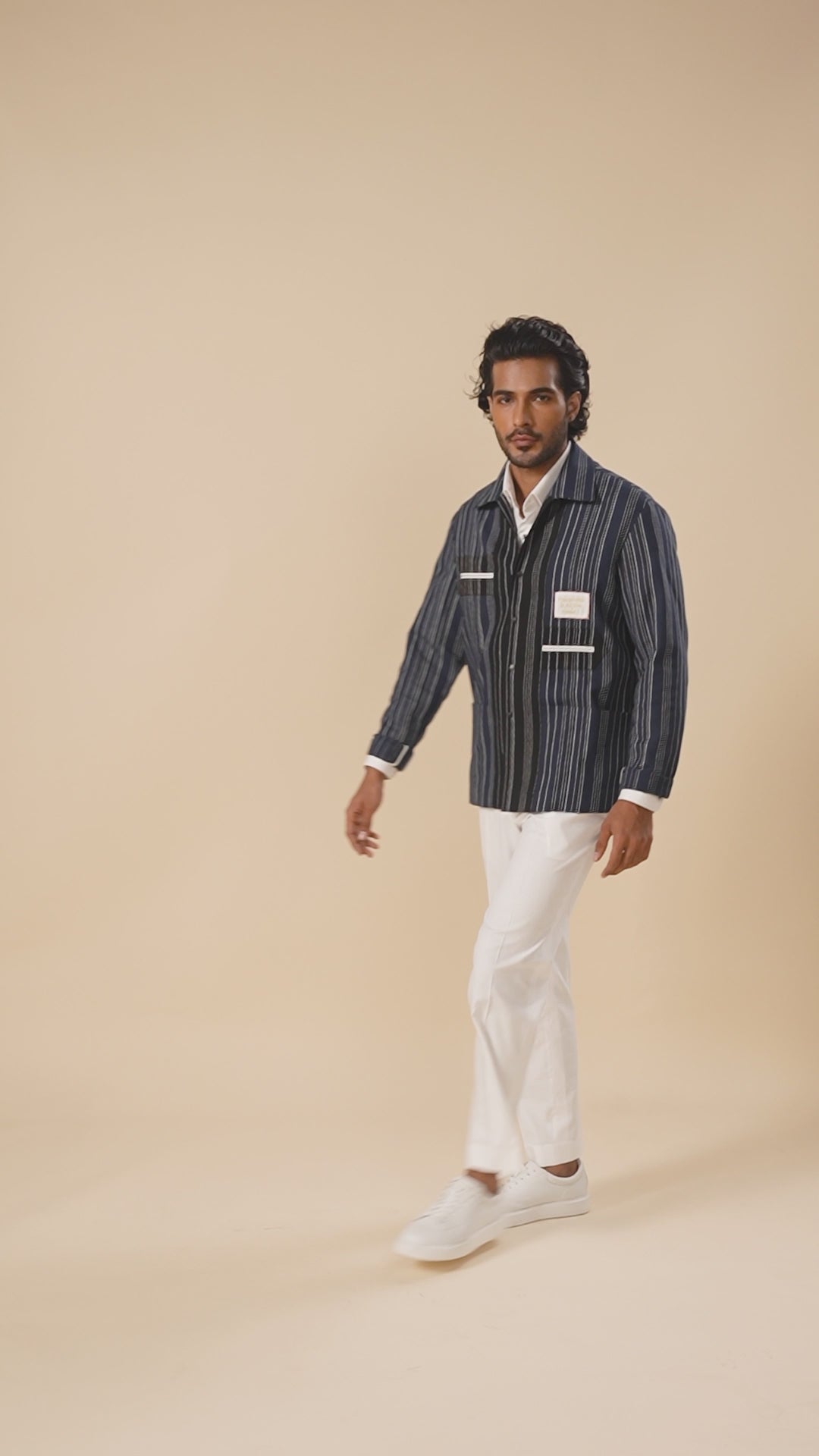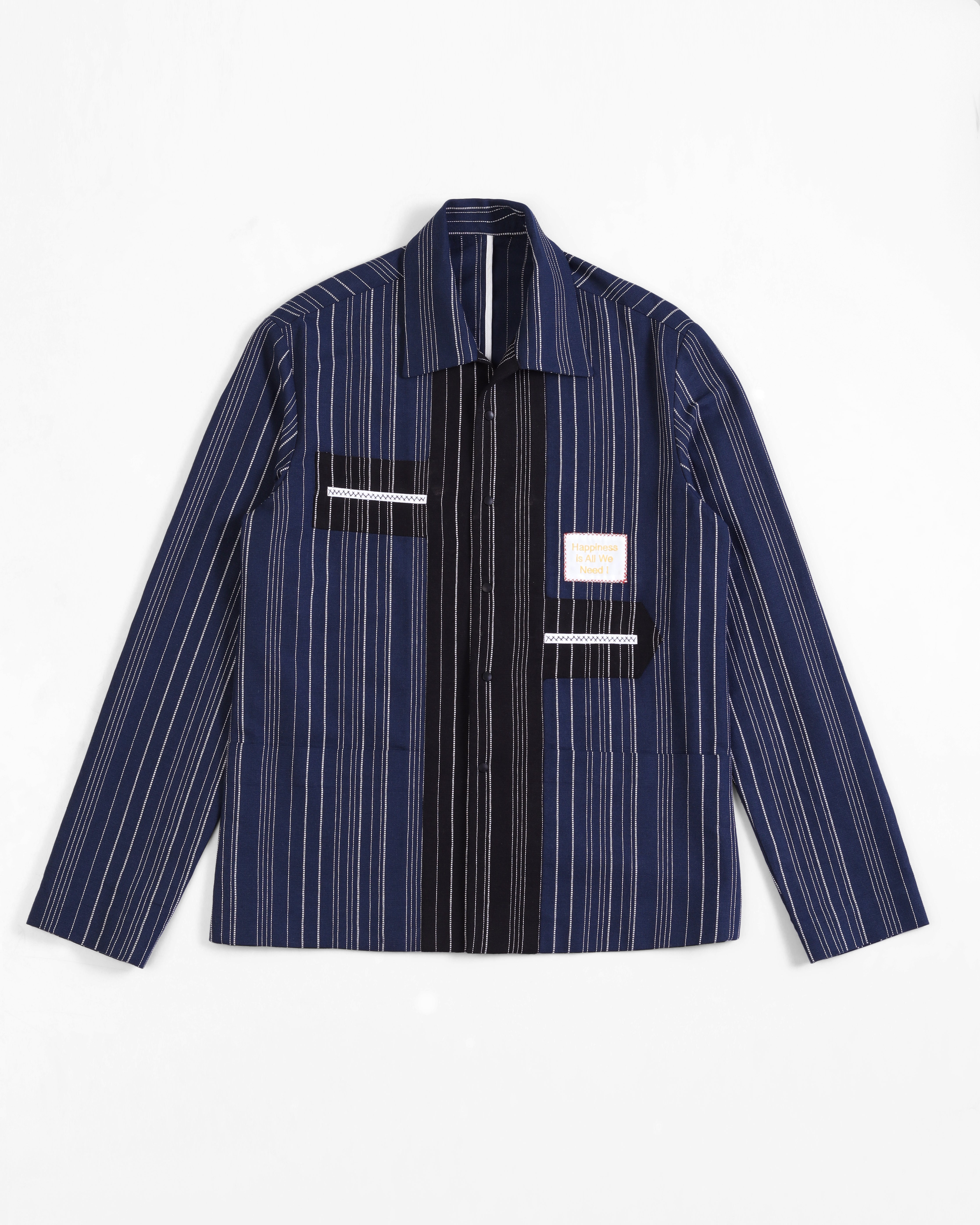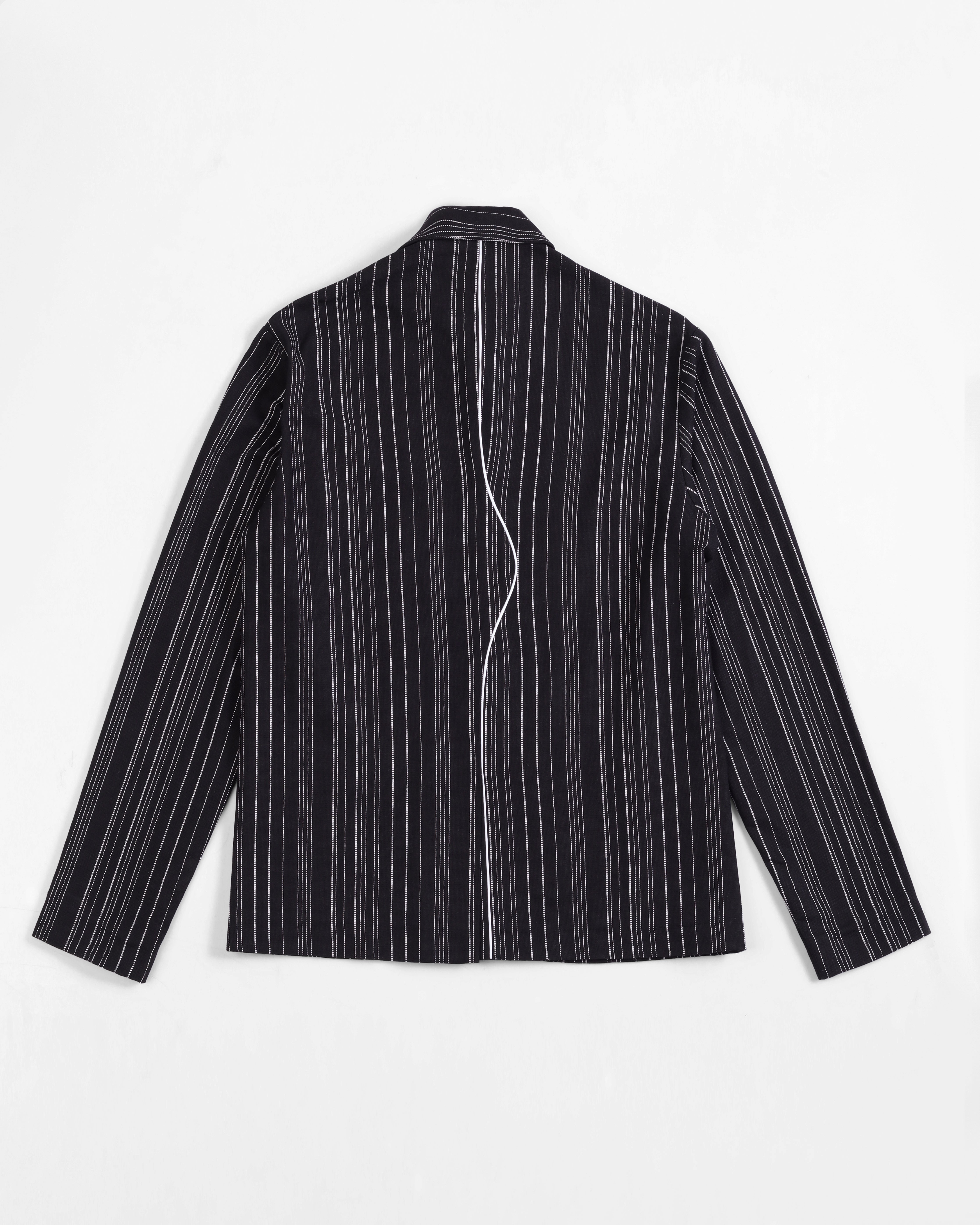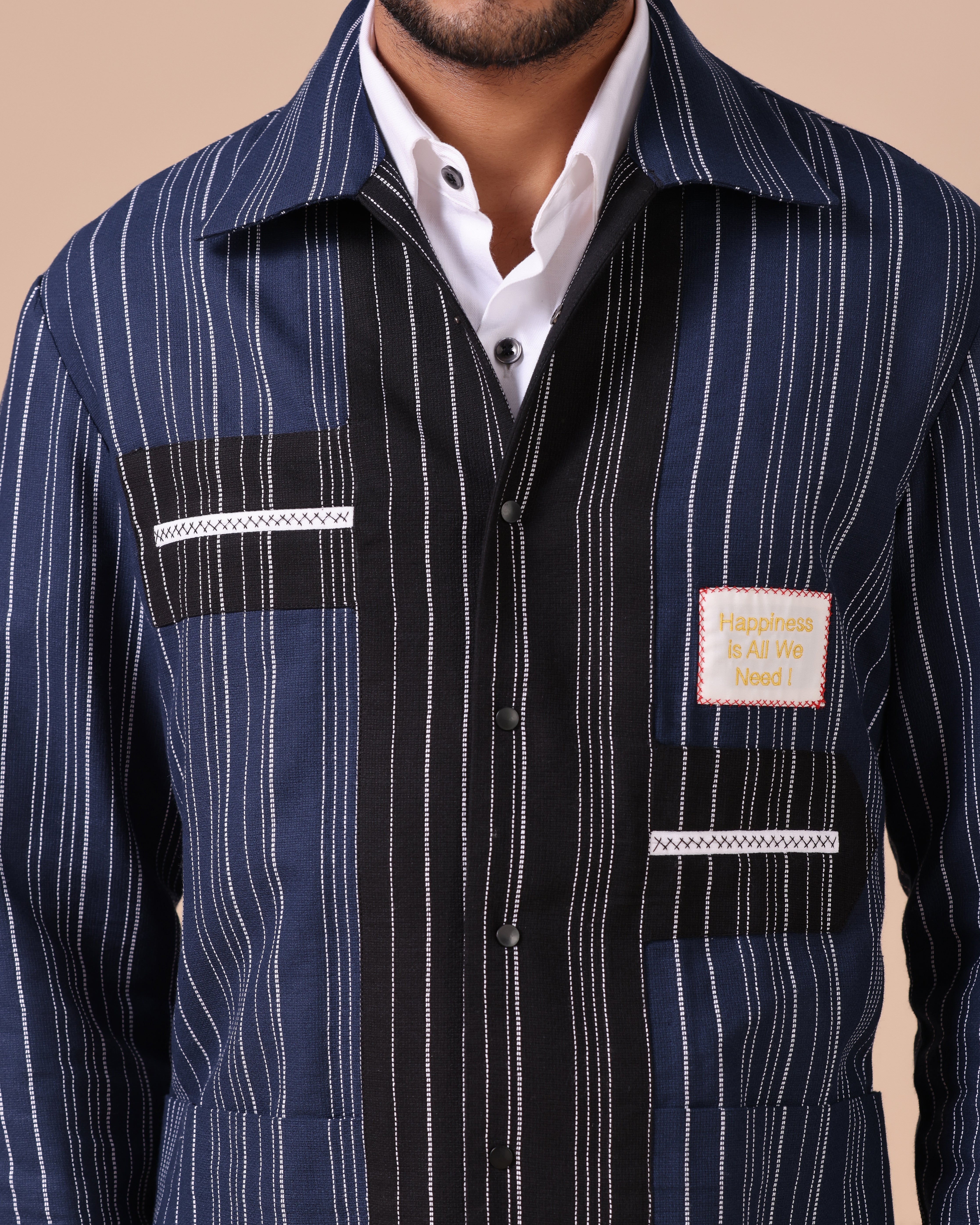 - Artisanal Fabric: Crafted from handloom cotton-linen with navy and black stripes for rich texture