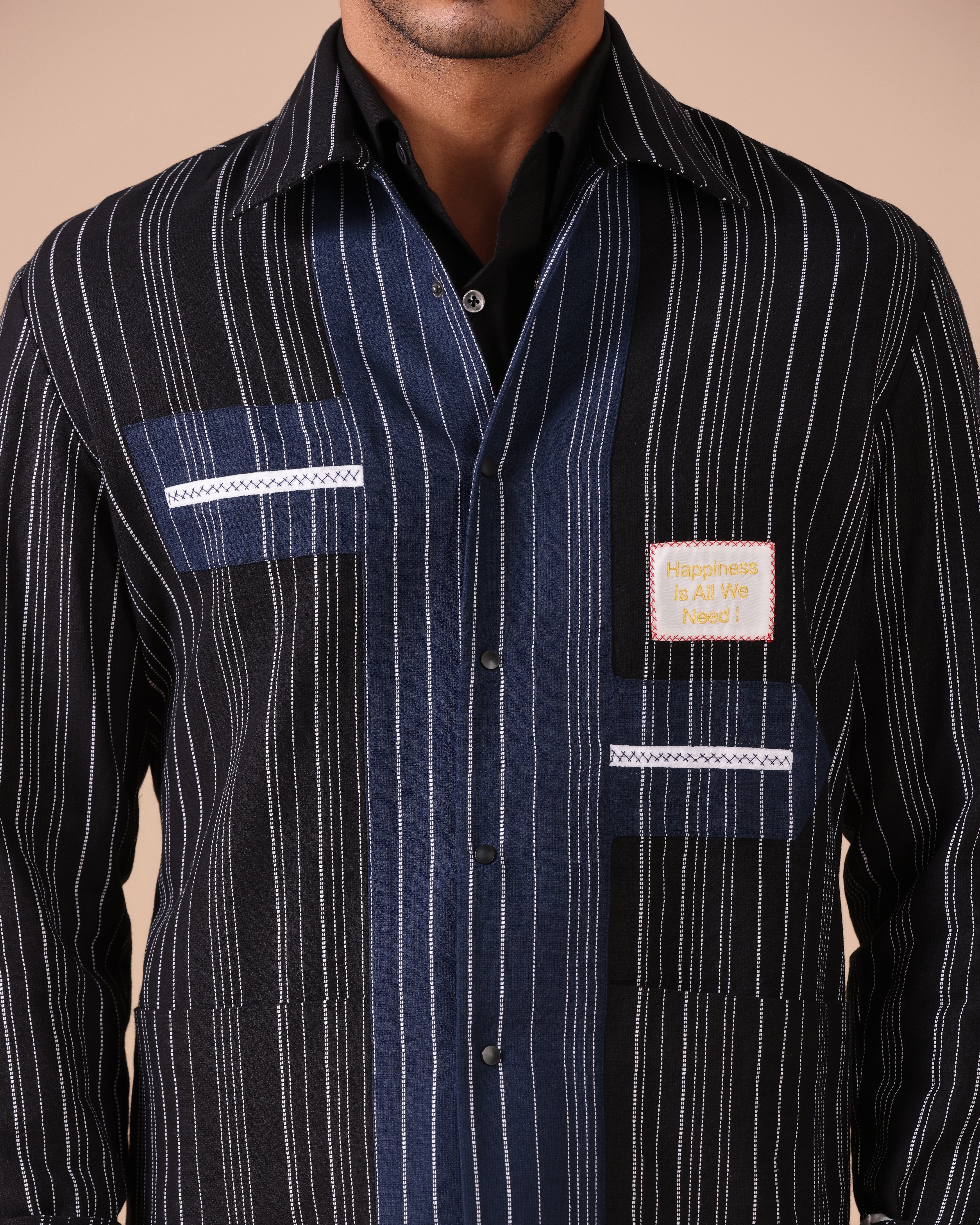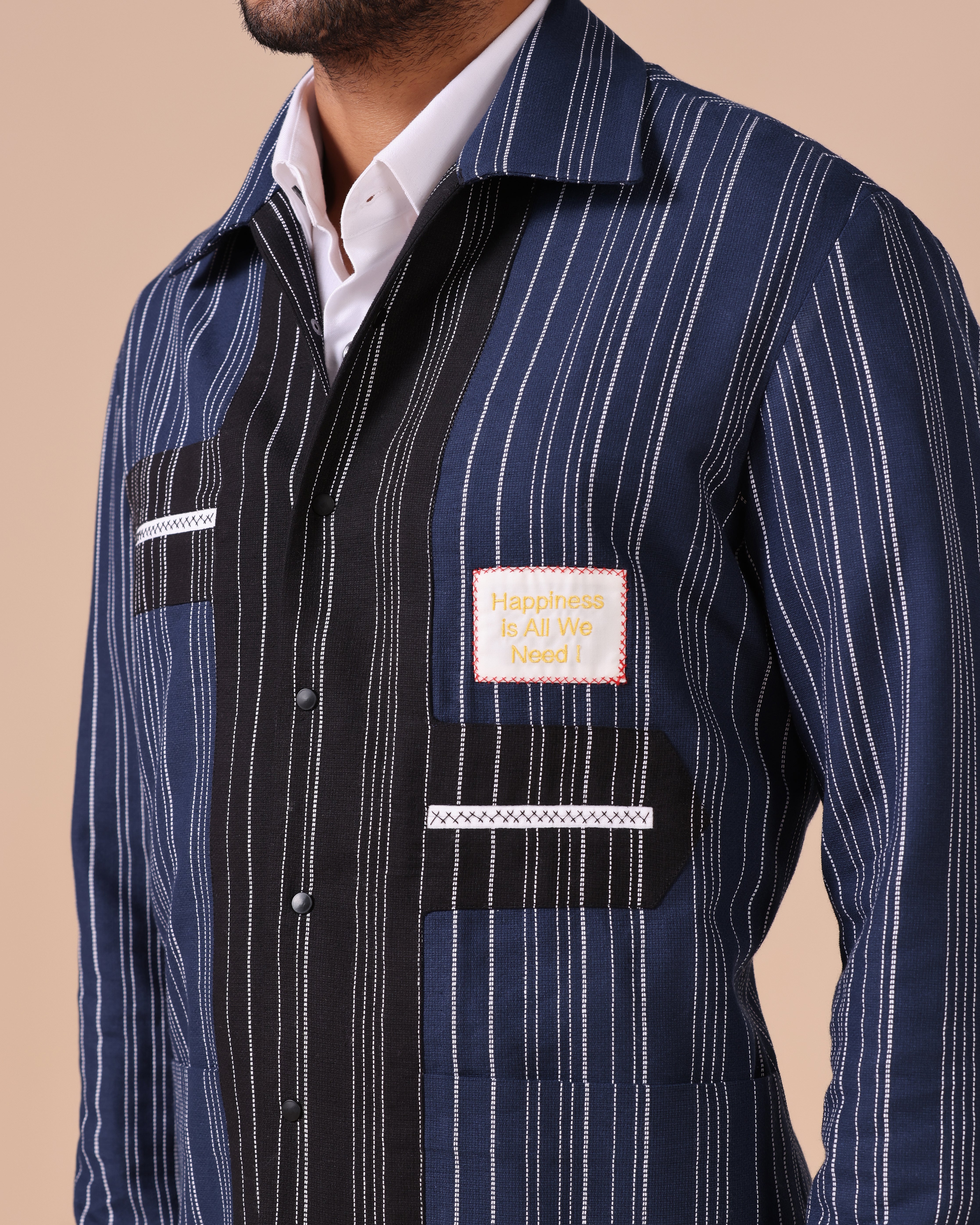 Handloom Cotton Linen Shacket with Inside-Out Detailing
