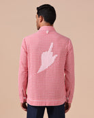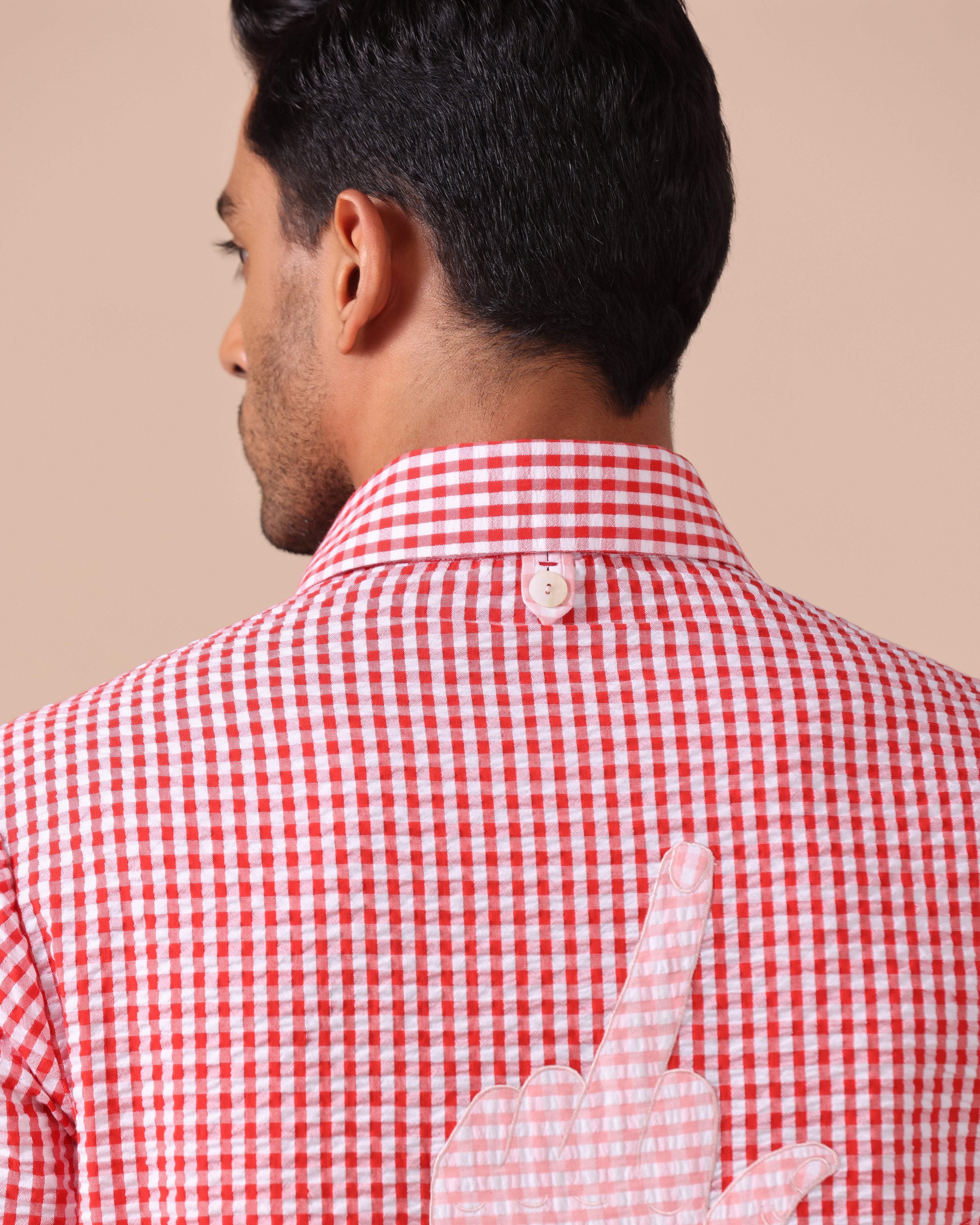 Seersucker Check Shacket with Hand Gesture Patch