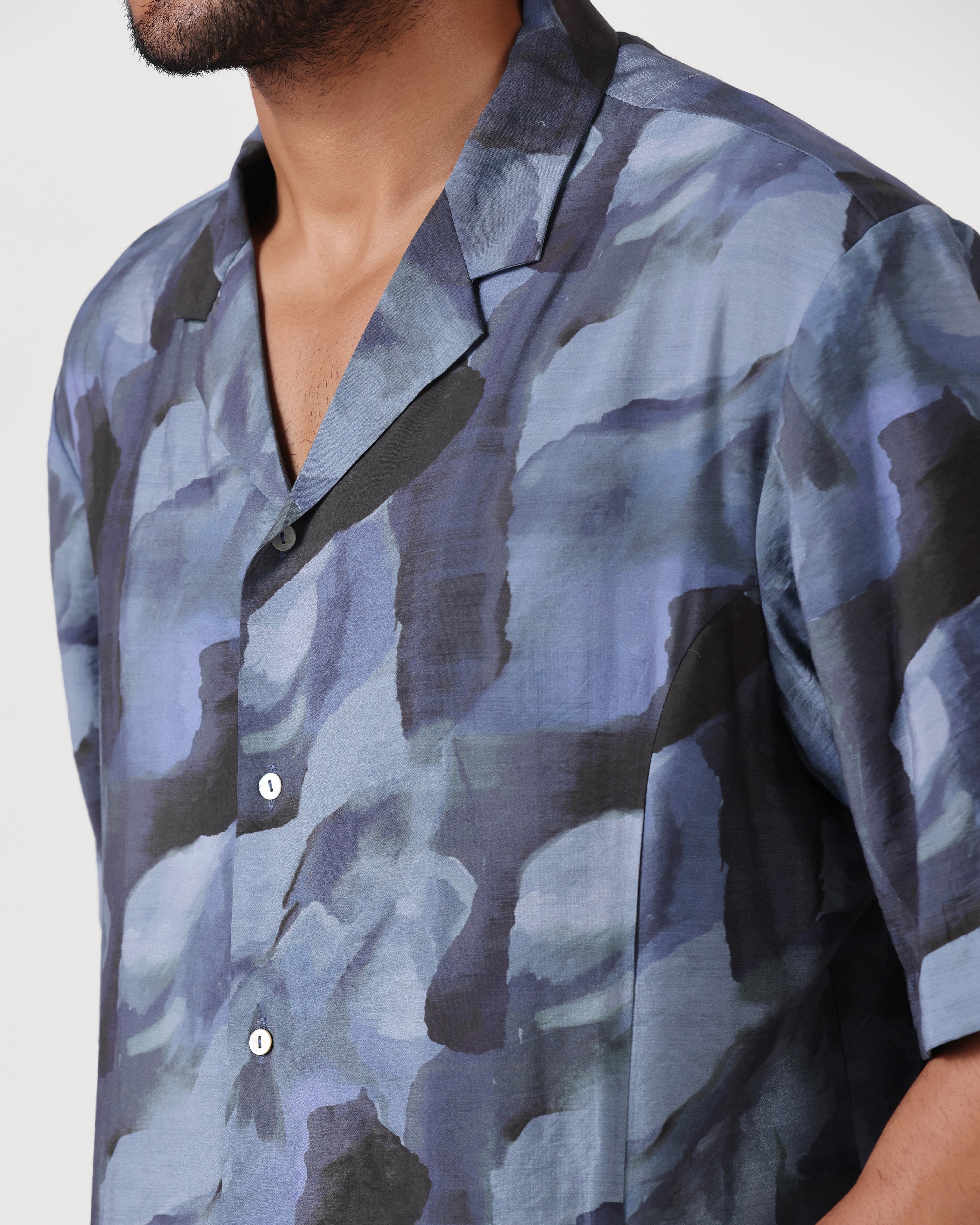 Abstract Digital Printed Cuban Collar Shirt