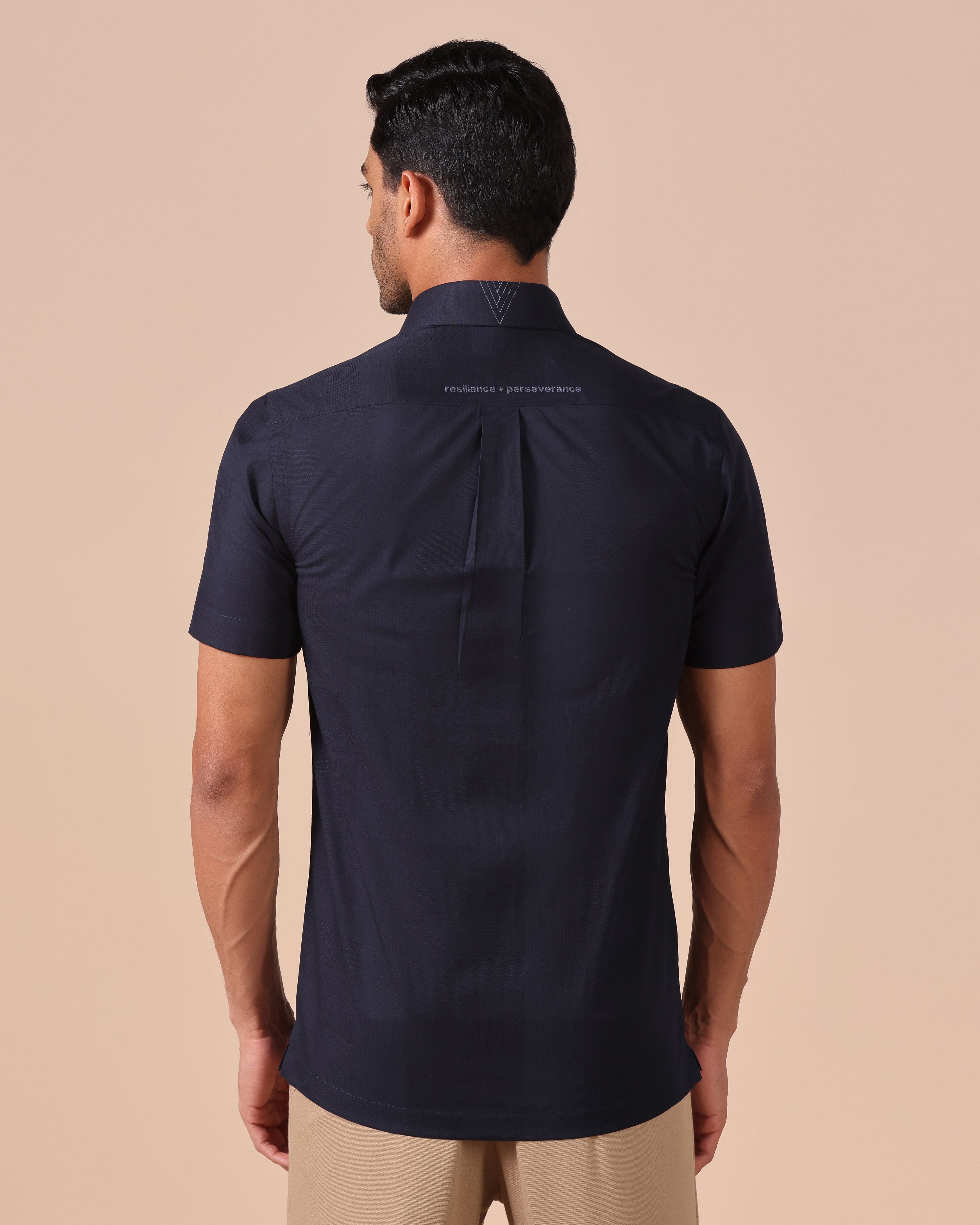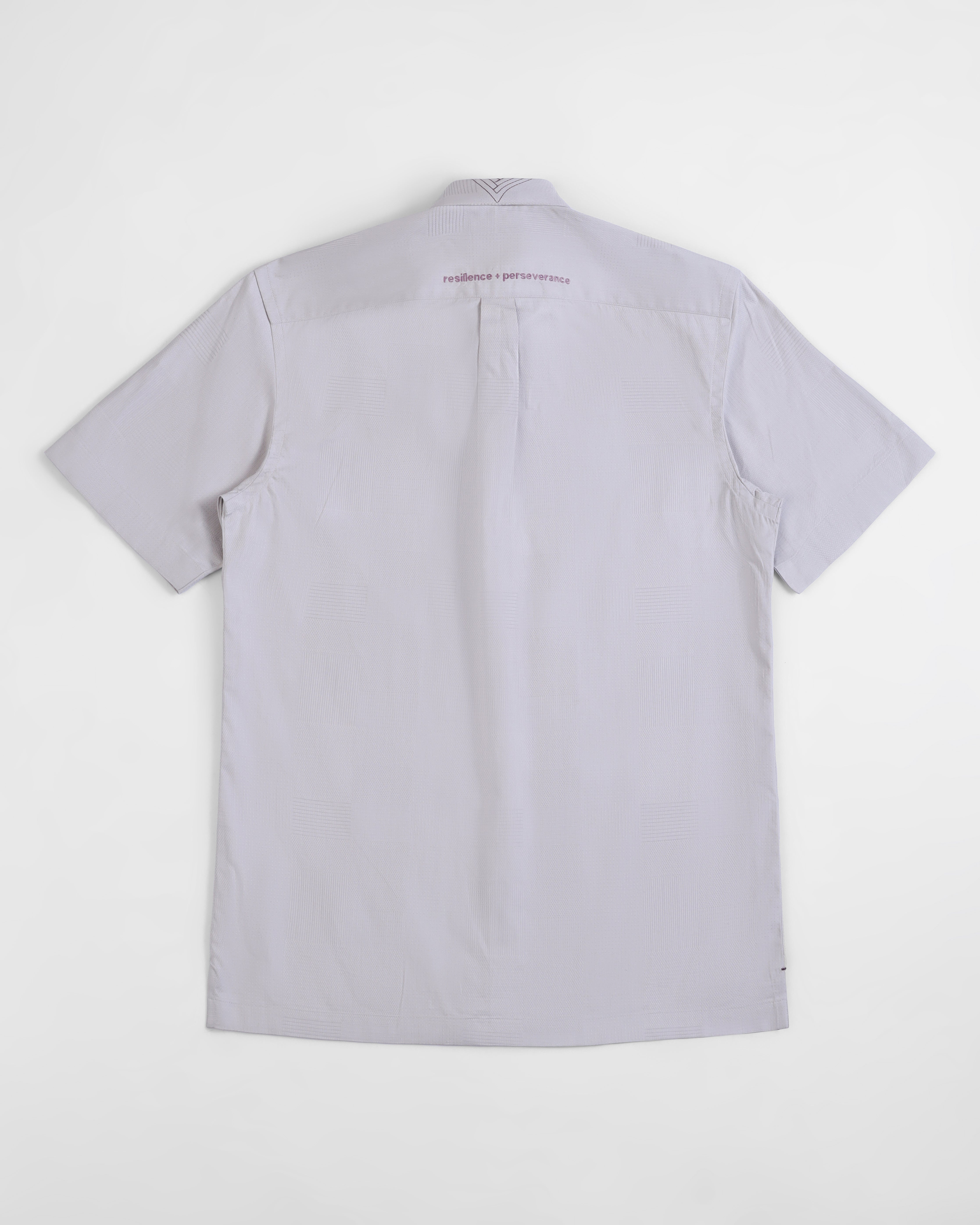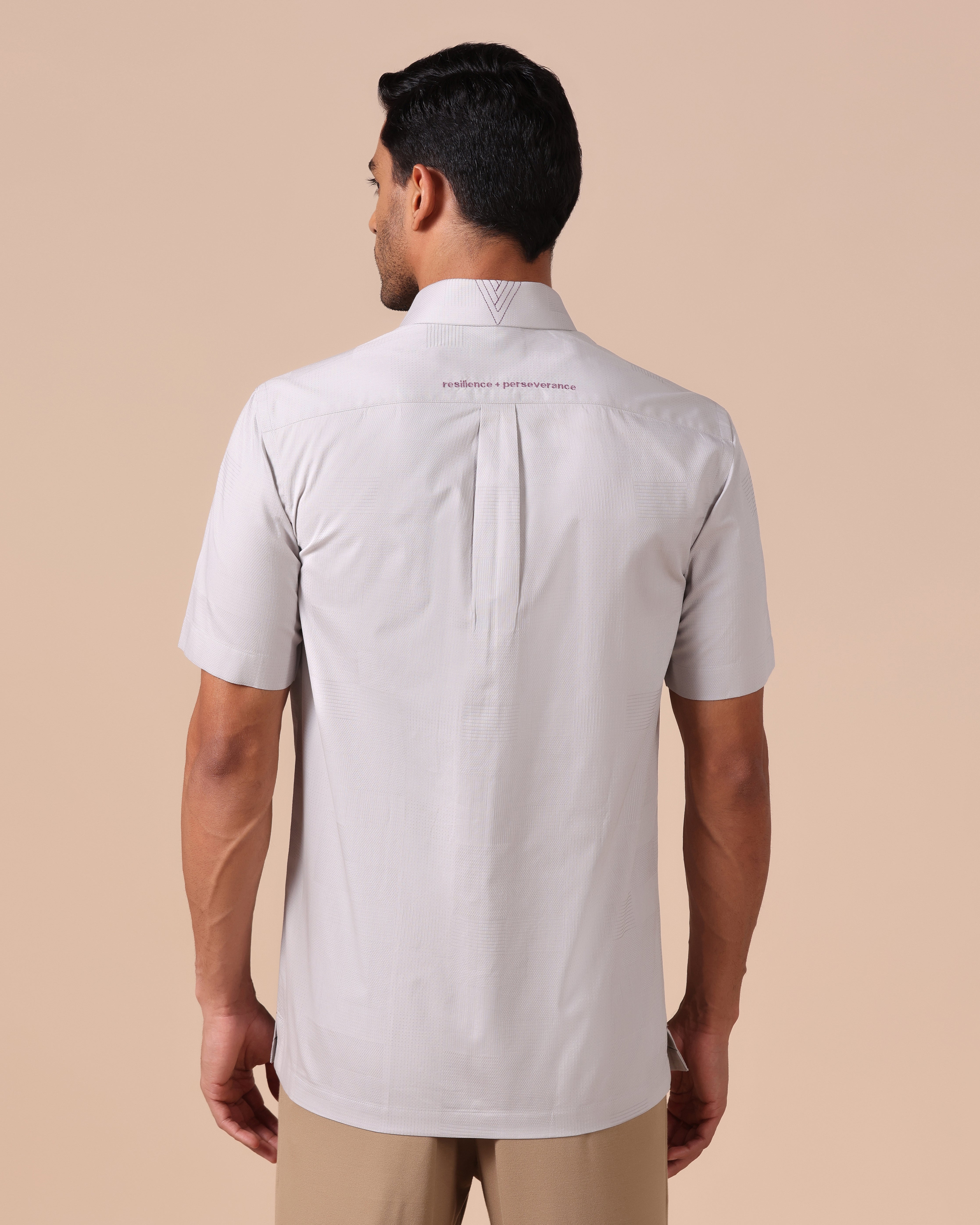 Giza Cotton Half Sleeve Shirt with message "resilience + perseverance" Embroidery on back