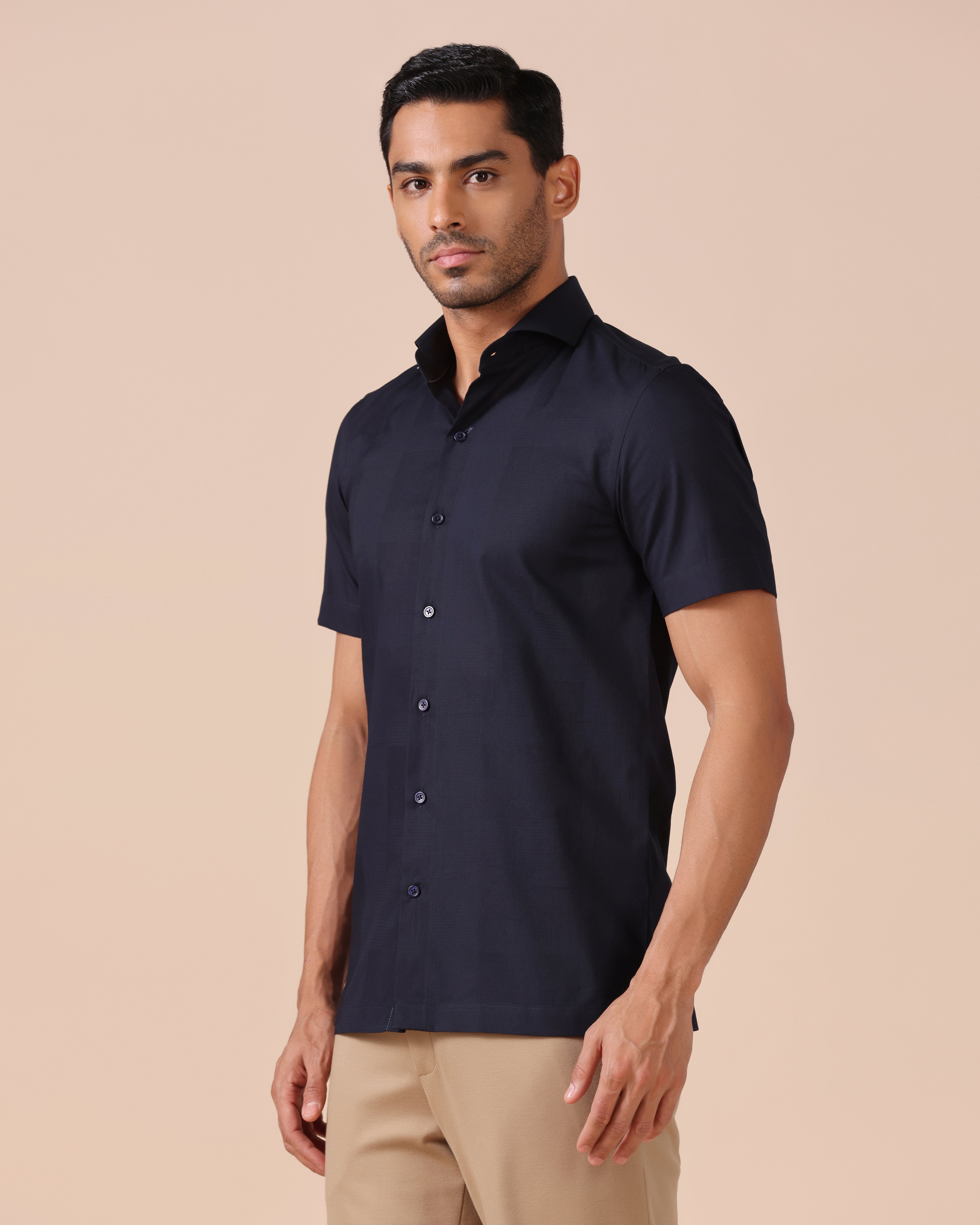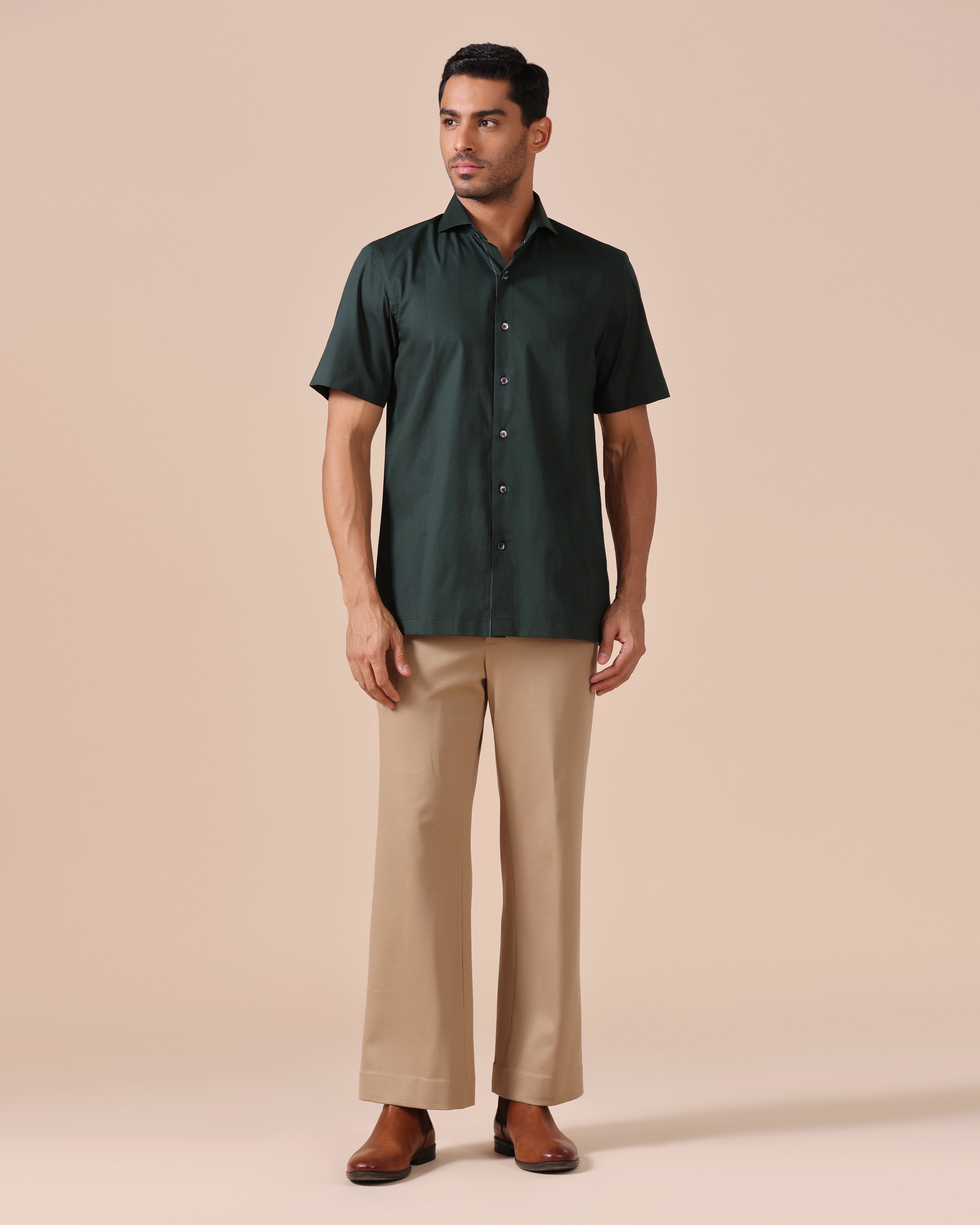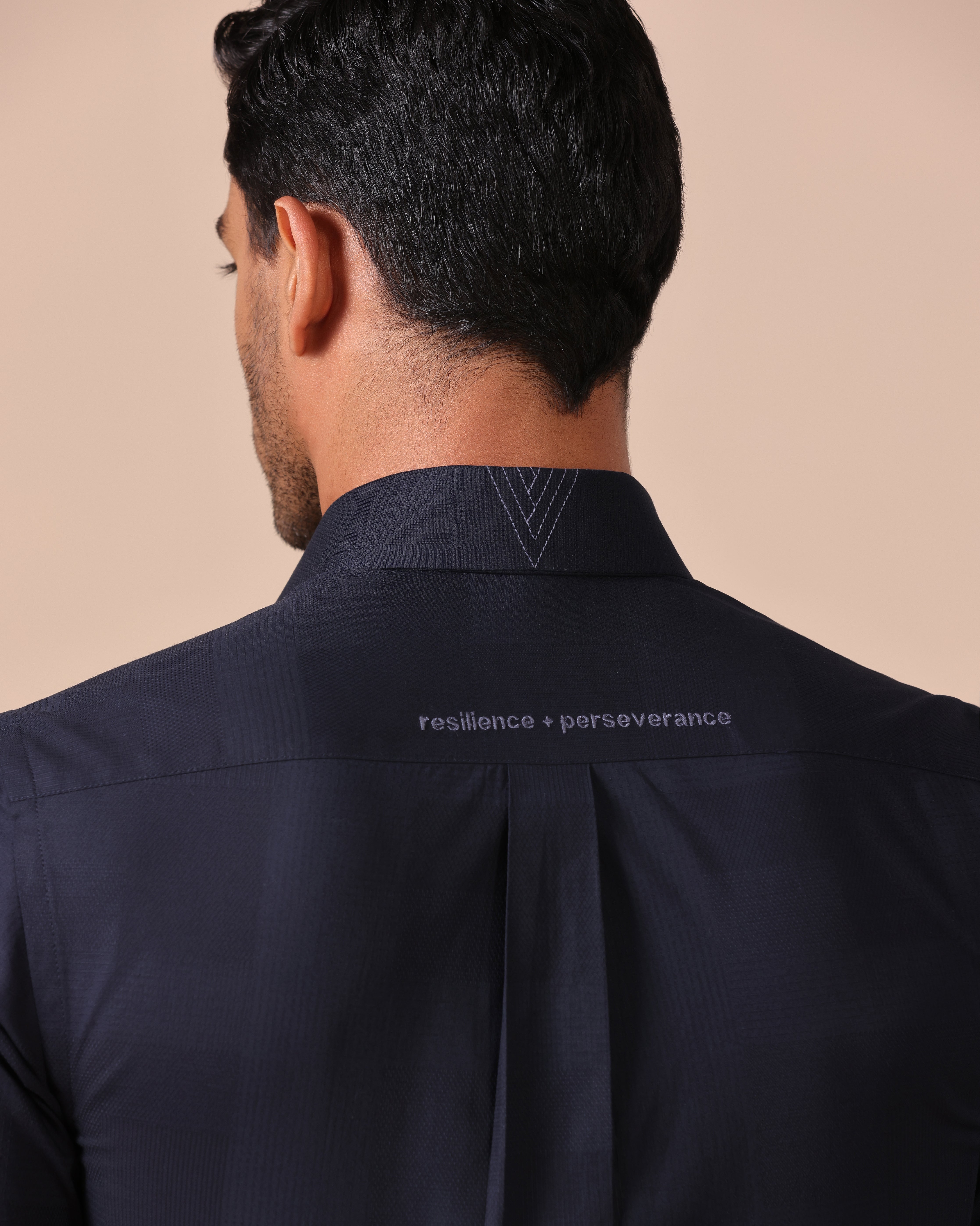 Giza Cotton Half Sleeve Shirt with message "resilience + perseverance" Embroidery on back