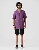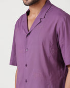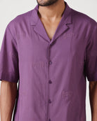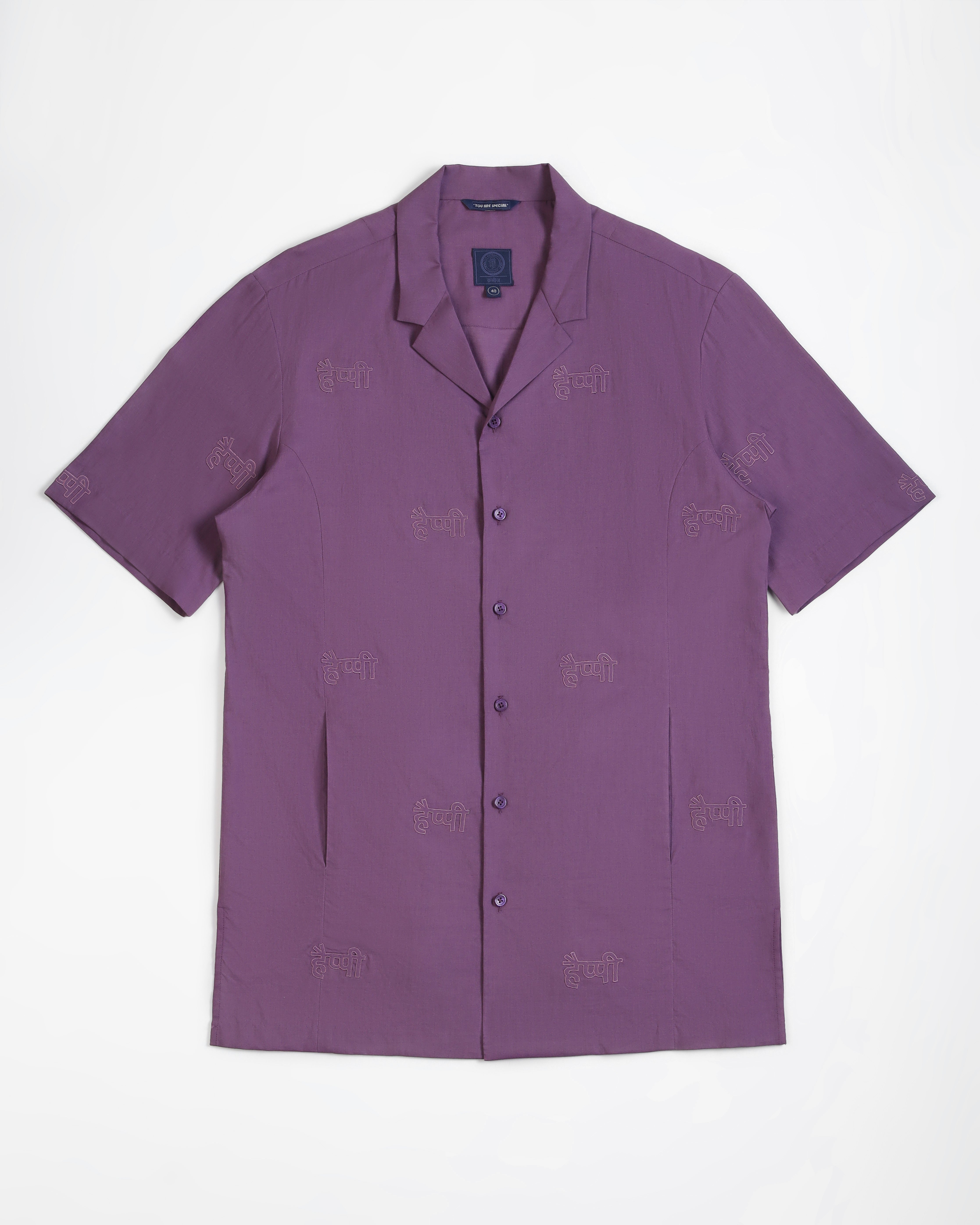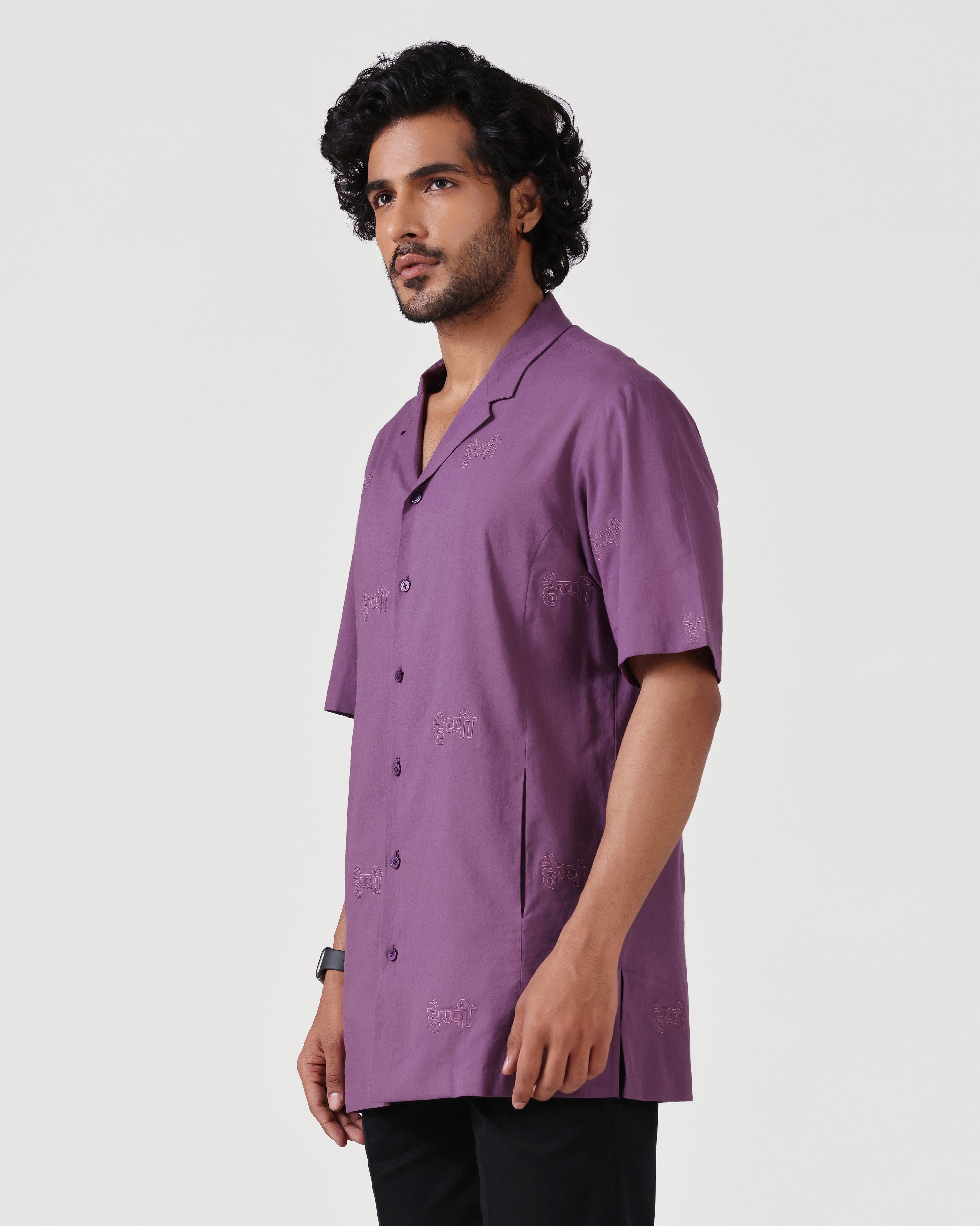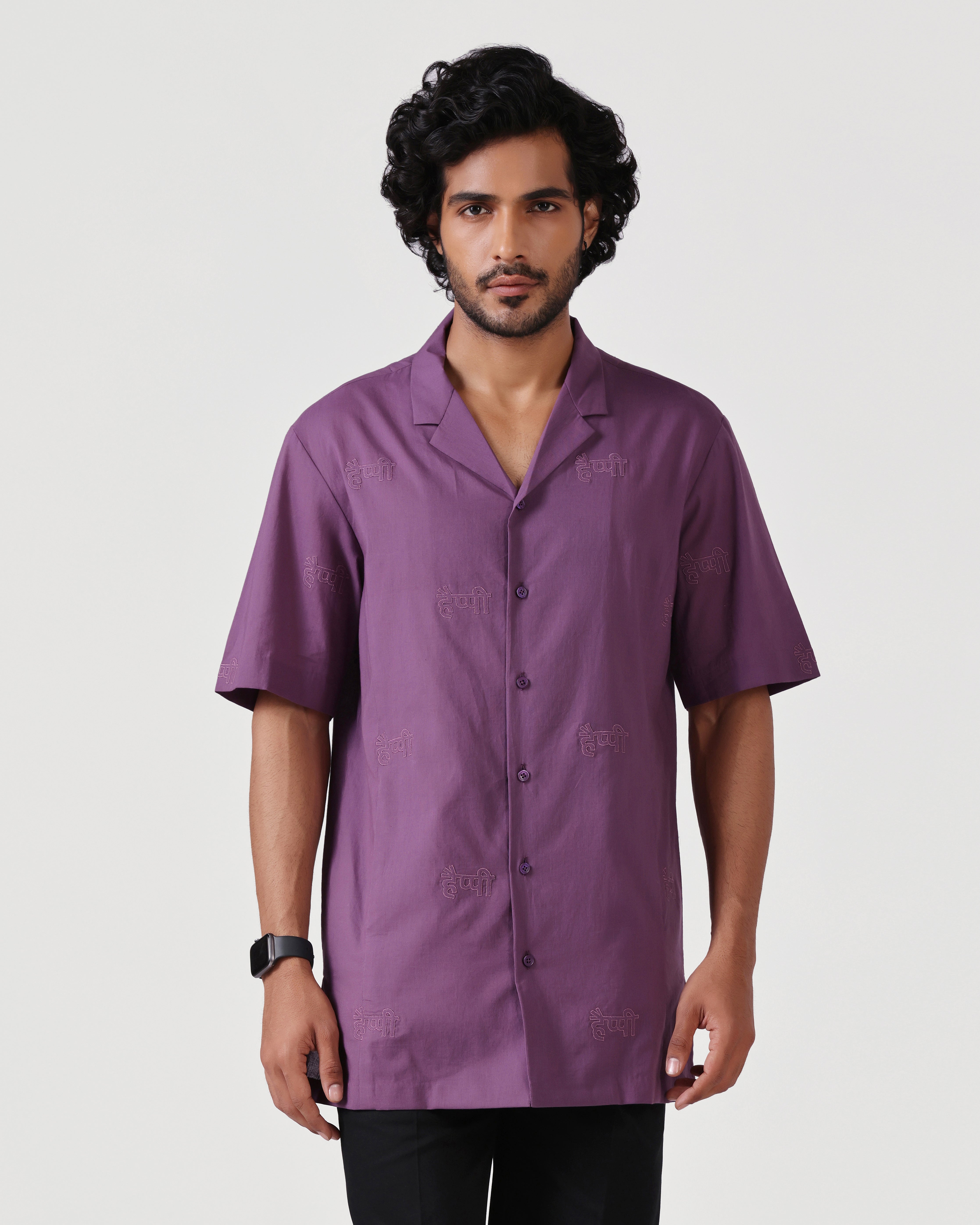 Rolled Up Collar Half Sleeve Shirt with Devanagari Cutwork Embroidery Allover