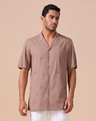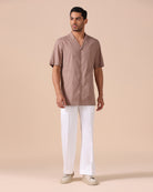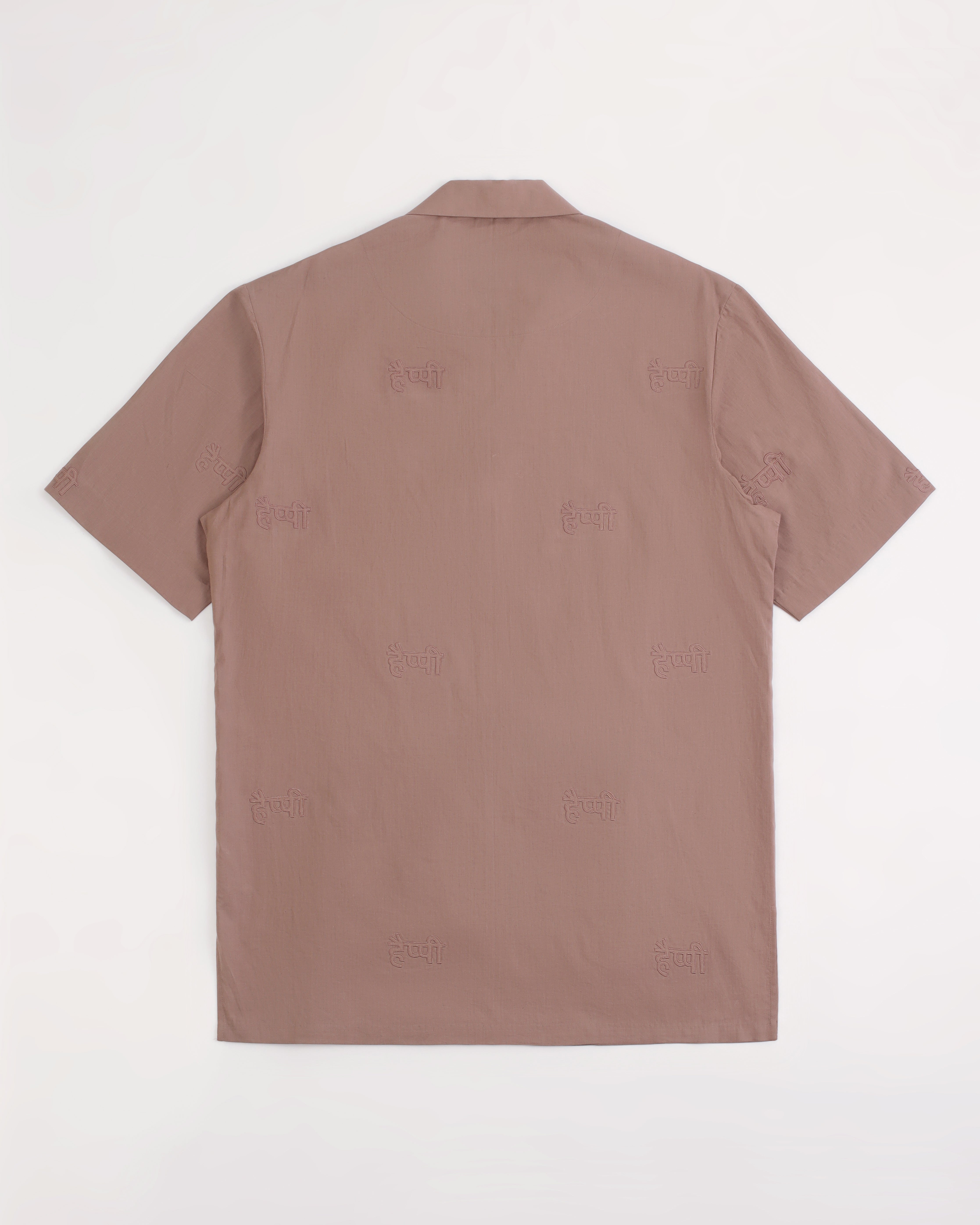 Rolled Up Collar Half Sleeve Shirt with Devanagari Cutwork Embroidery Allover