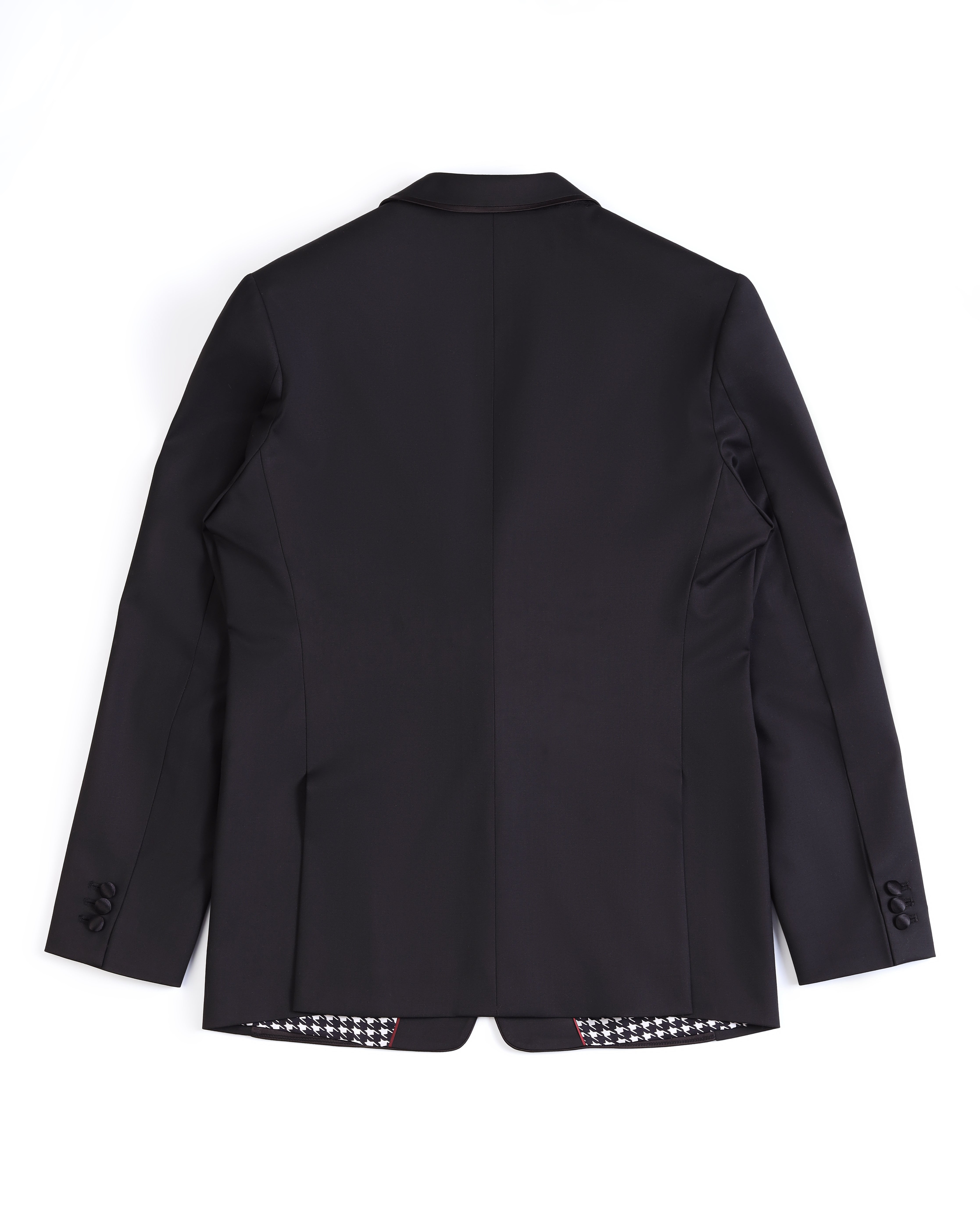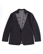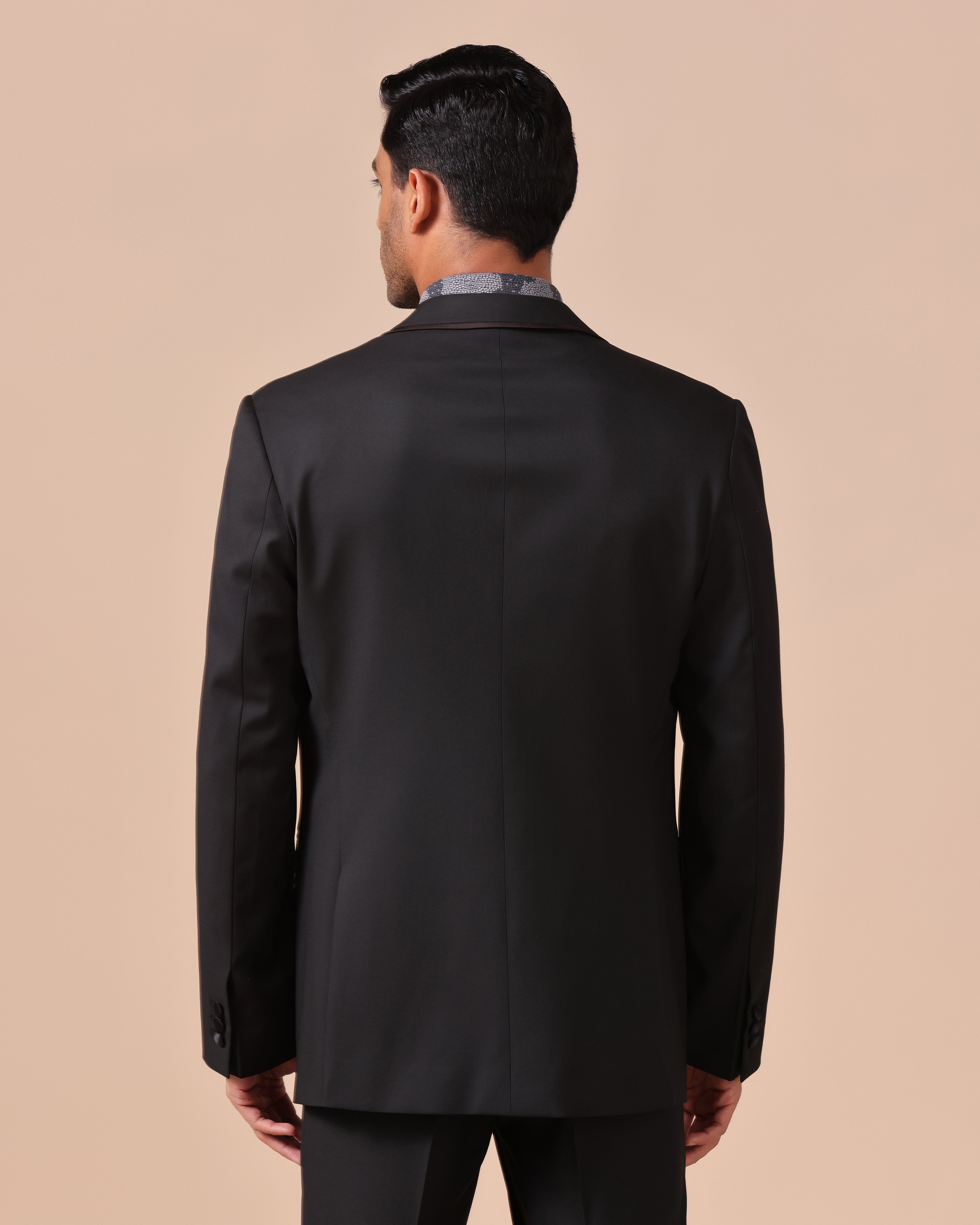 - Refined Detailing: Sharp peak lapels adorned with subtle grey textured embroidery