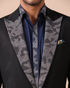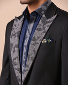Black Peak Lapel Suit with multi-color Textured Embroidery