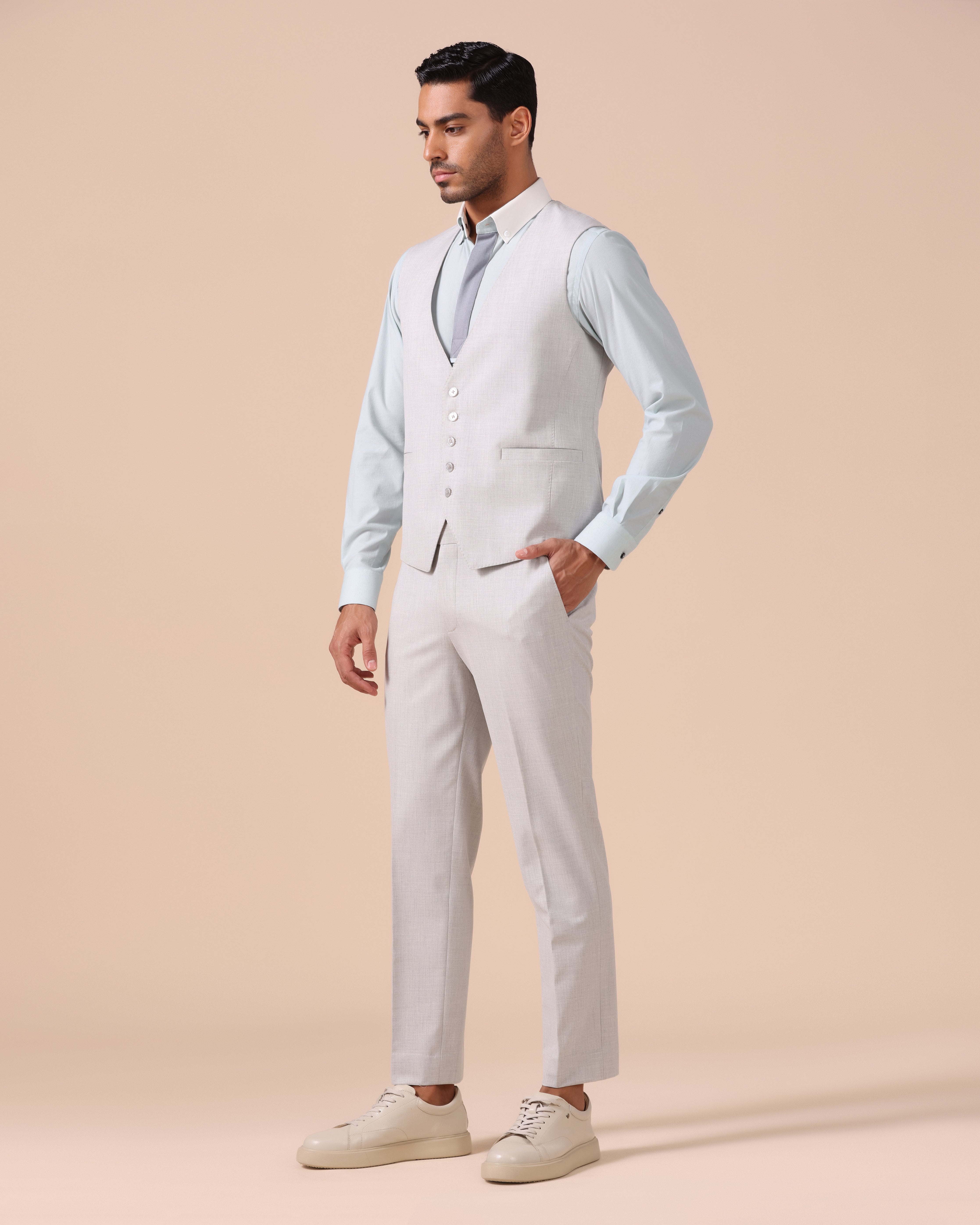 - Modern Silhouette: Includes a tailored single-breasted jacket, matching vest, and slim-fit trousers