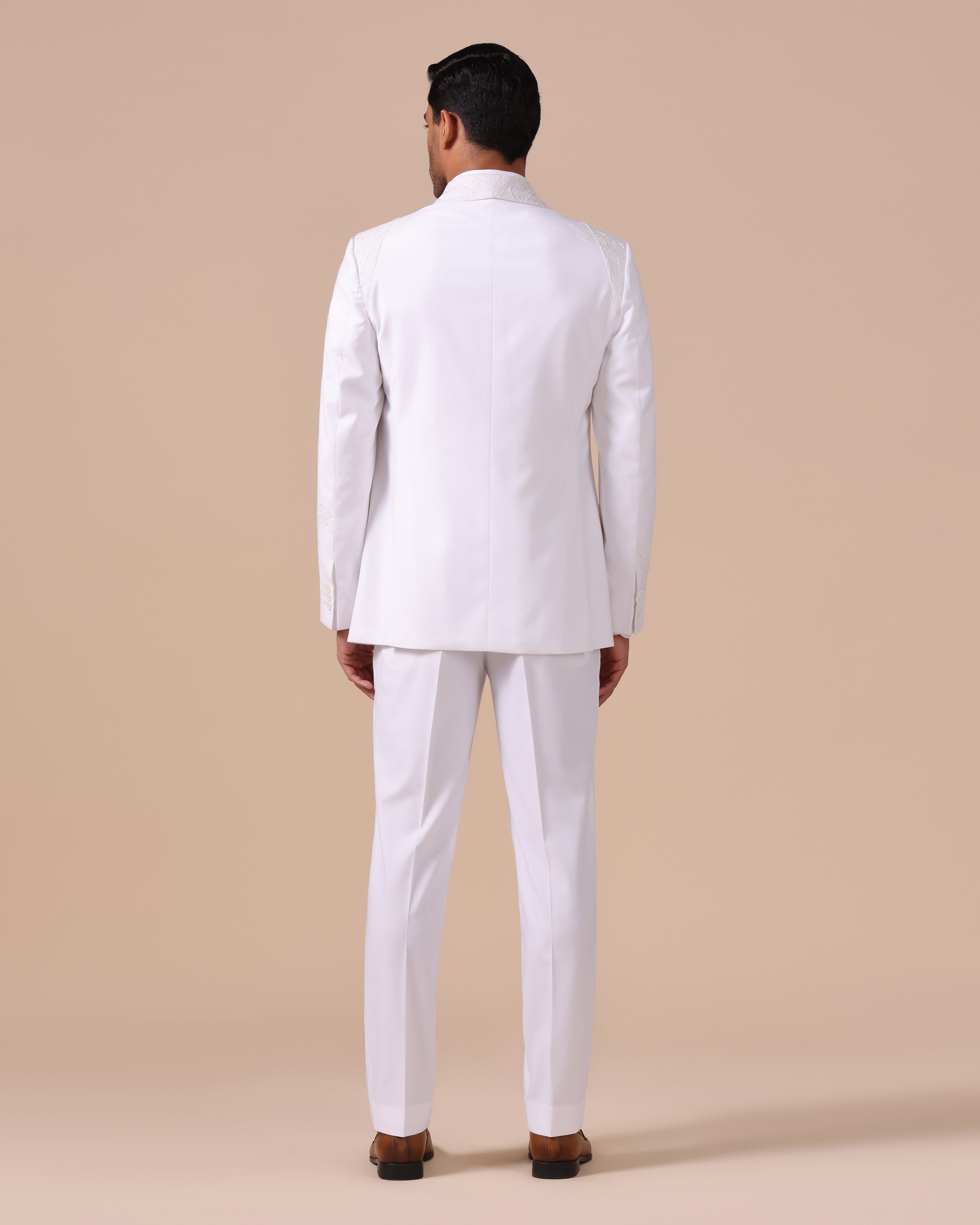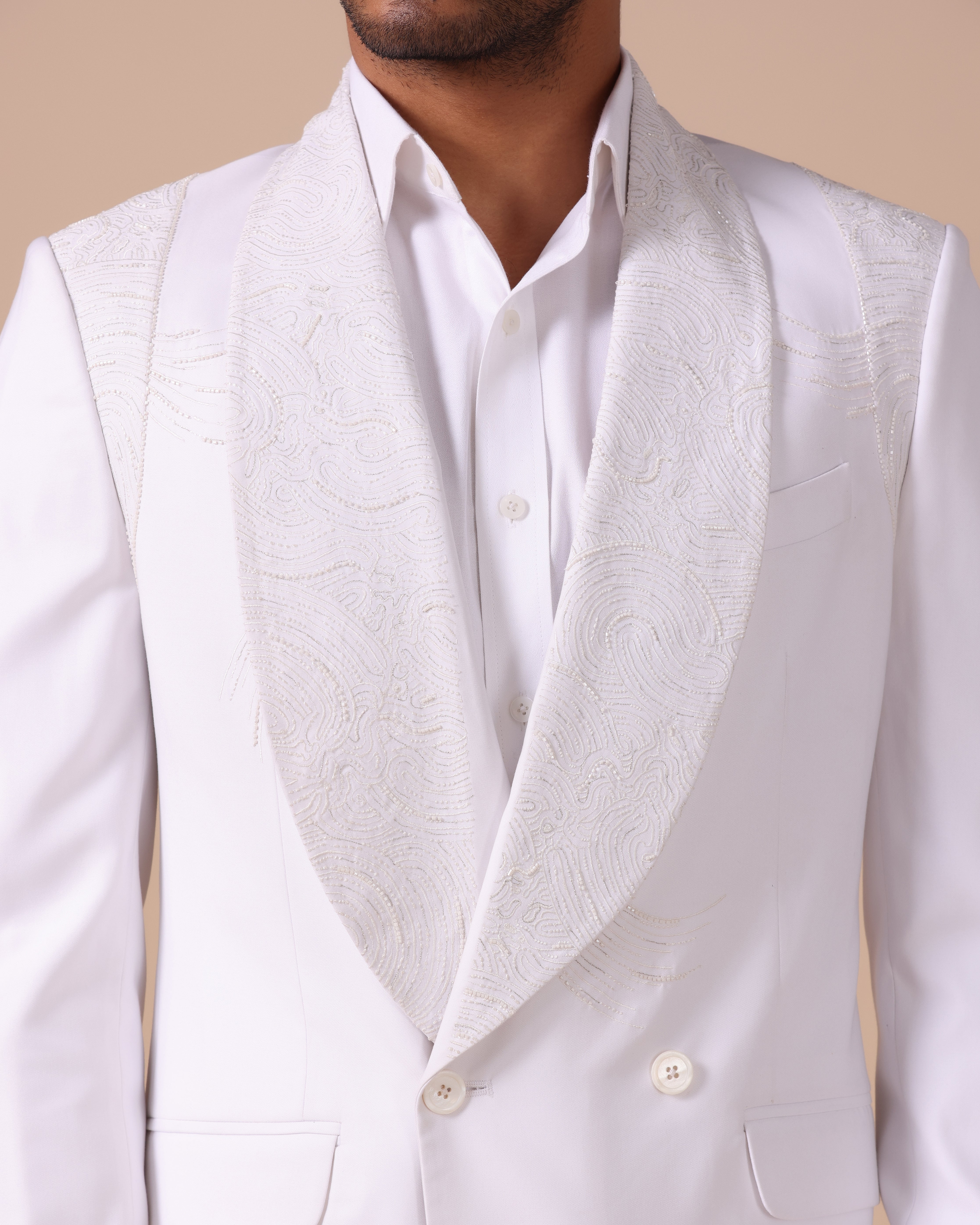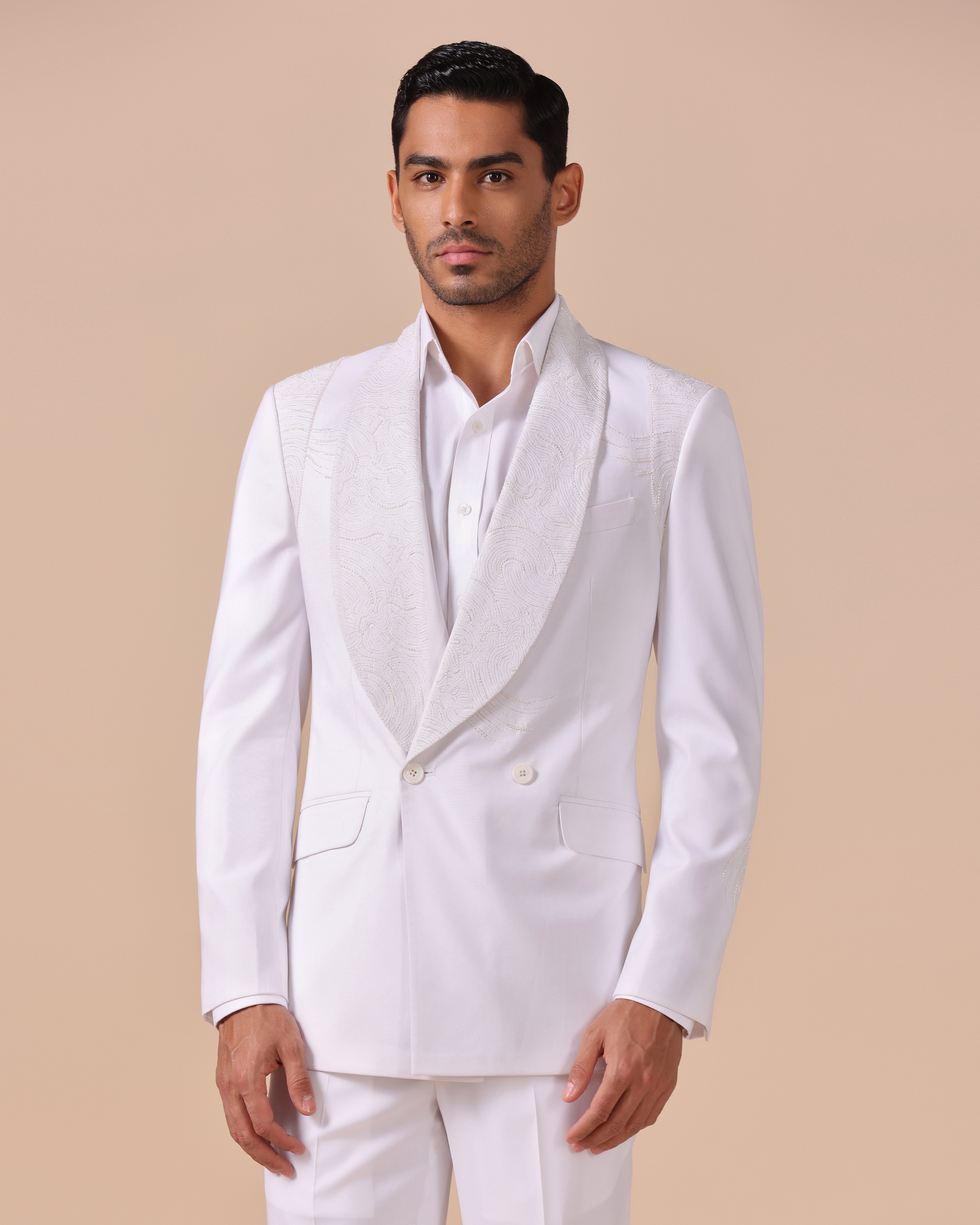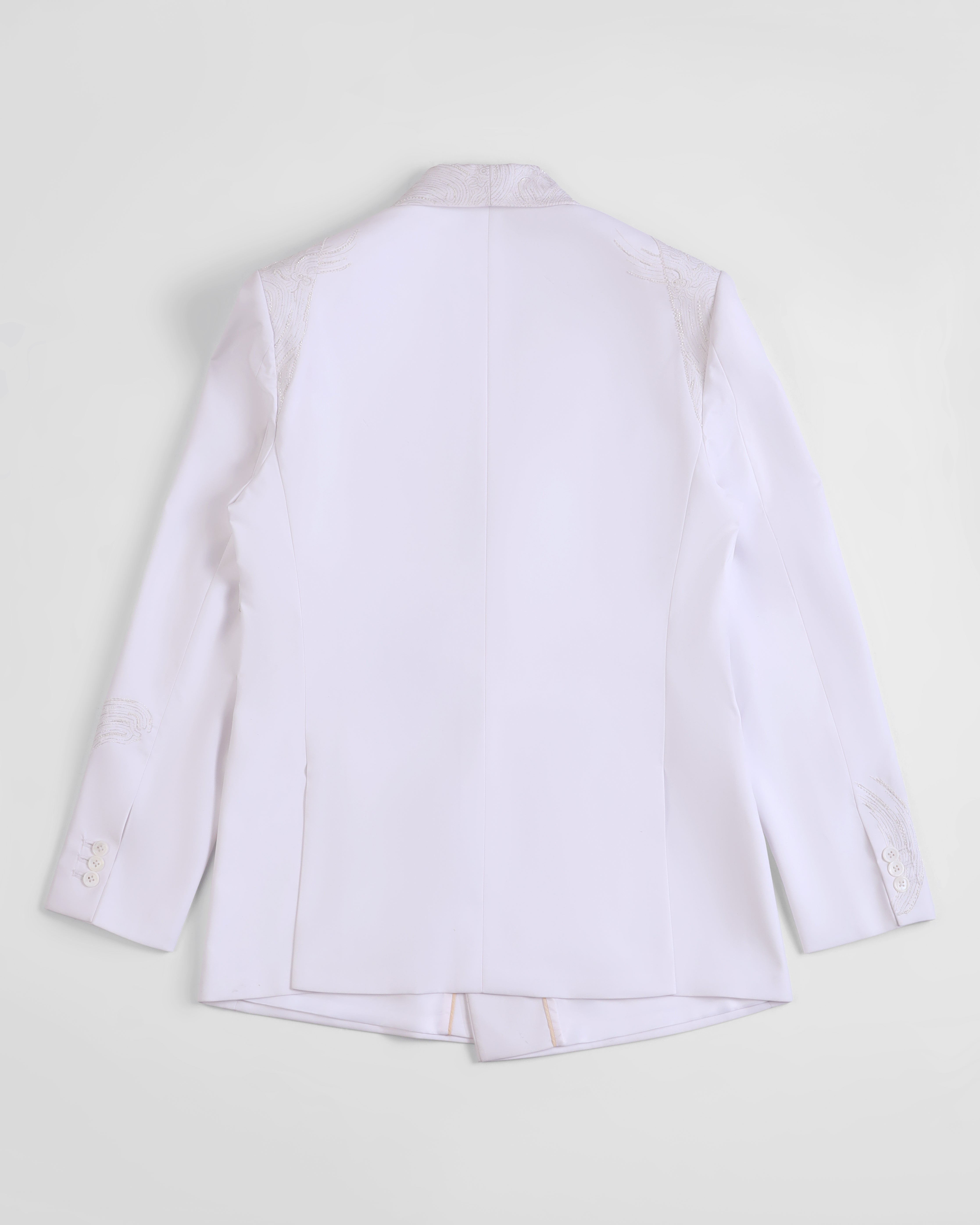 White Double-Breasted Embroidered Shawl Lapel Suit