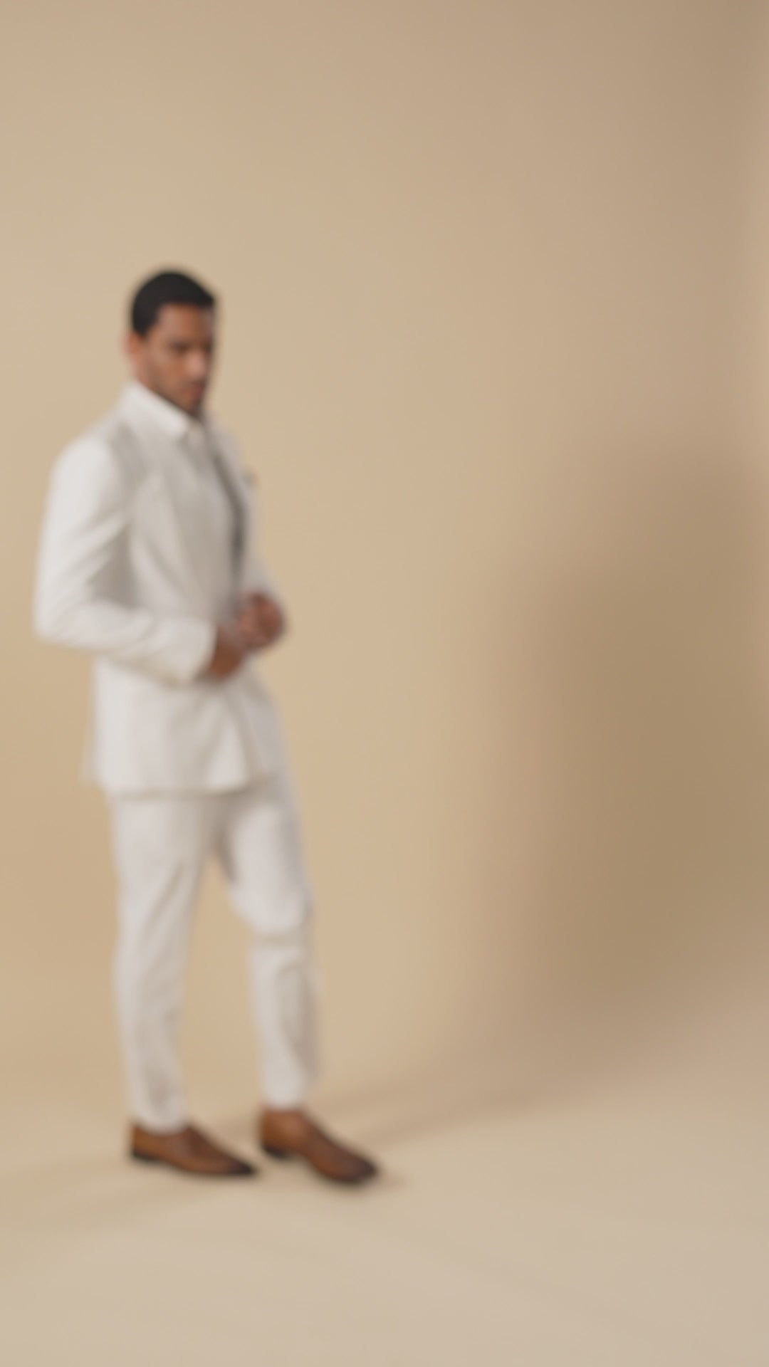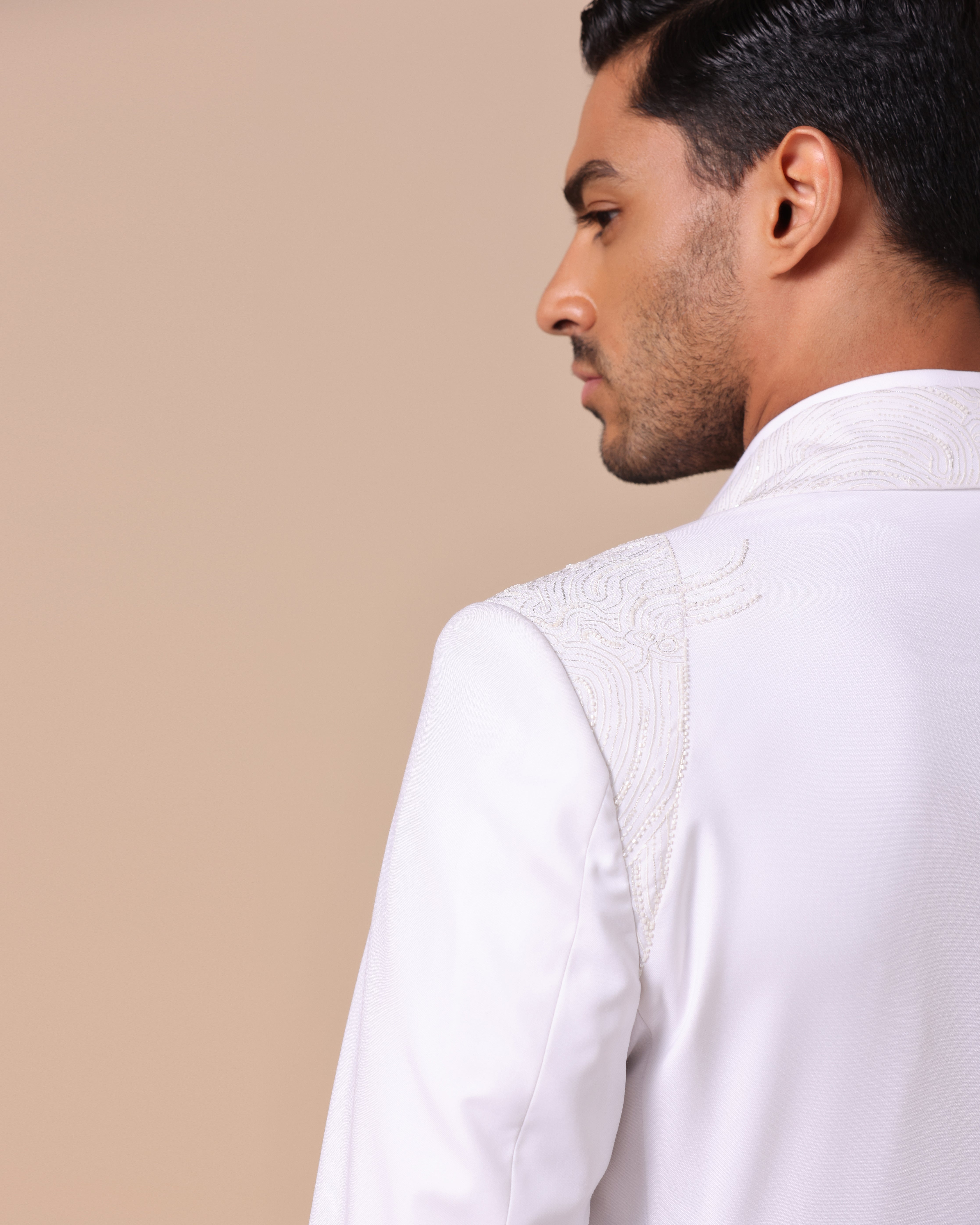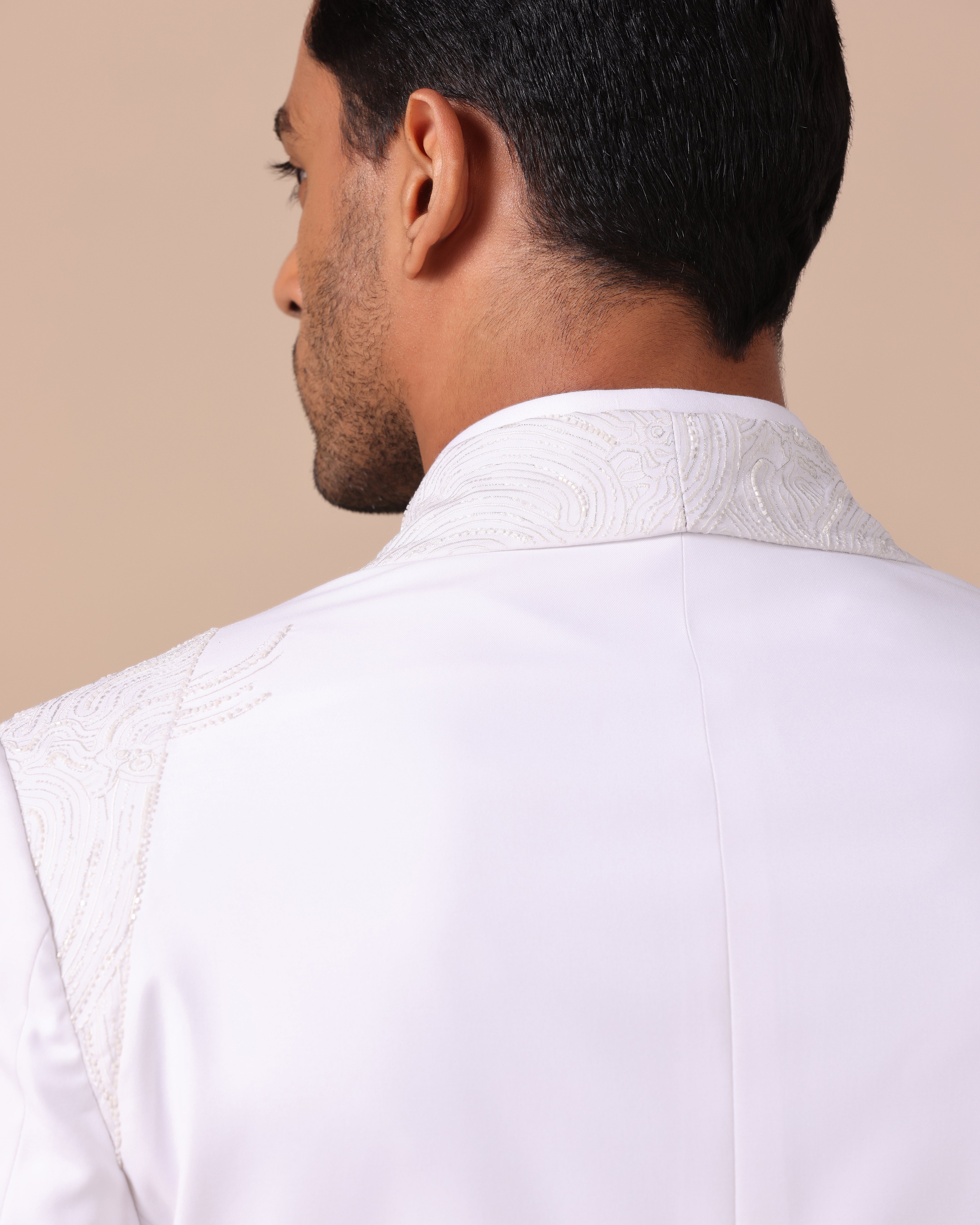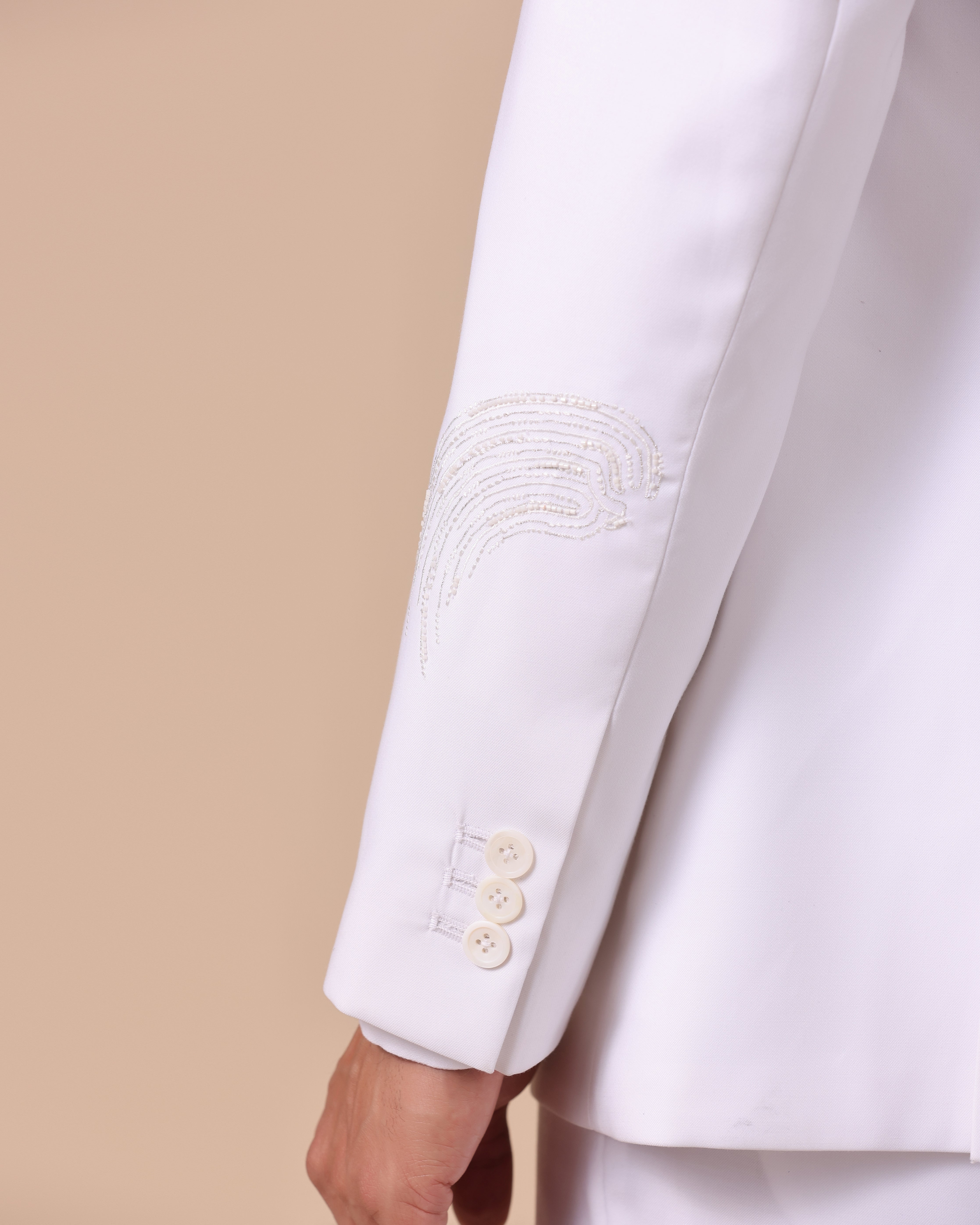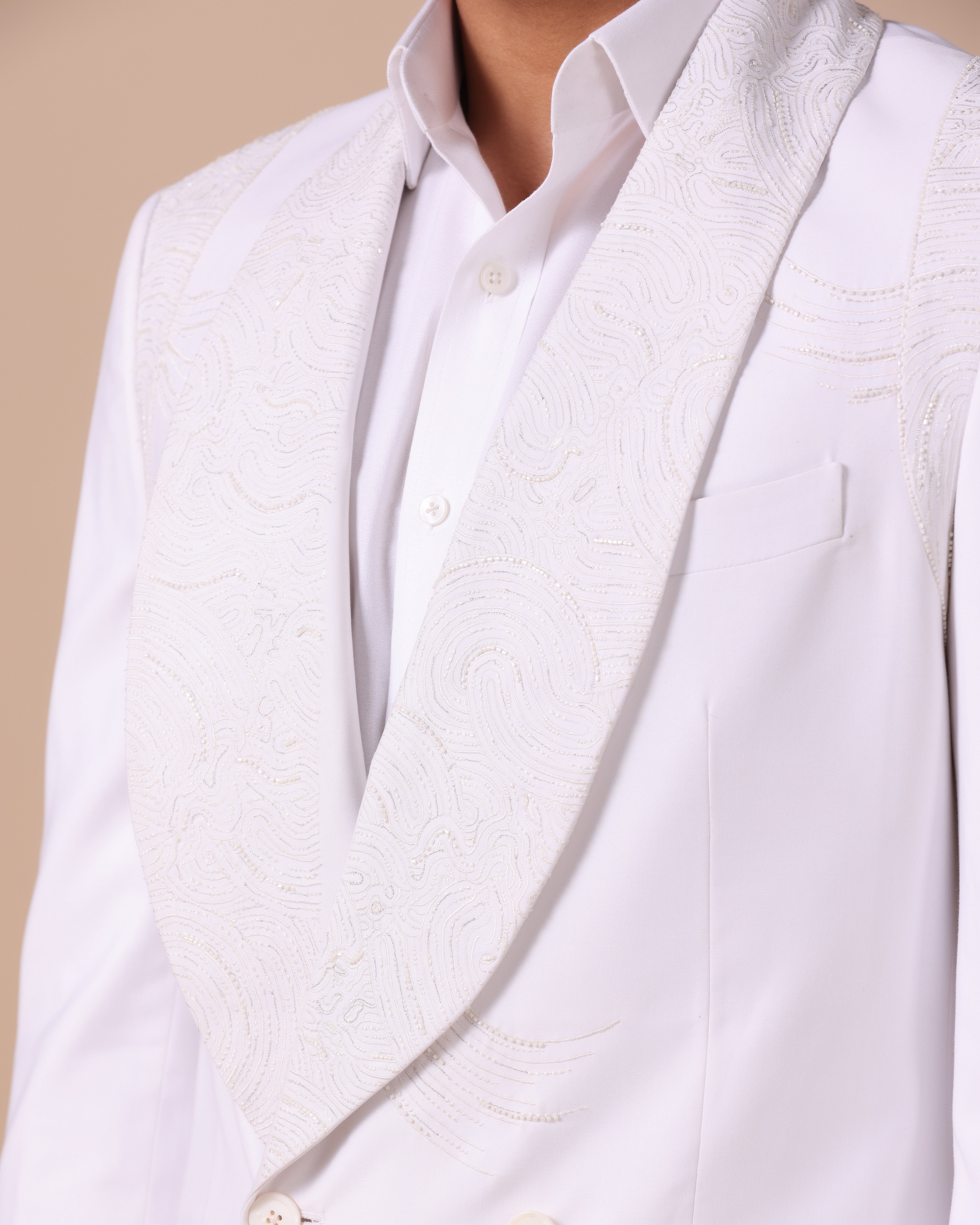 White Double-Breasted Embroidered Shawl Lapel Suit