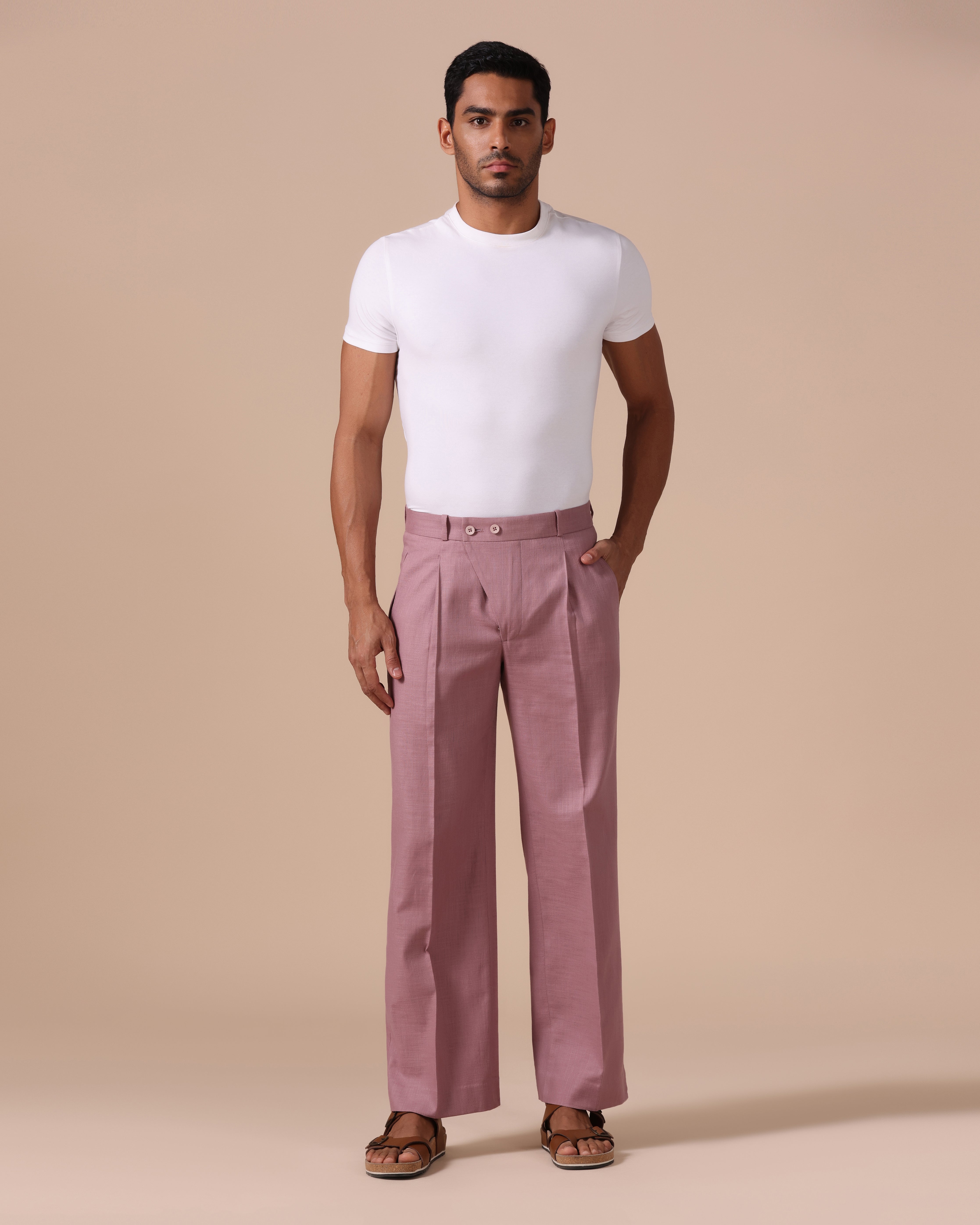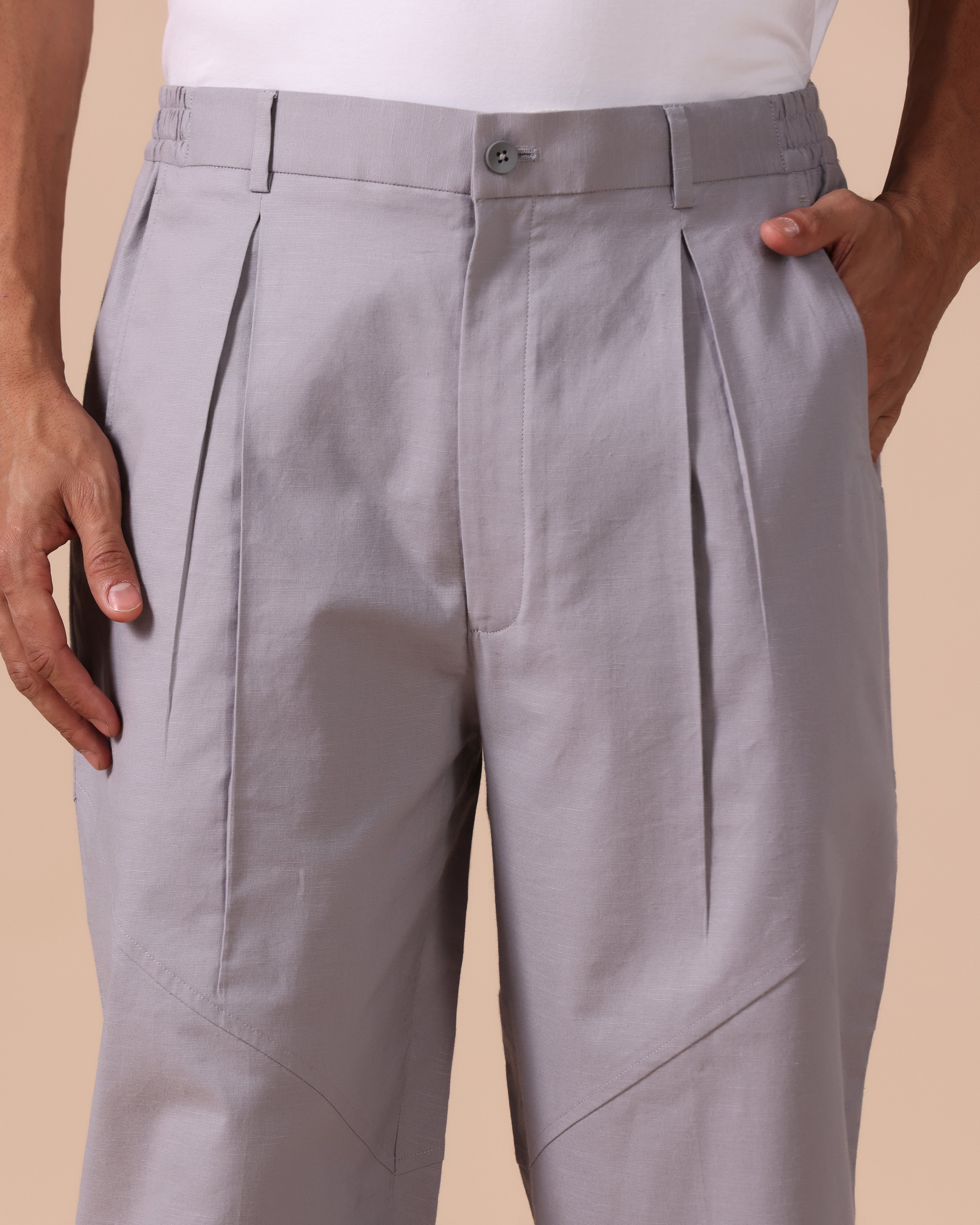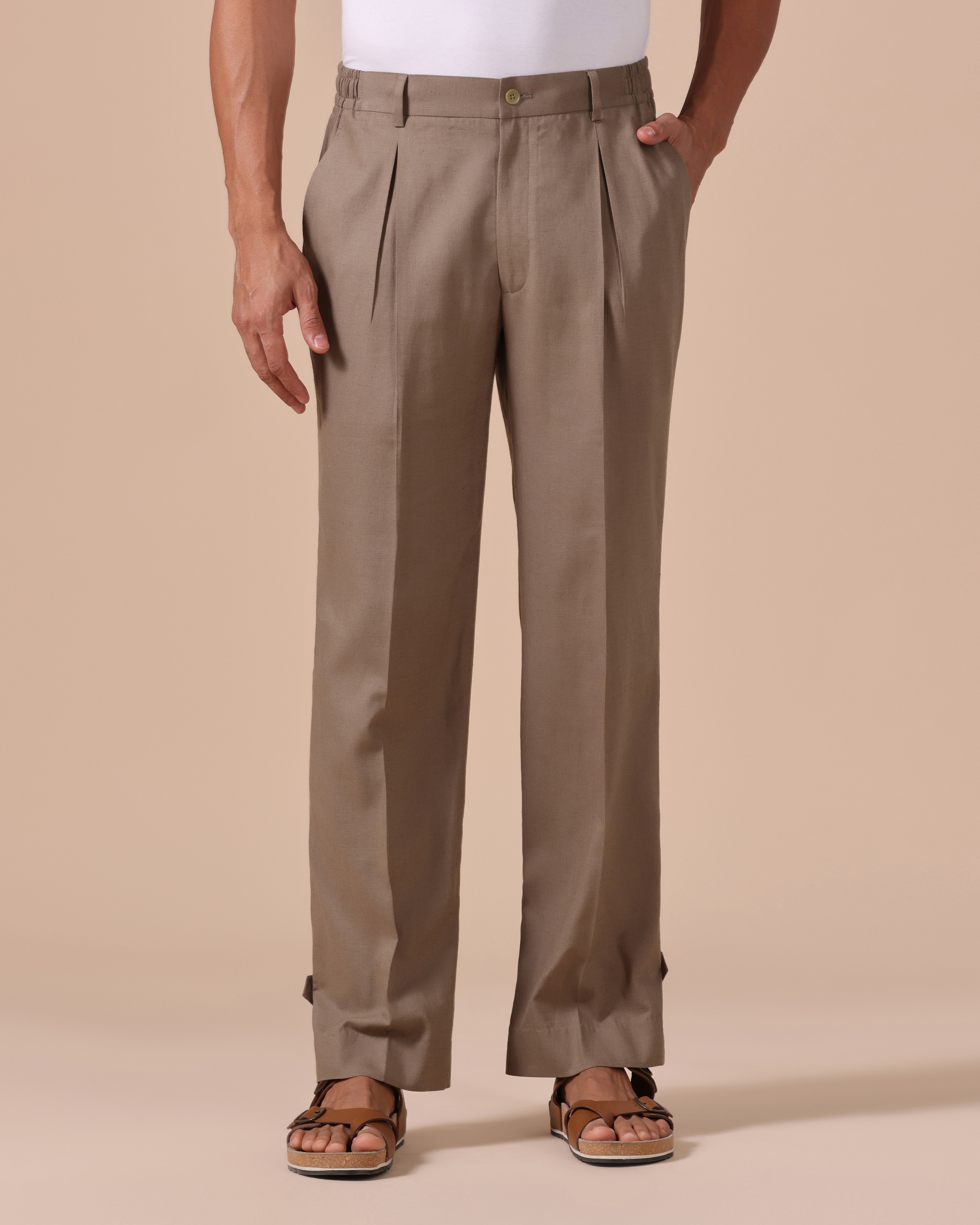 Cotton Viscose Wide-Leg Trousers with Buttoned Bottom Tab