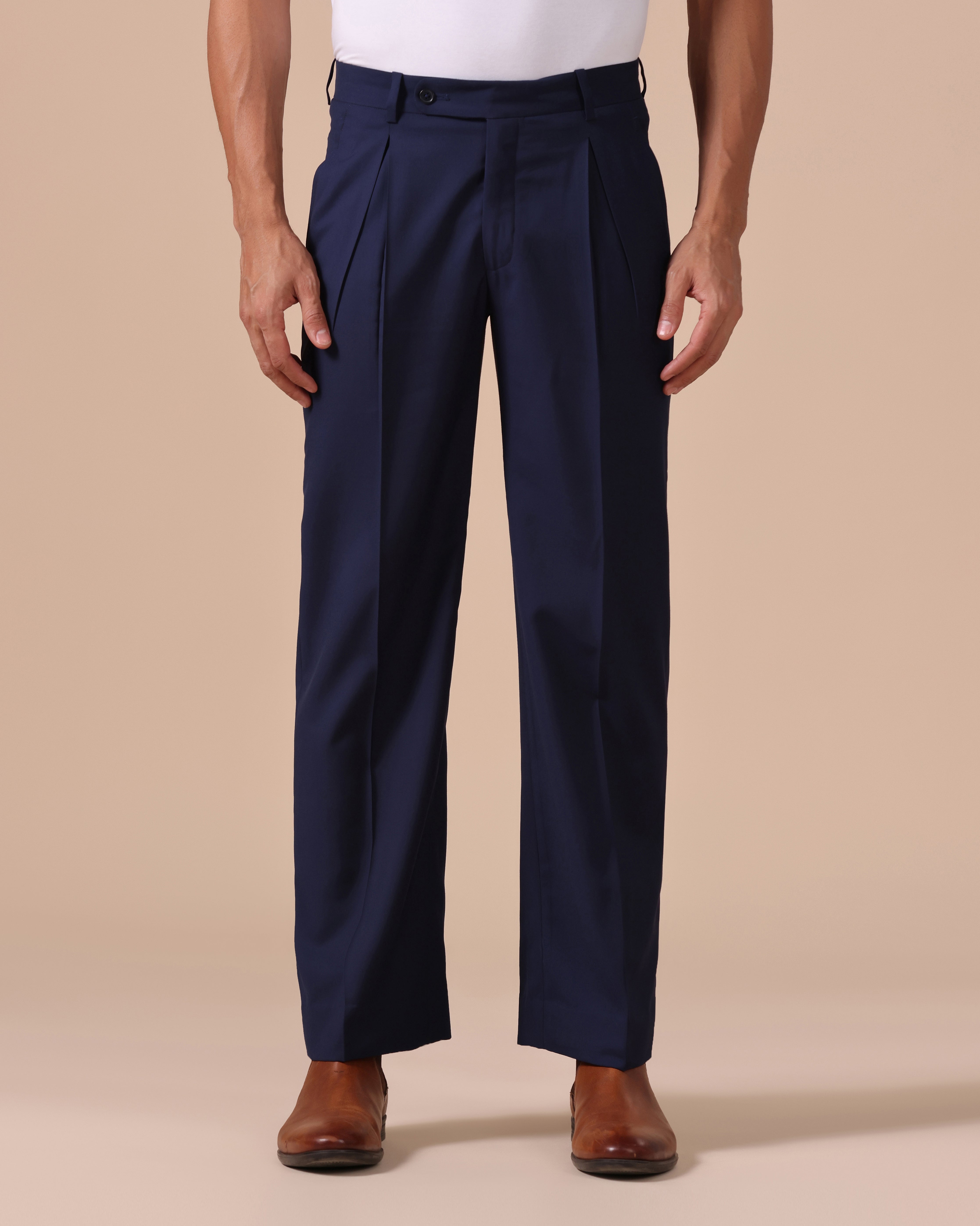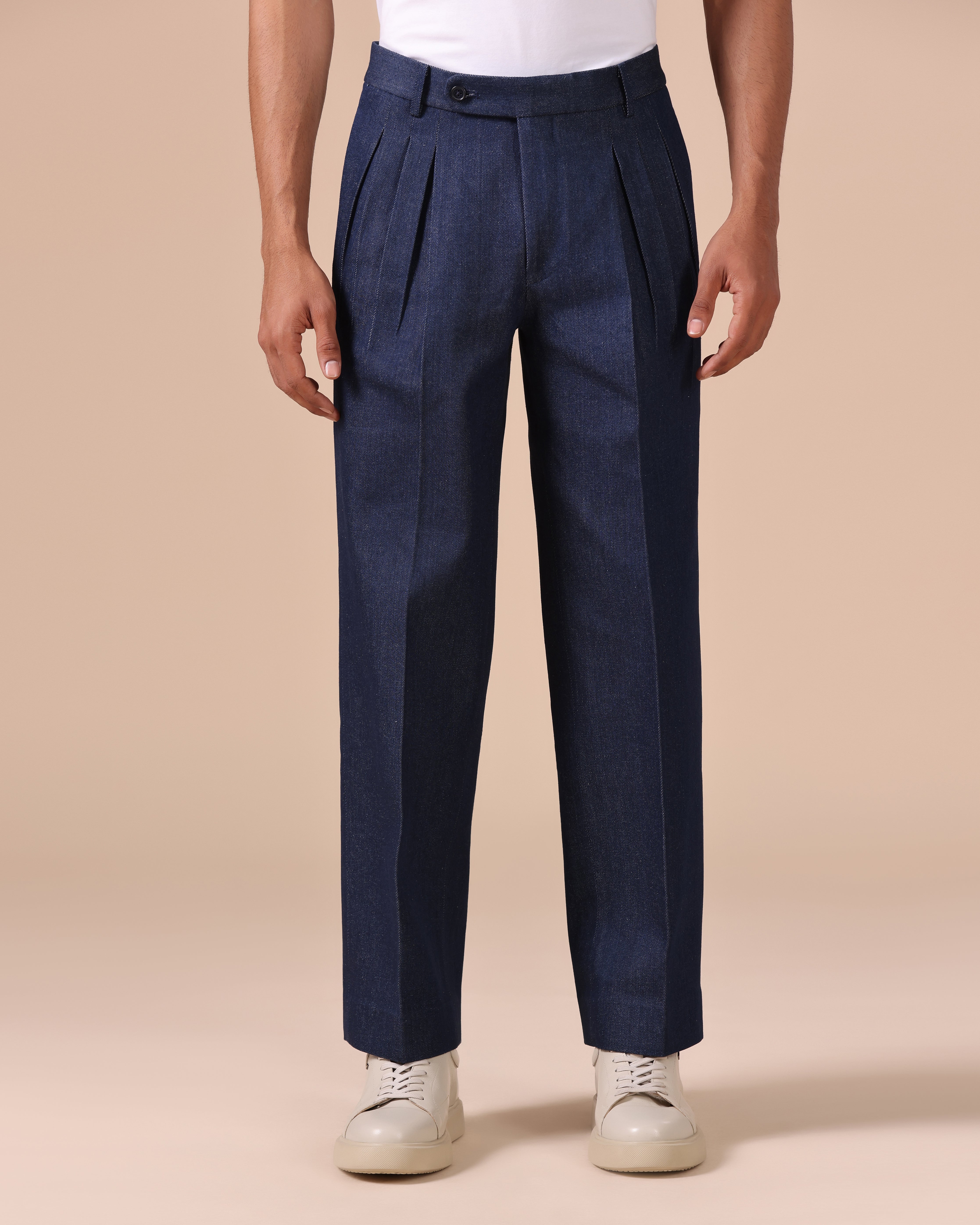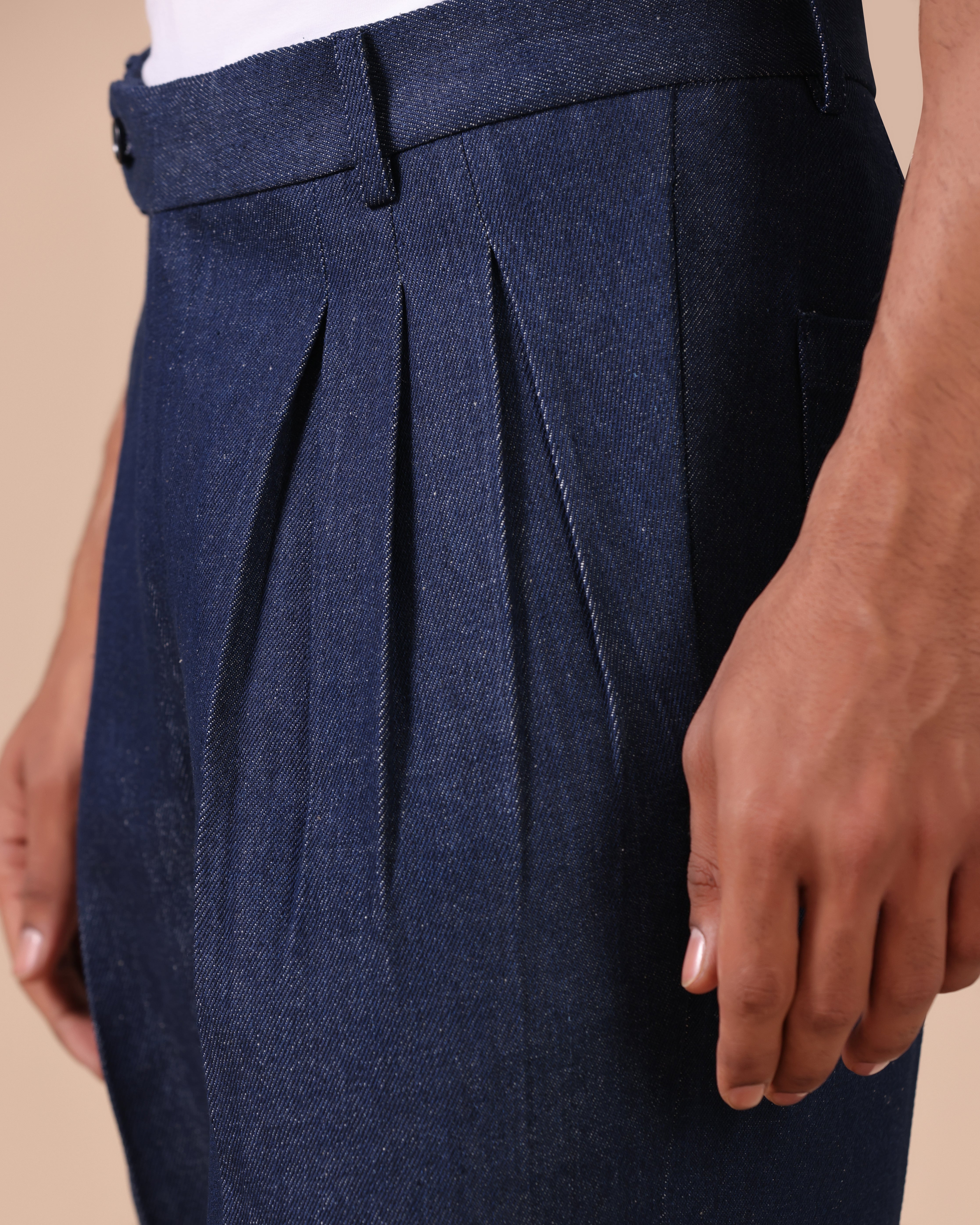 Cotton Viscose Wide-Leg Trousers with Buttoned Bottom Tab