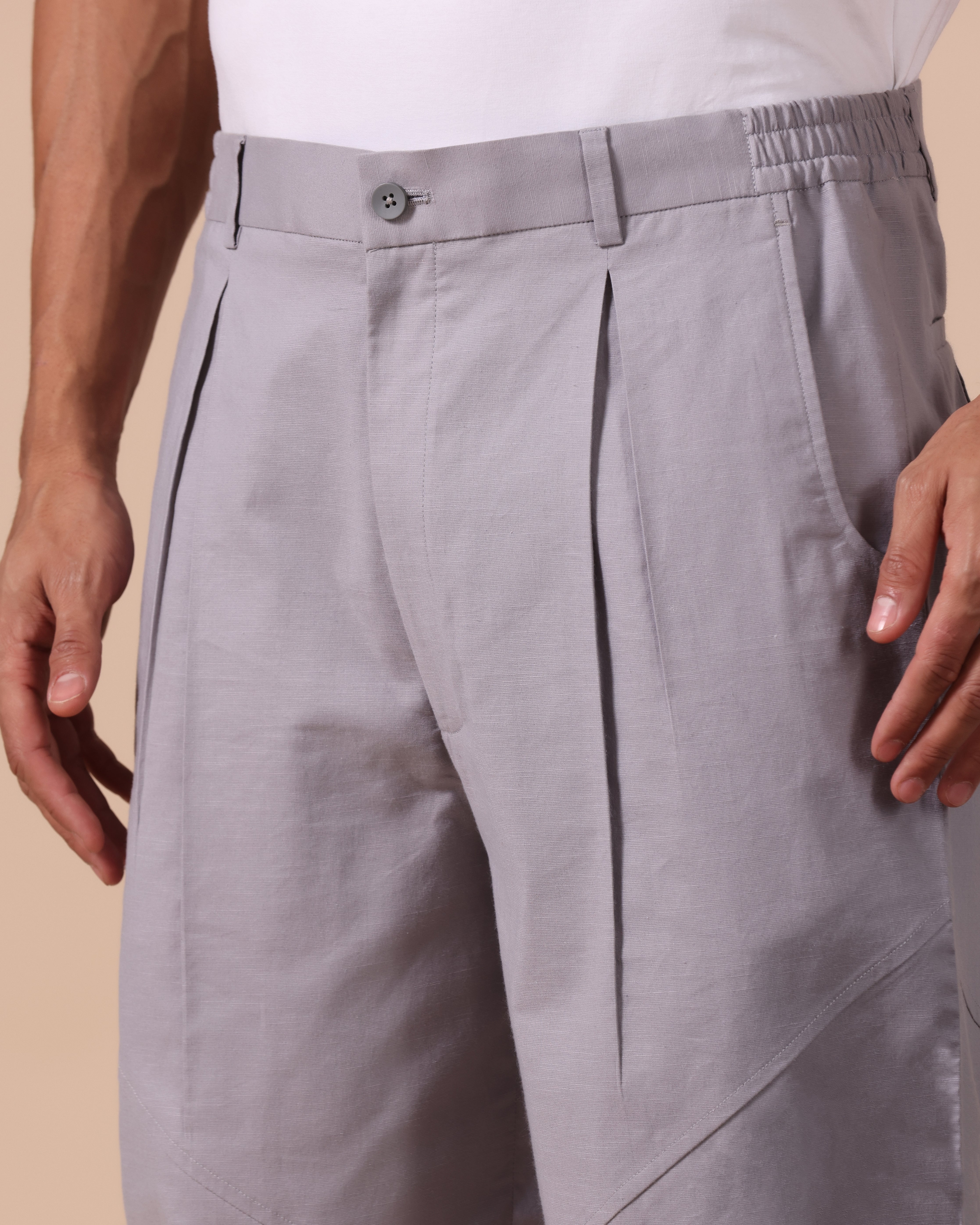 Cotton Double Pleated Loose Pants