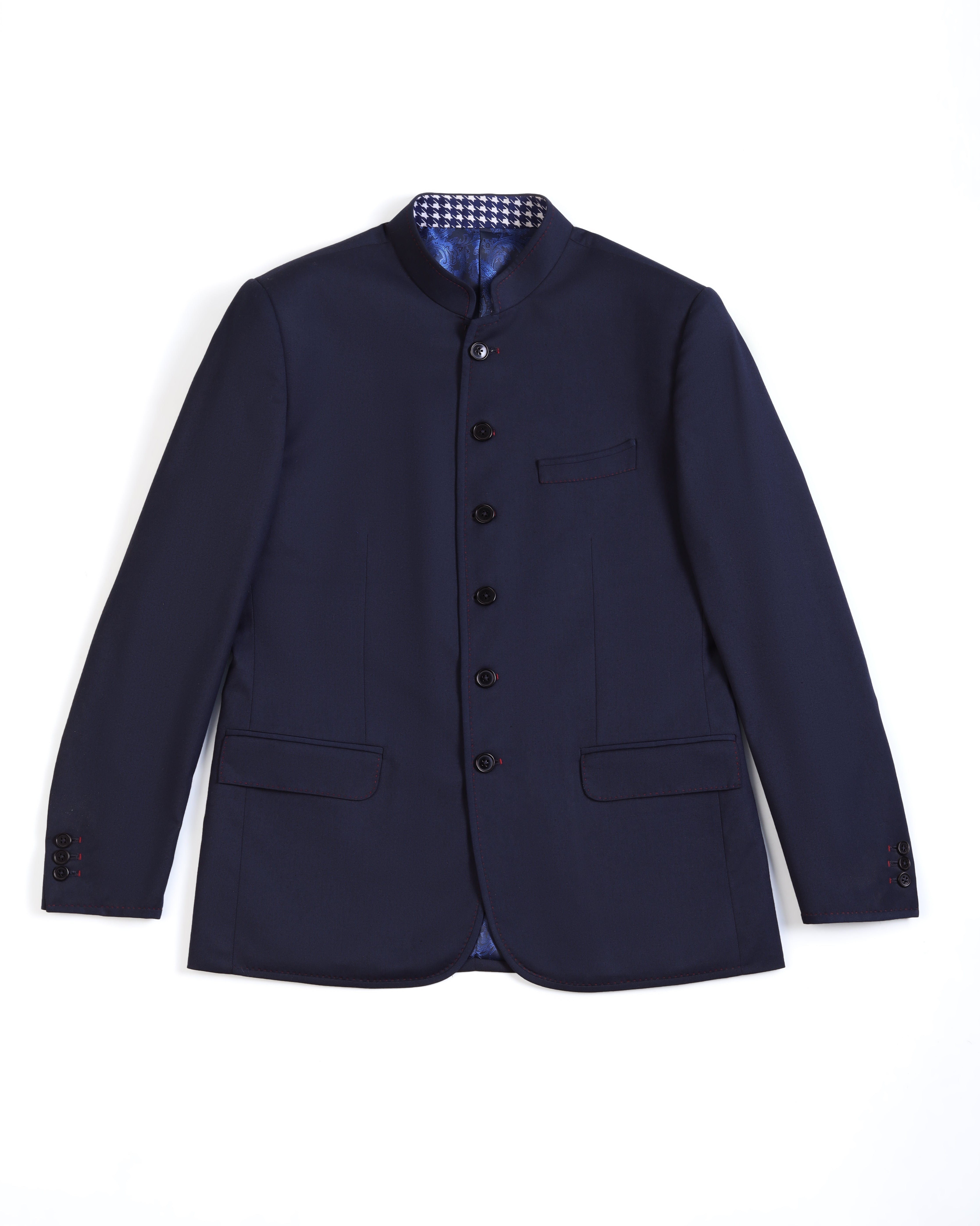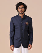 Poly Wool Bandhgala with Maroon Stitched Highlights